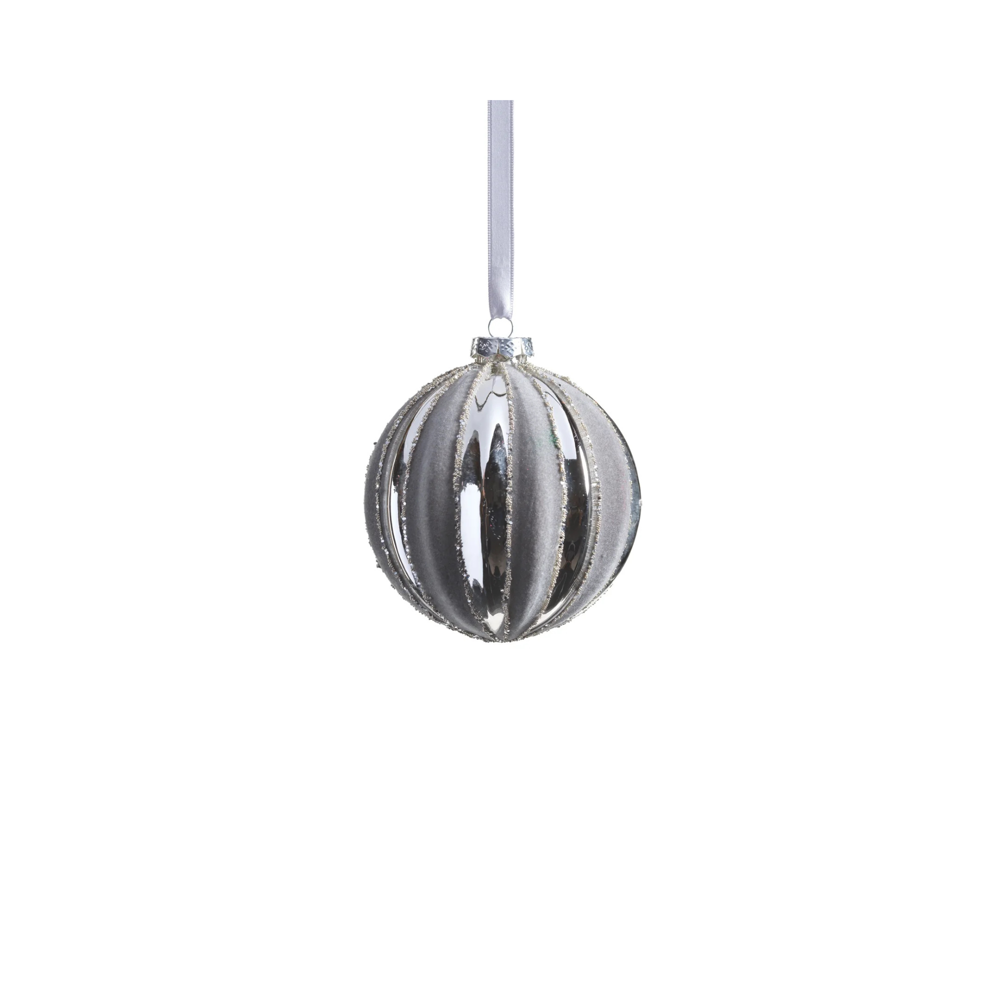 Shiny Silver Glass Ornament with Gray Flock Pattern - Small