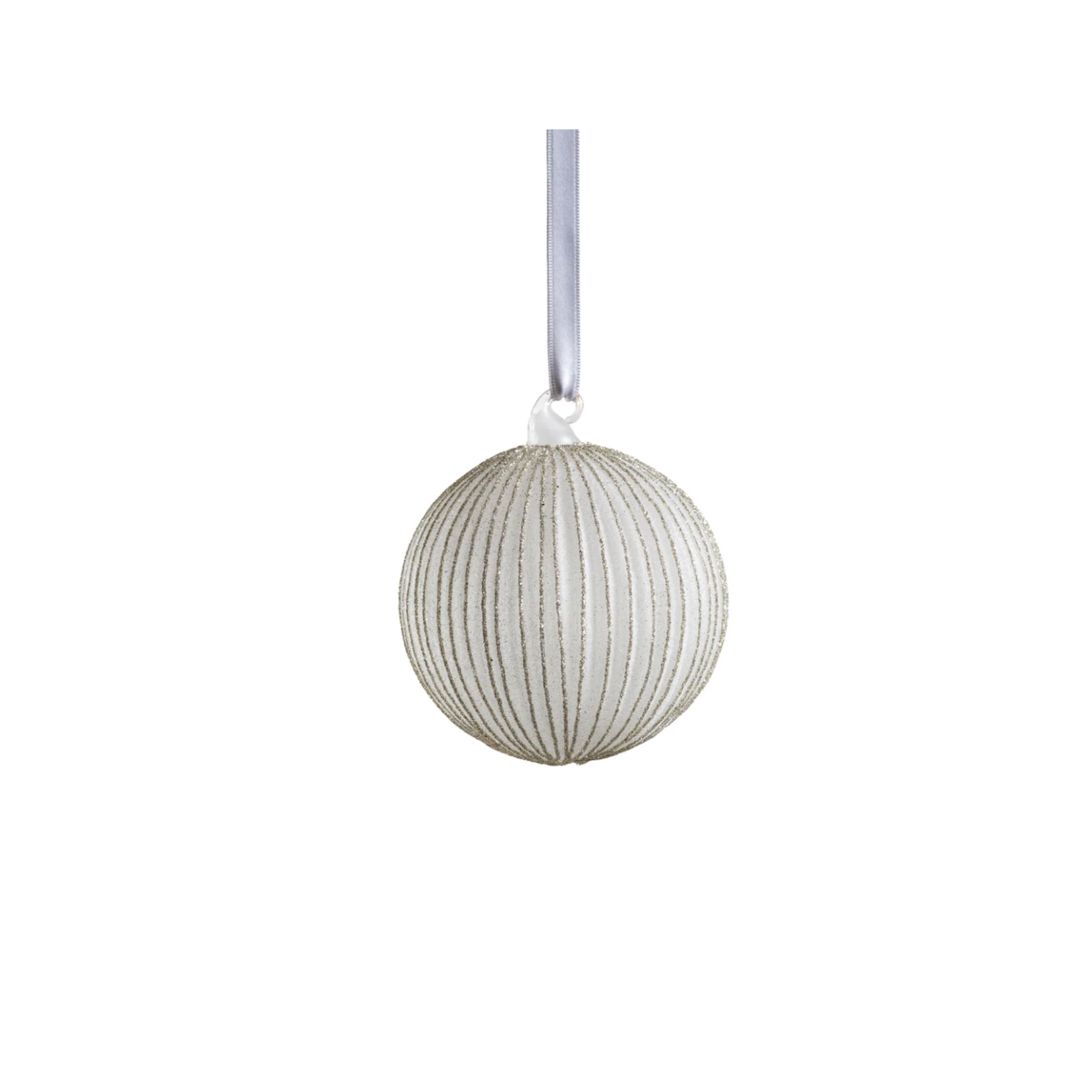 Ribbed Two-Toned Glass Ball Ornament - Matte White and Gold - 4"