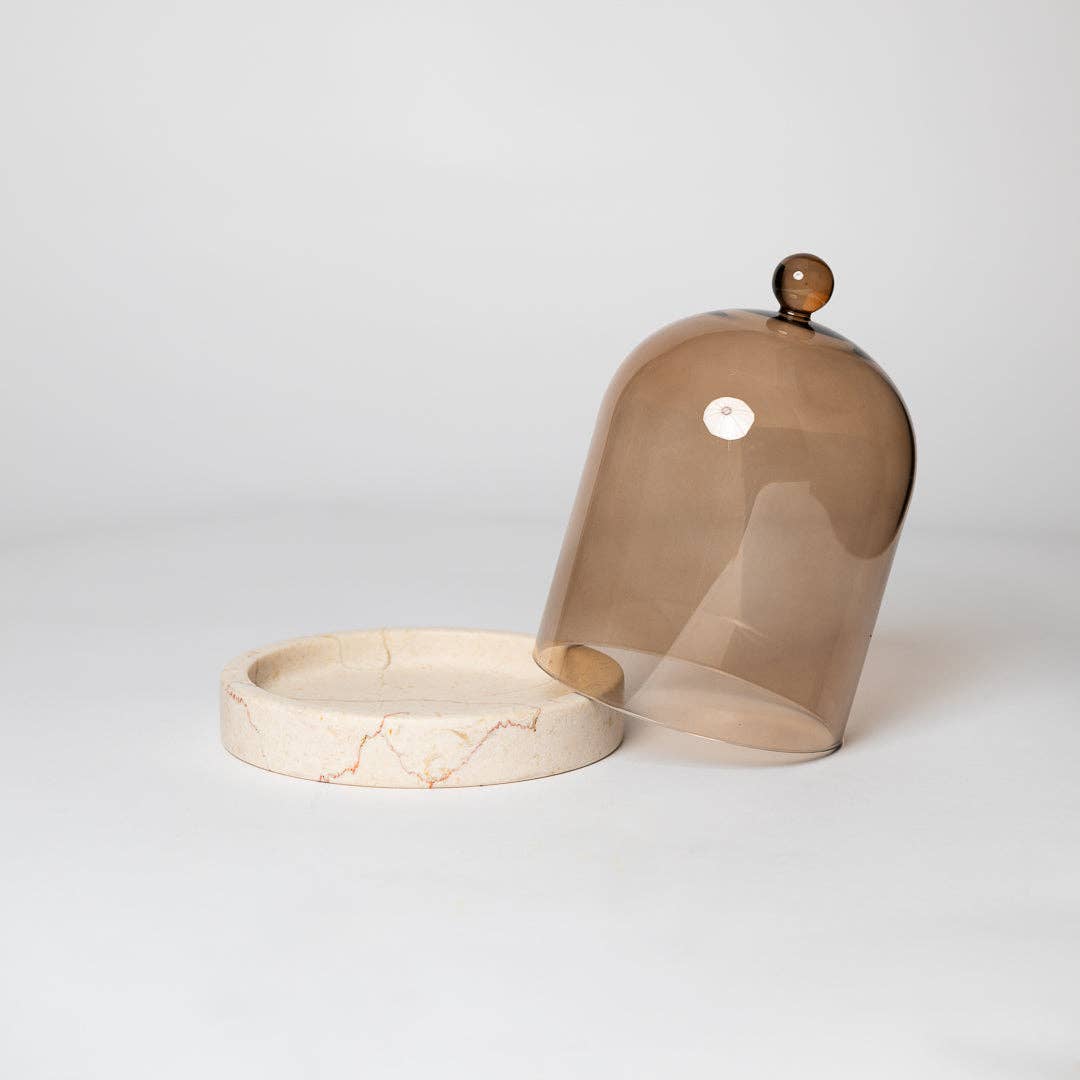MUSHROOM TRAVERTINE CLOCHE + STONE