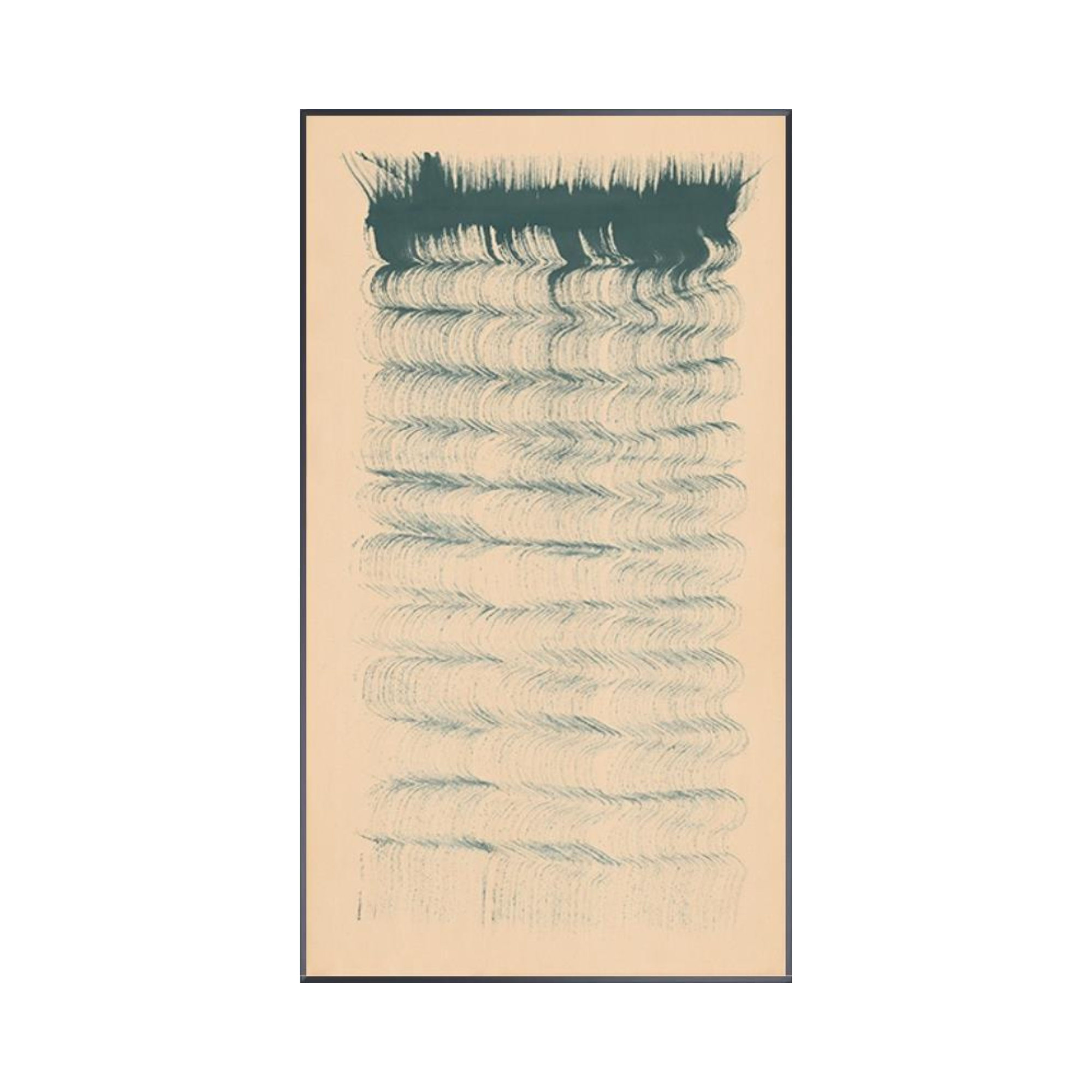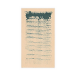 Art on natural canvas. Comes with pre-installed hardware for hanging.