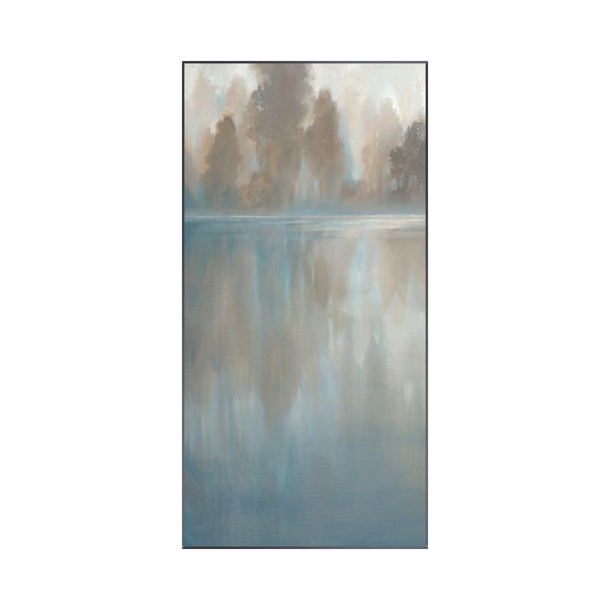Brush gel image on canvas. Comes with pre-installed cleat for hanging.