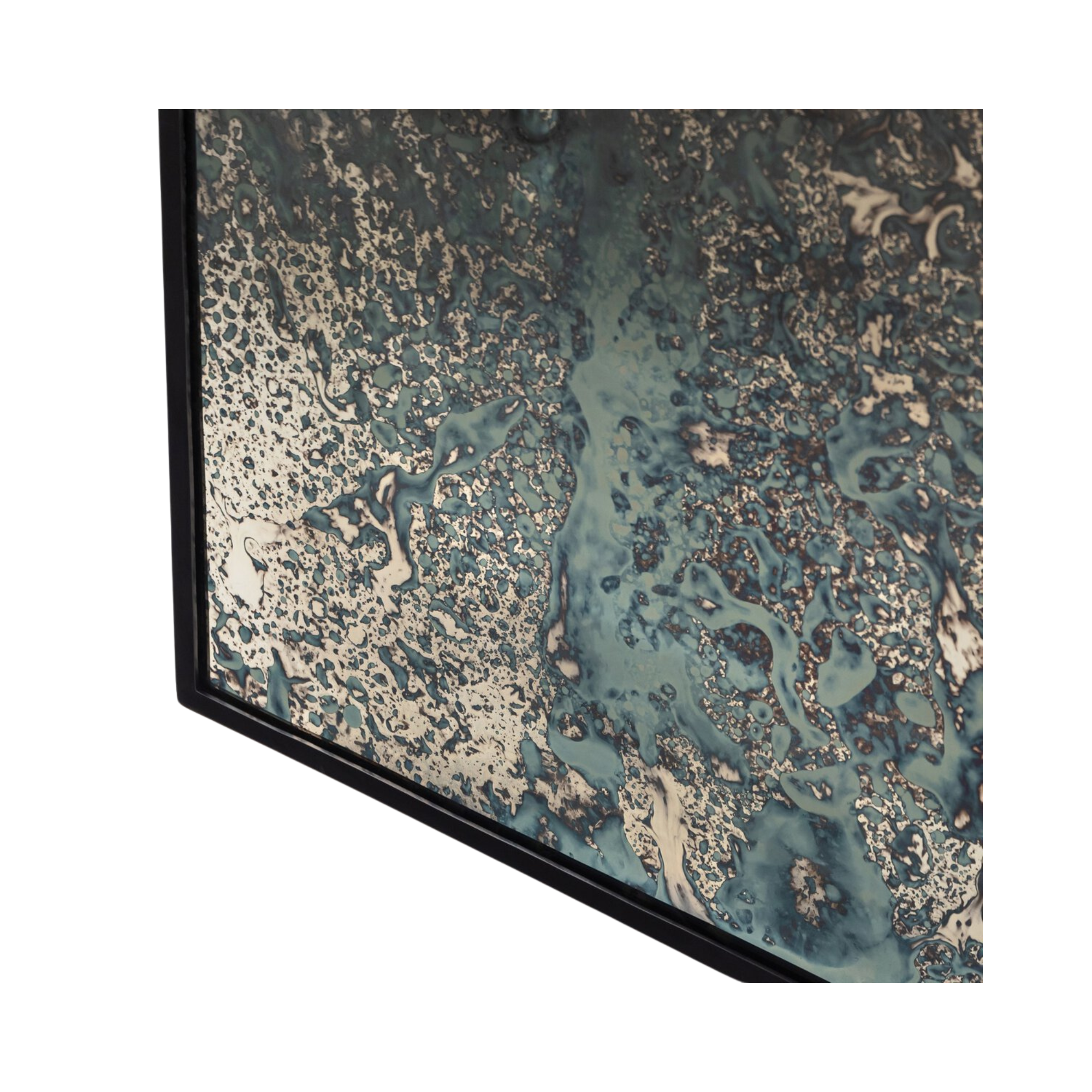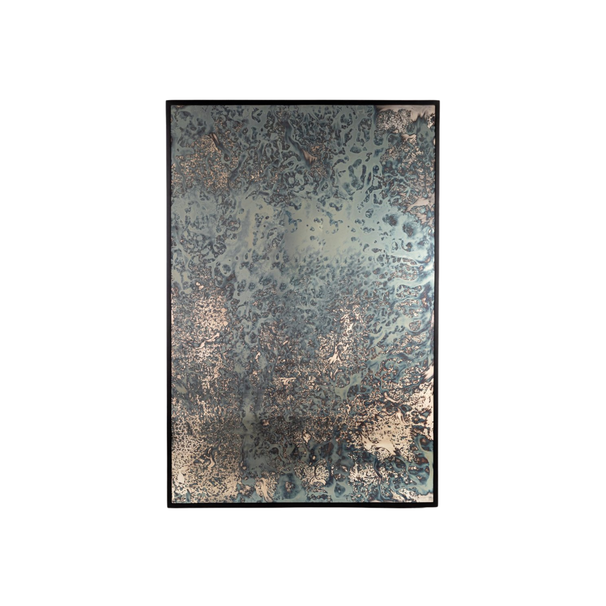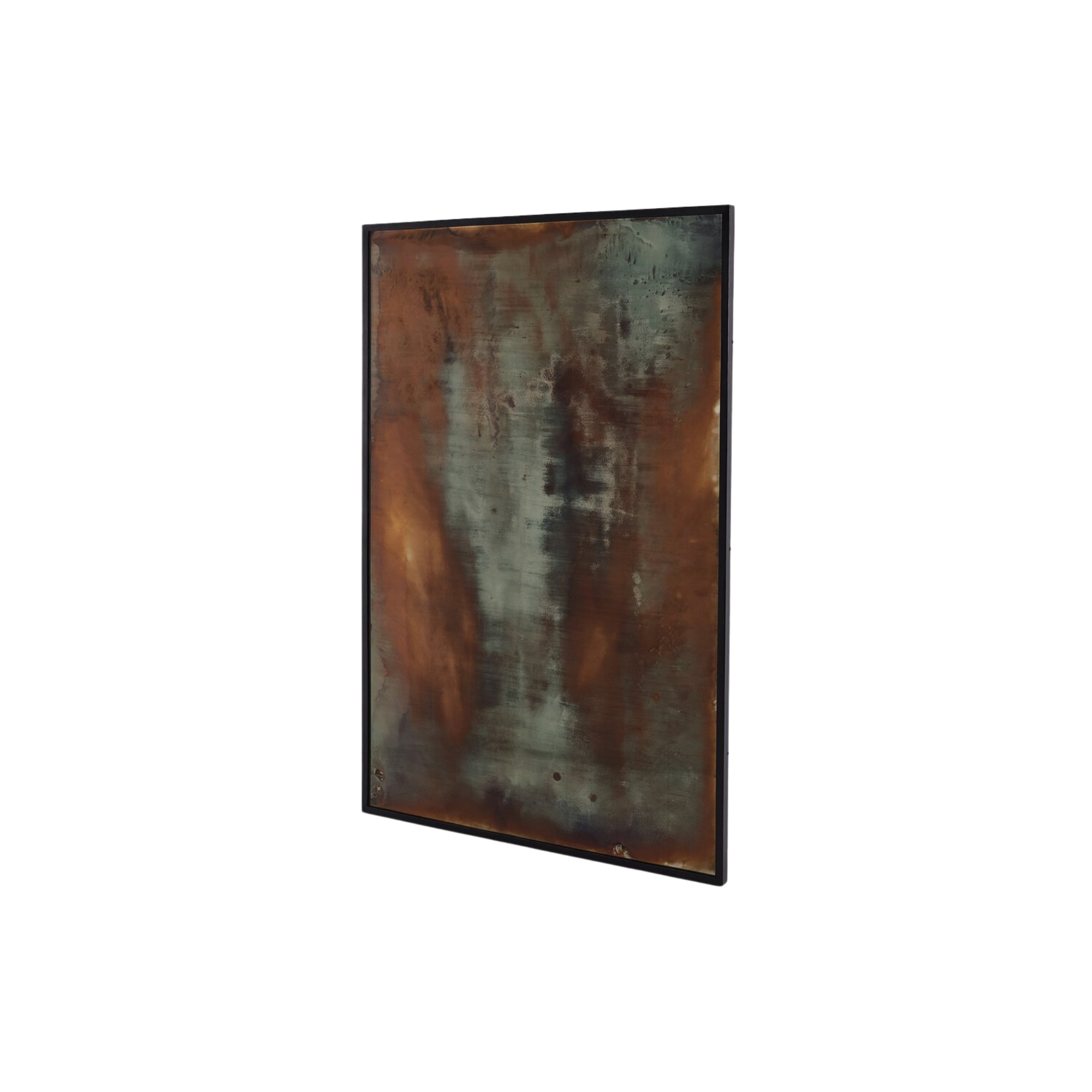 Artistic reflection. Black-finished iron forms a clean, rectangular frame for this acid-washed floor mirror with hand-painted hues of blue or bronze.