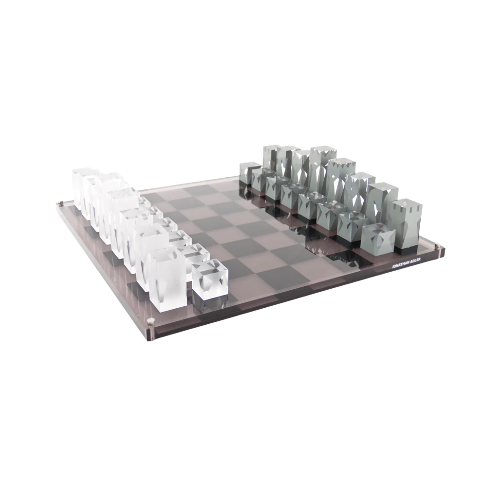 Conjure the glamour of Halston in the 70s with our oversized, chunky acrylic chess set. A classic parlor pastime with a makeover so posh you’ll never want to put it away—perfect for permanent display on a cocktail table. And remember: Every pawn is a potential queen.