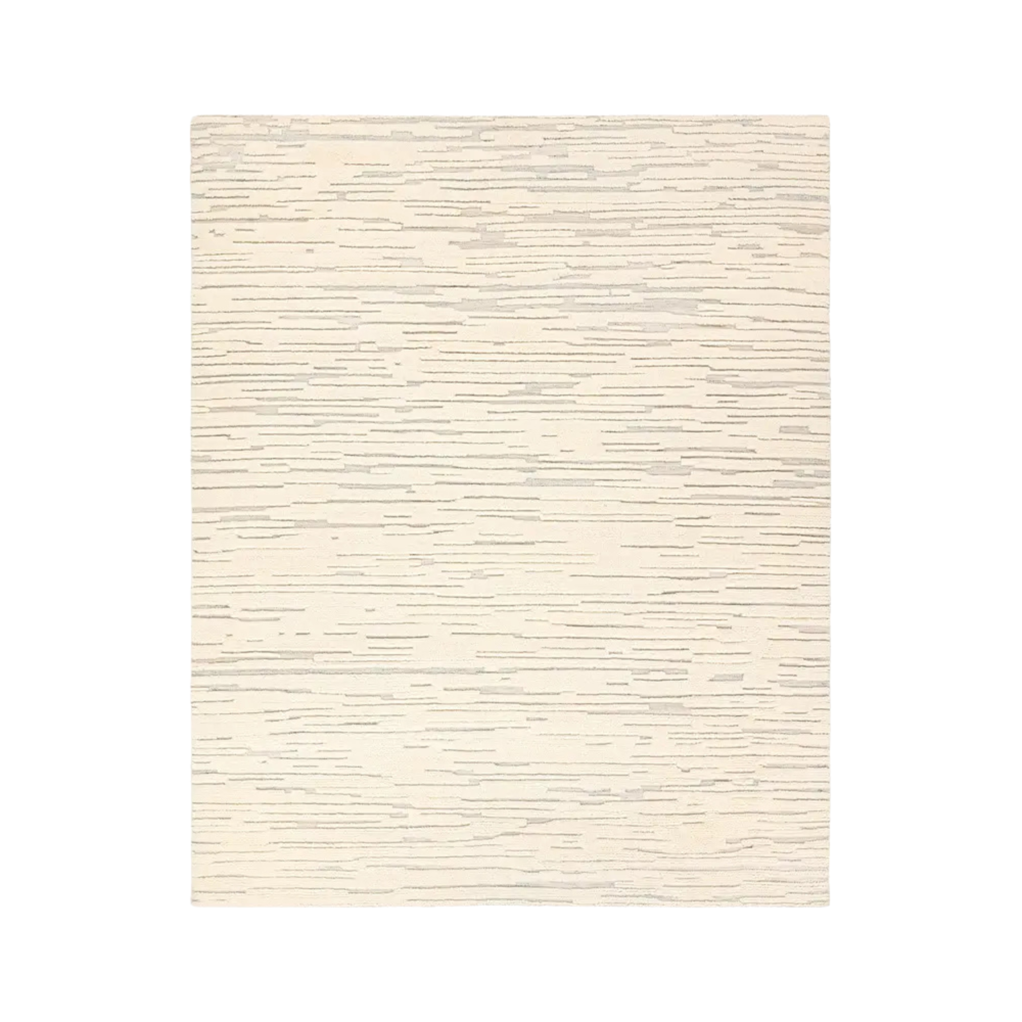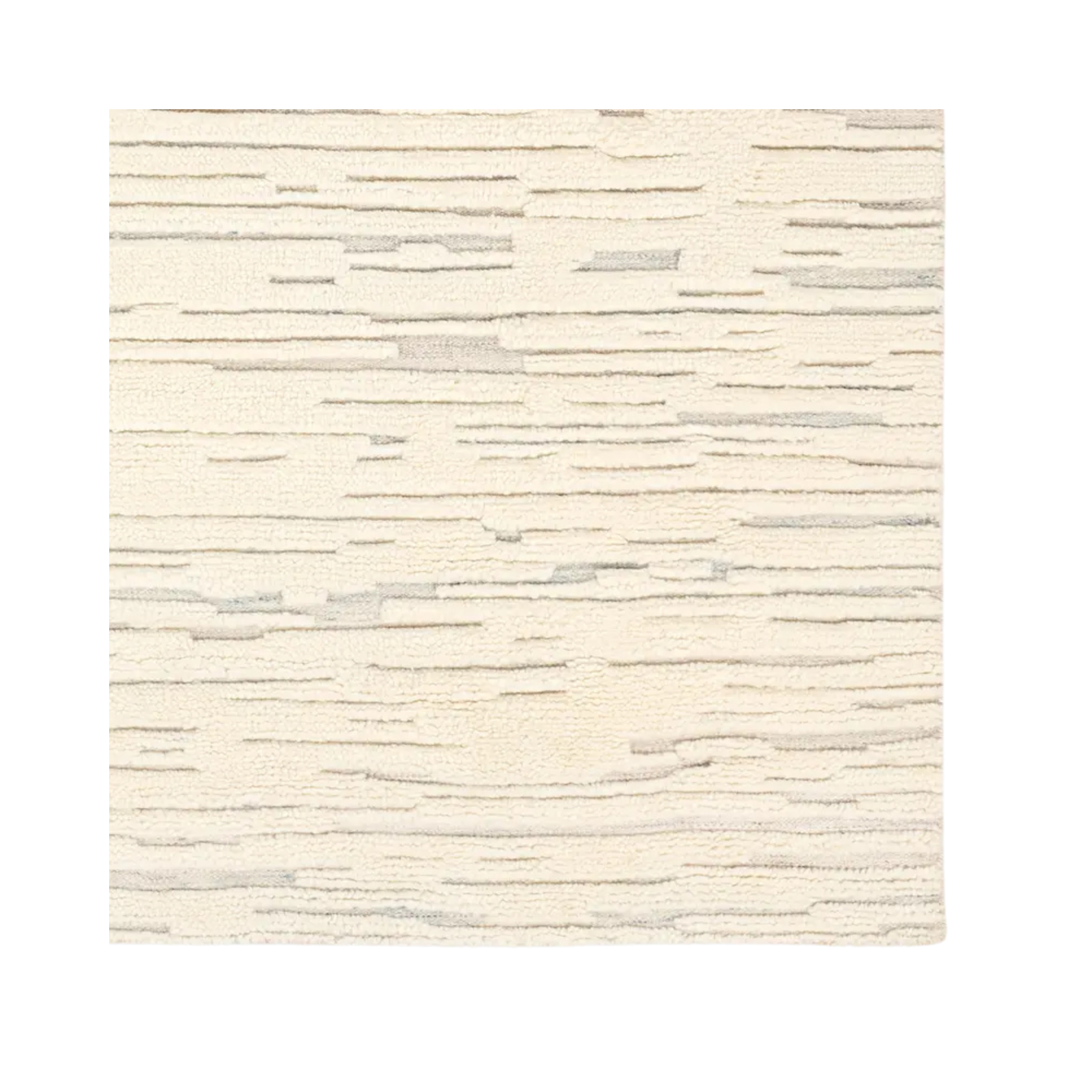 The hand-knotted Akash collection showcases rich texture and grounding neutral tones in a variety of modern designs. The Sayell design features a striated look due to high and low levels of pile in cream, gray, and tan hues. The soft, 100% wool make is naturally stain and water resistant. Soft loops provide texture and comfort underfoot. This piece best suits low traffic spaces pf the home such as bedrooms, formal living rooms, formal dining areas, and sitting rooms.