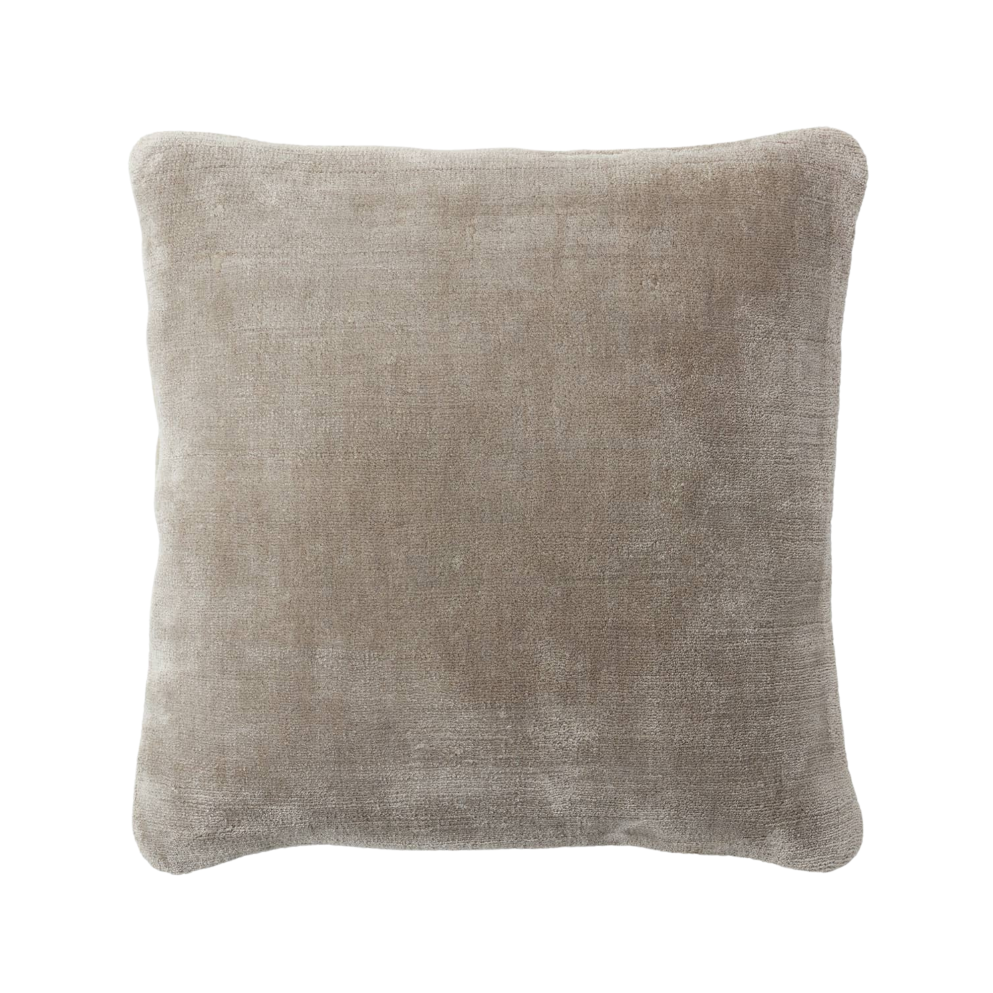 The luxurious Allura collection boasts a stunning assortment of hand-loomed pillows. The stunning sheen of the viscose fibers on the front features a soft, neutral style, while the back of these opulent covers showcases inviting washed linen. This gray Illumine throw pillow brings a modern glam style to any indoor space, such as beds, couches, and chairs.