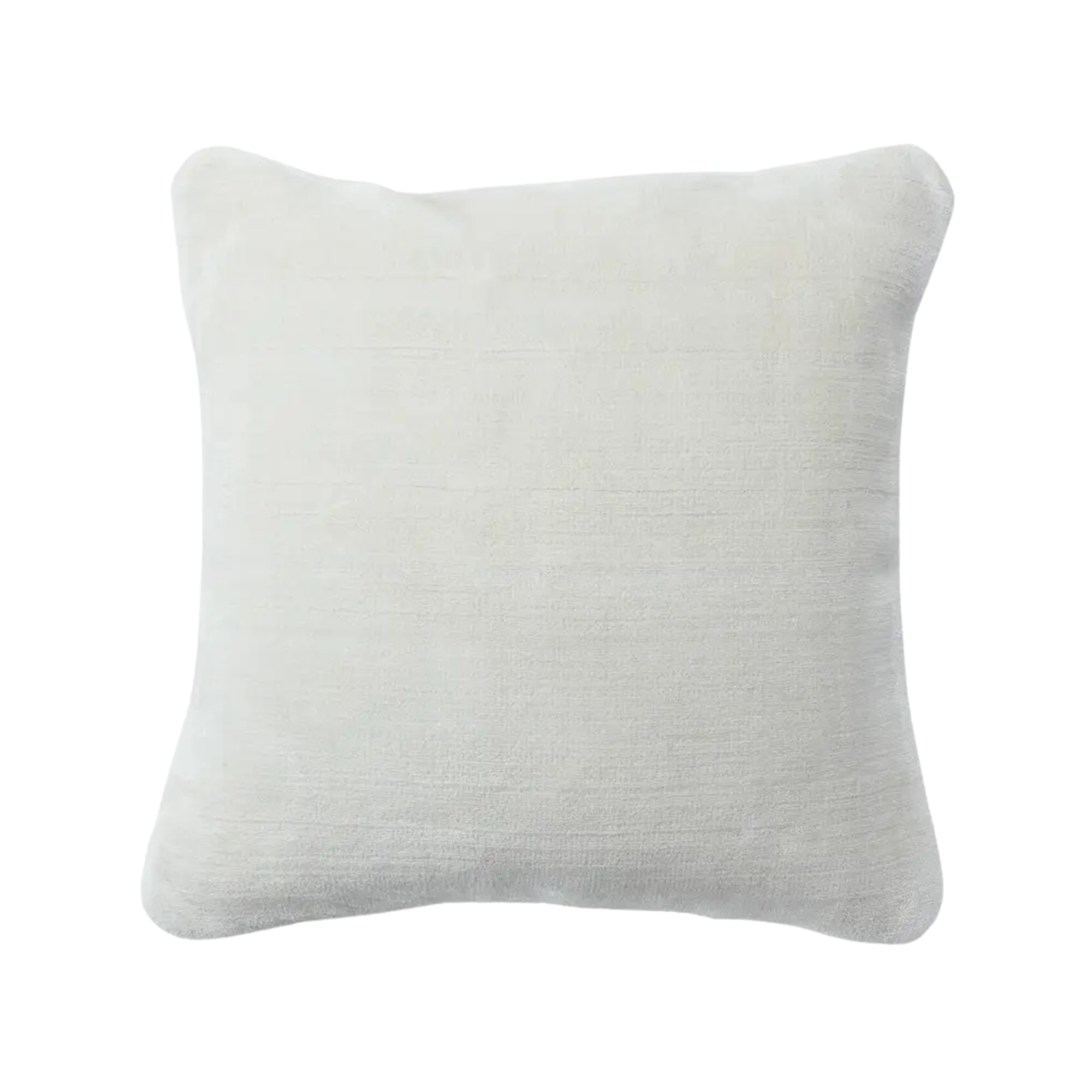 The luxurious Allura collection boasts a stunning assortment of hand-loomed pillows. The stunning sheen of the viscose fibers on the front features a soft, neutral style, while the back of these opulent covers showcases inviting washed linen. This ivory Illumine throw pillow brings a modern glam style to any indoor space, such as beds, couches, and chairs.