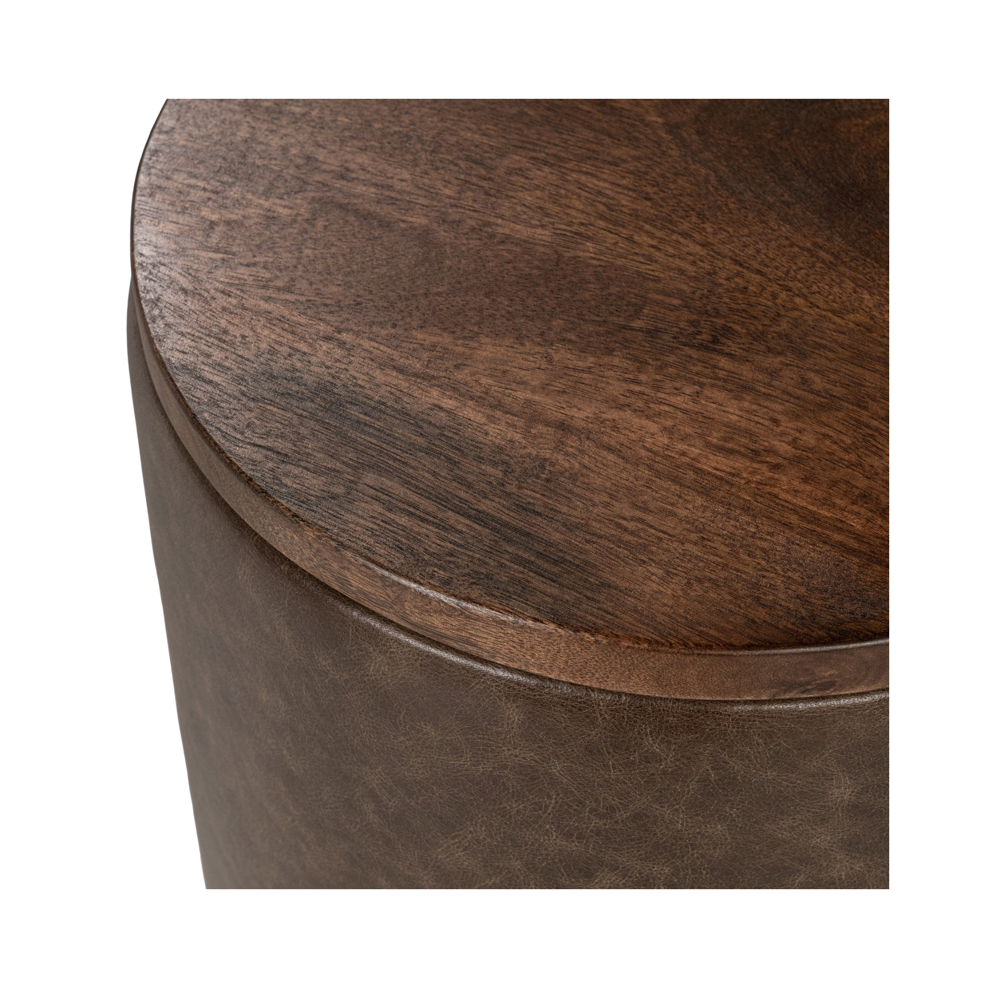 This drum-shaped Andra Accent Table is a perfect union of design and exudes understated luxury. Wrapped in top-grain leather and topped with a smooth mango wood surface, its rich textures bring depth and sophistication to any space.