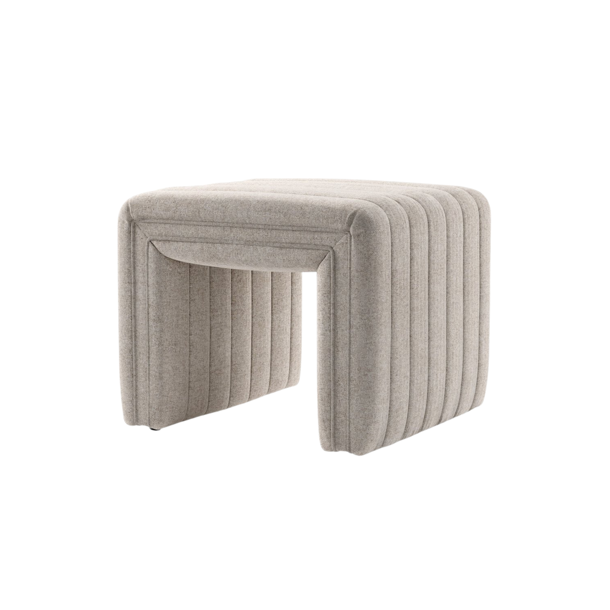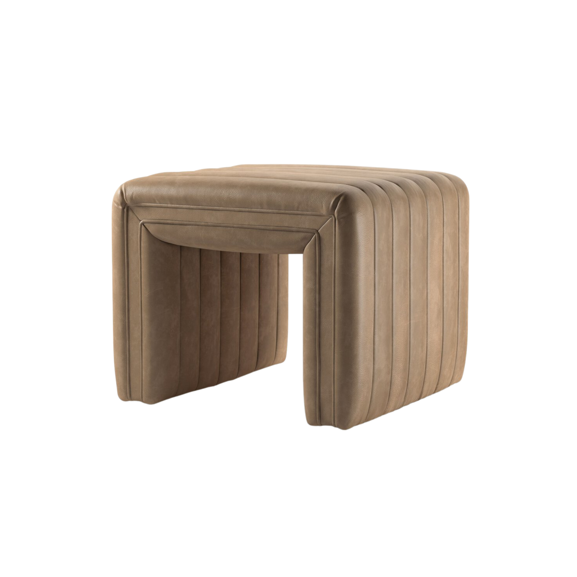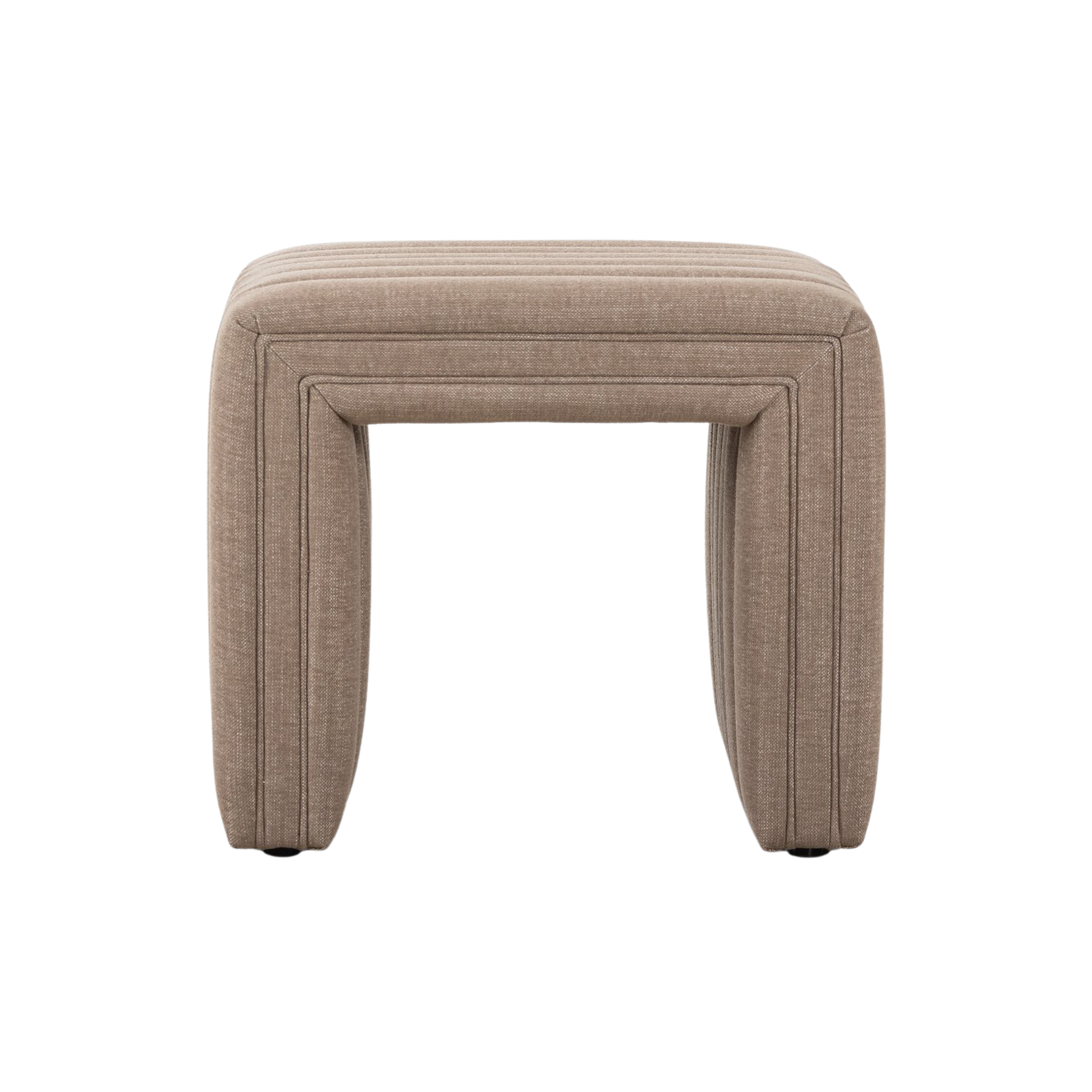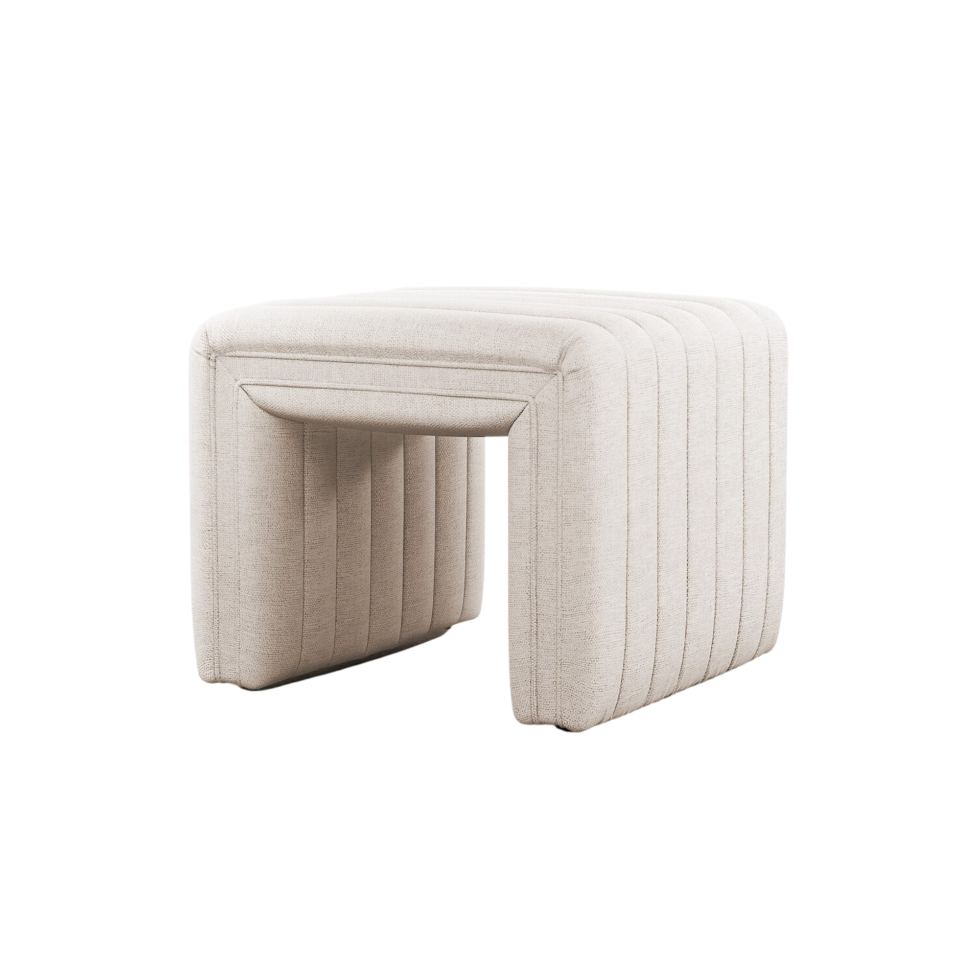 Layer in an extra surface or seat with a beautifully upholstered ottoman with heavy channeling for texture.