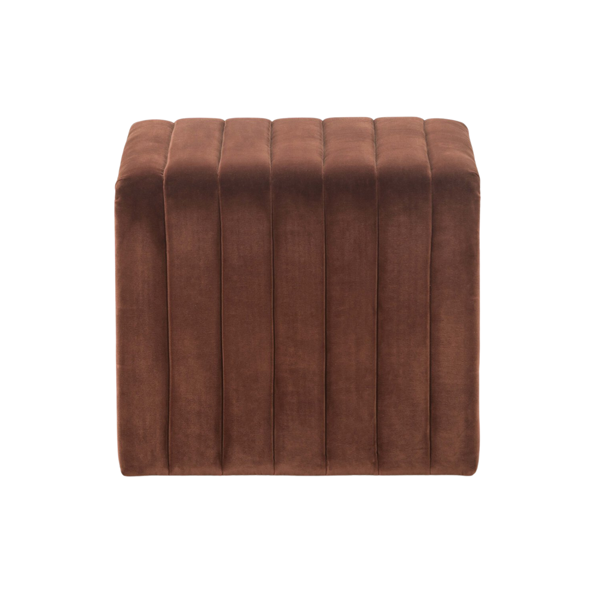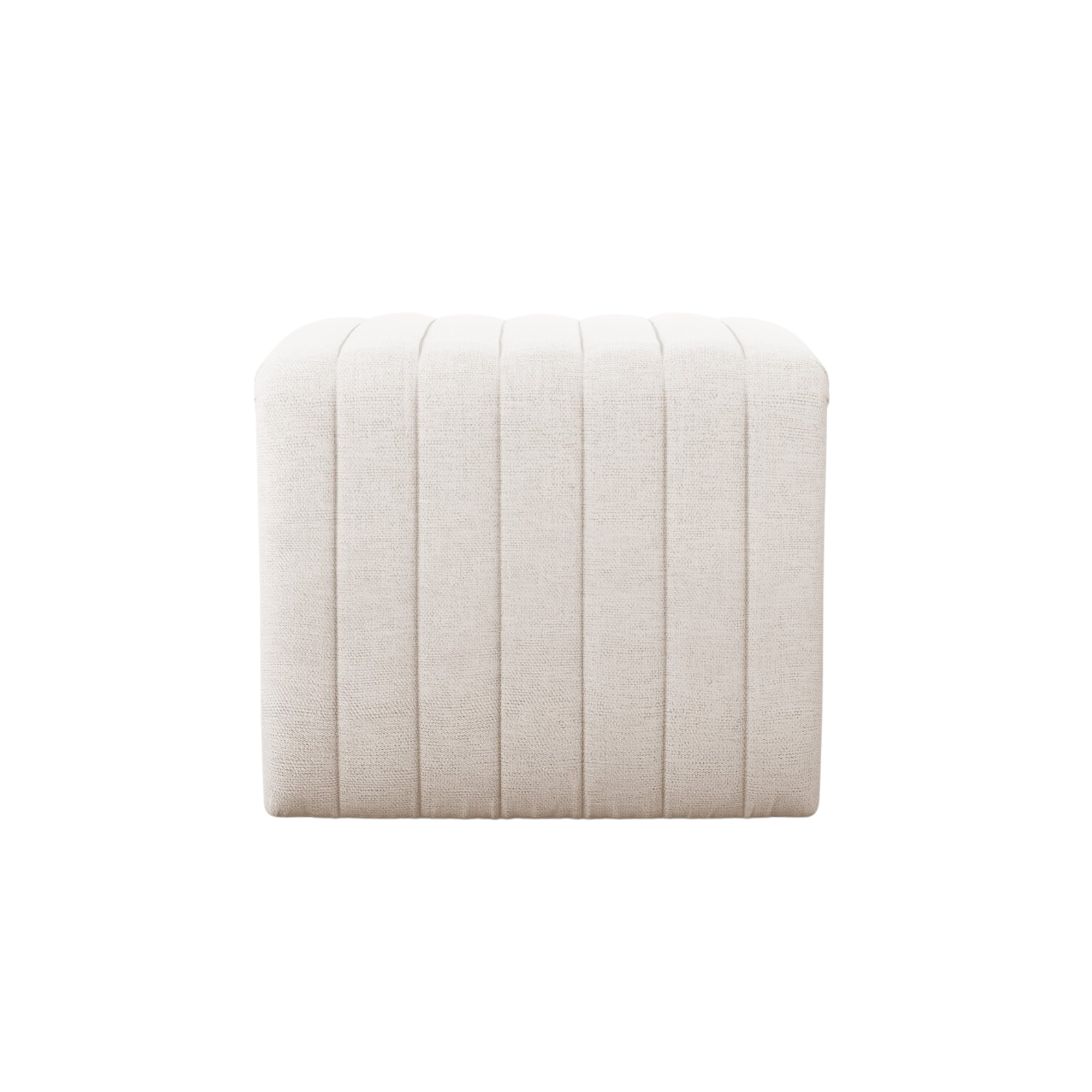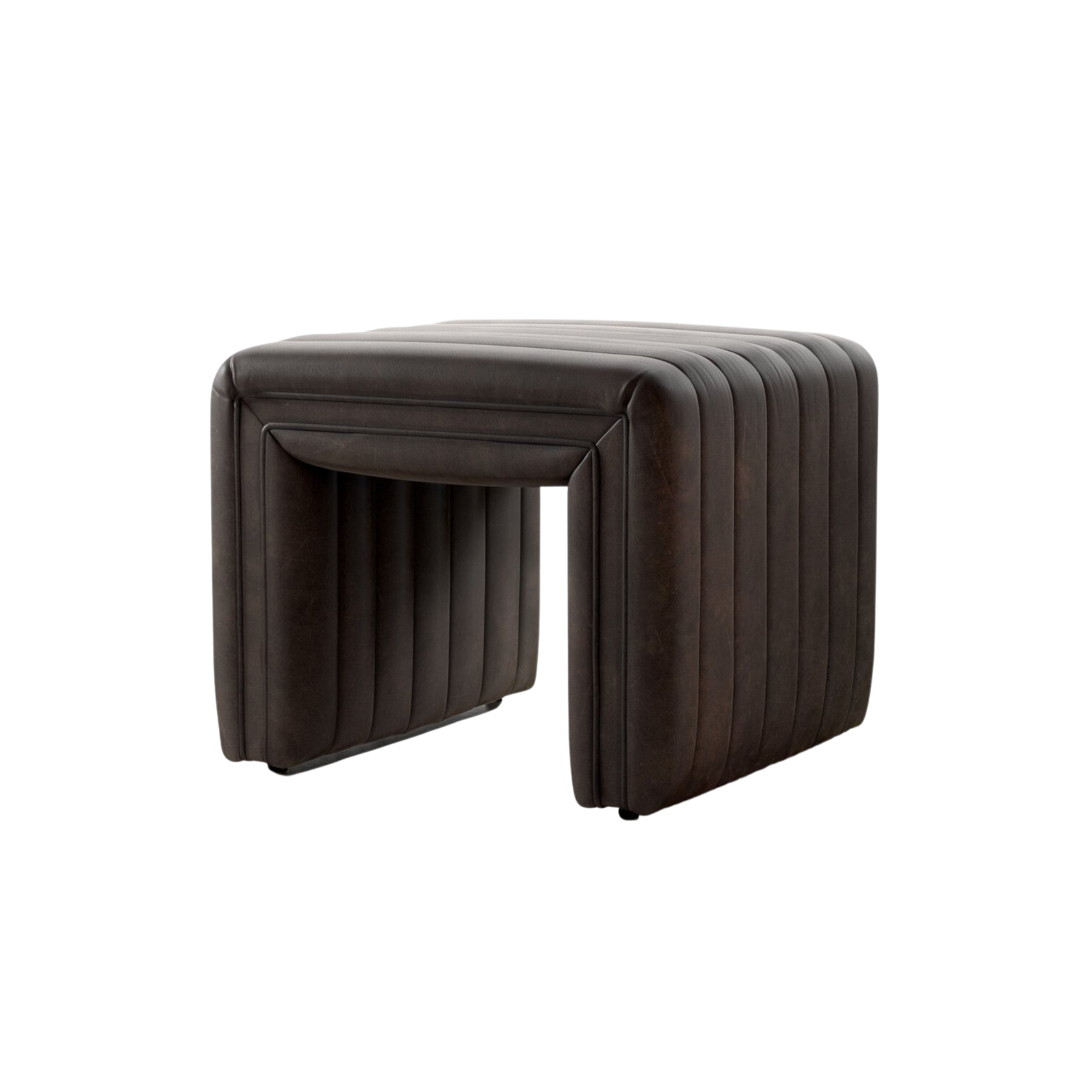 Layer in an extra surface or seat with a beautifully upholstered ottoman with heavy channeling for texture.