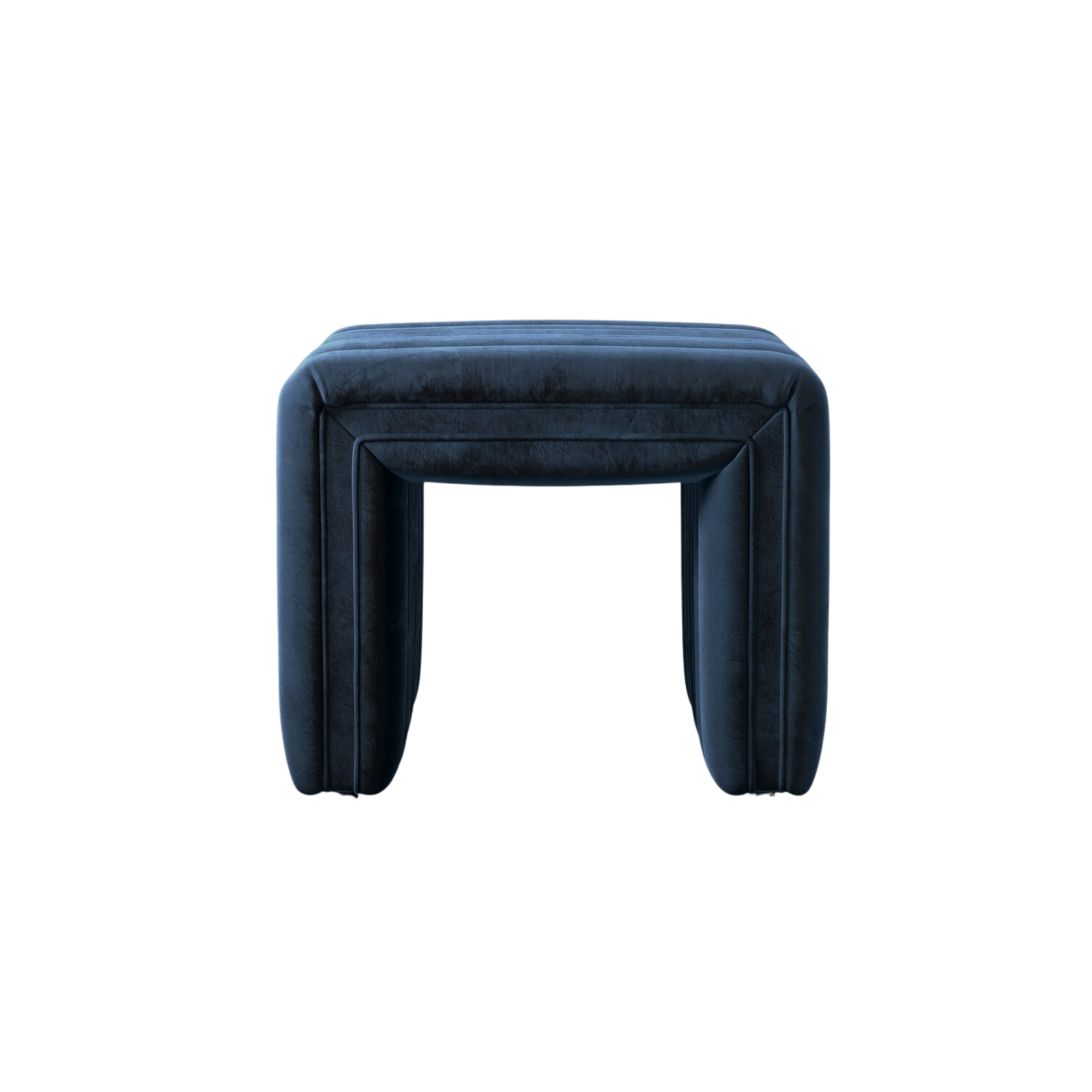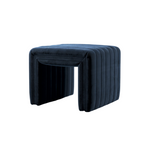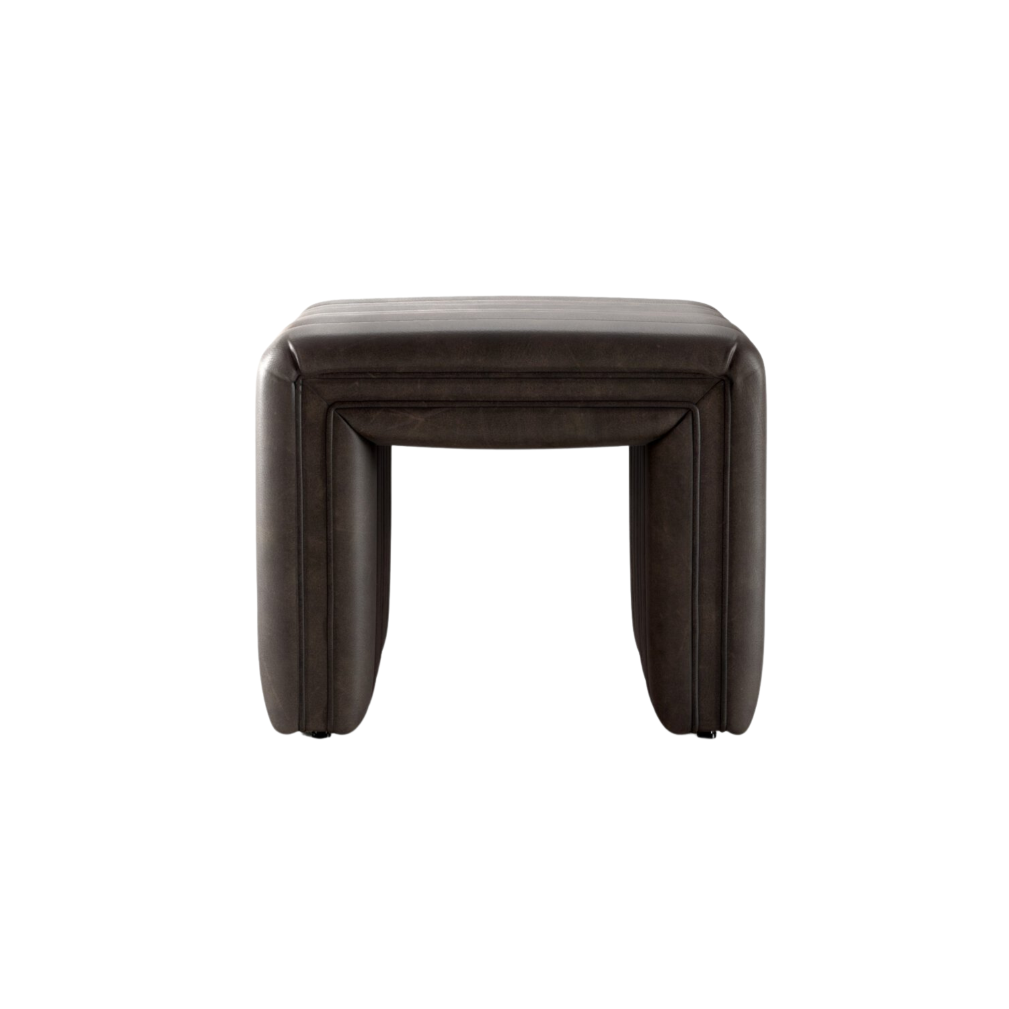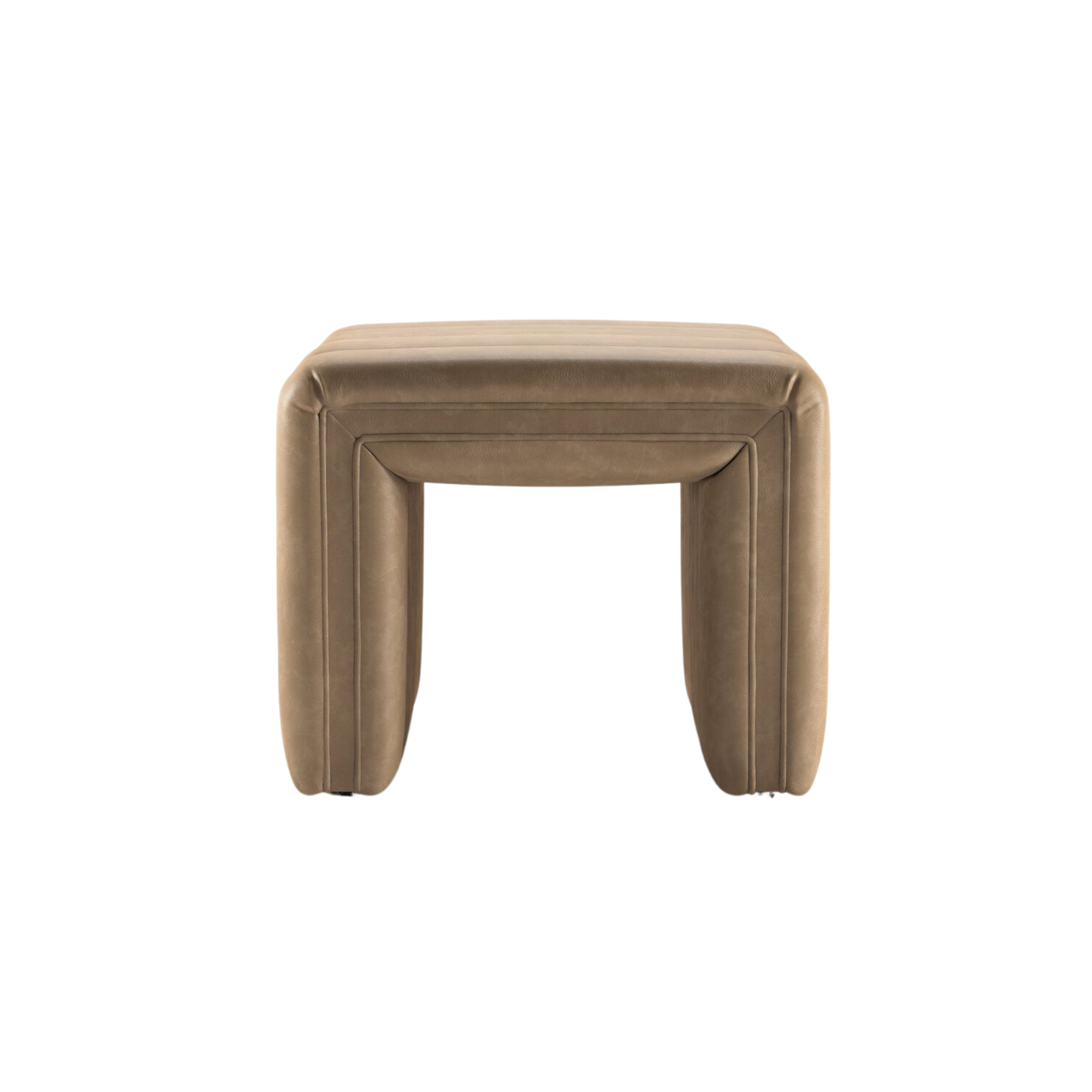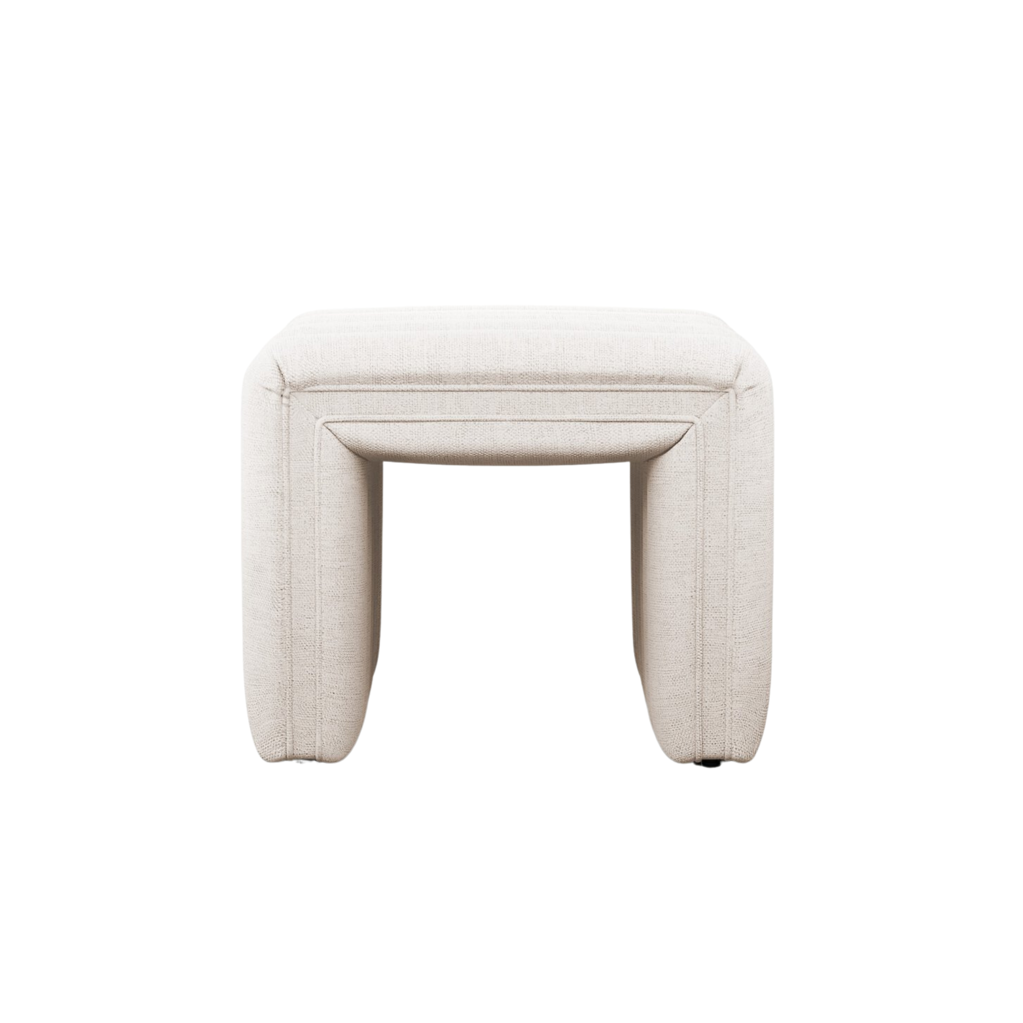 Layer in an extra surface or seat with a beautifully upholstered ottoman with heavy channeling for texture.