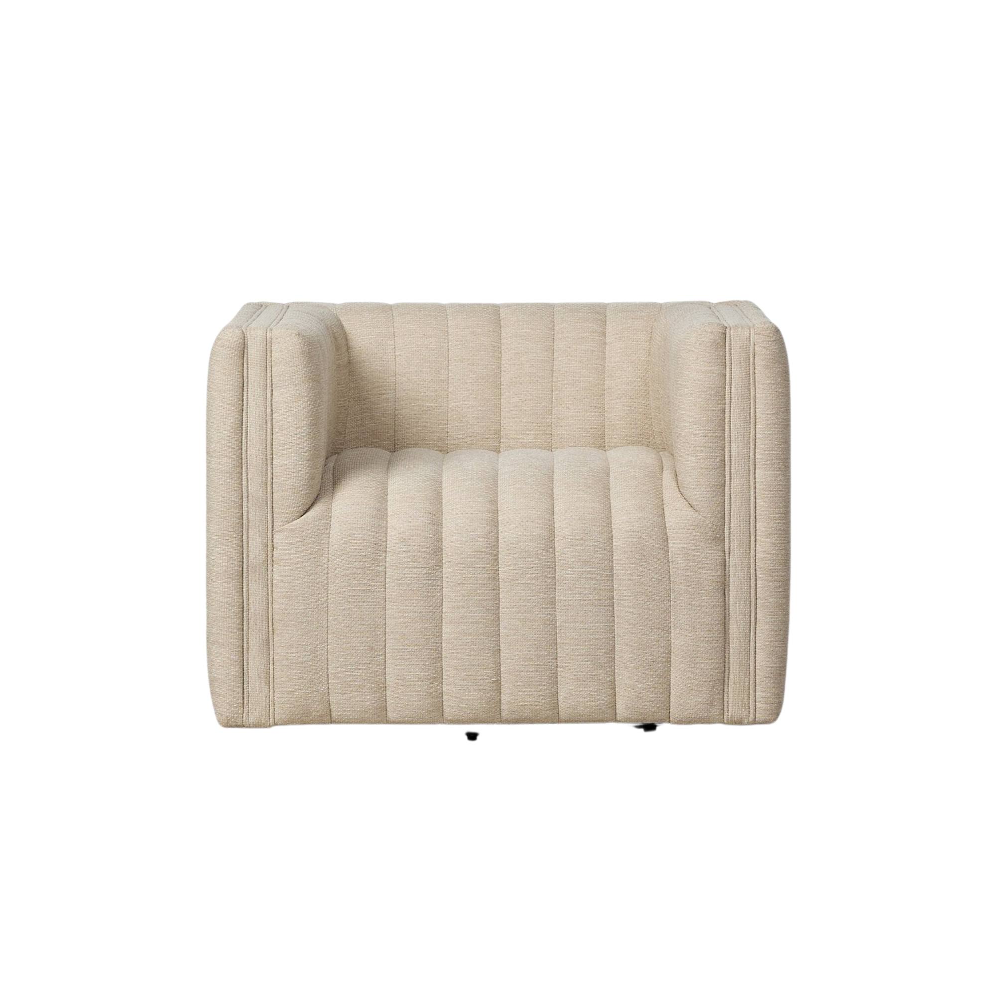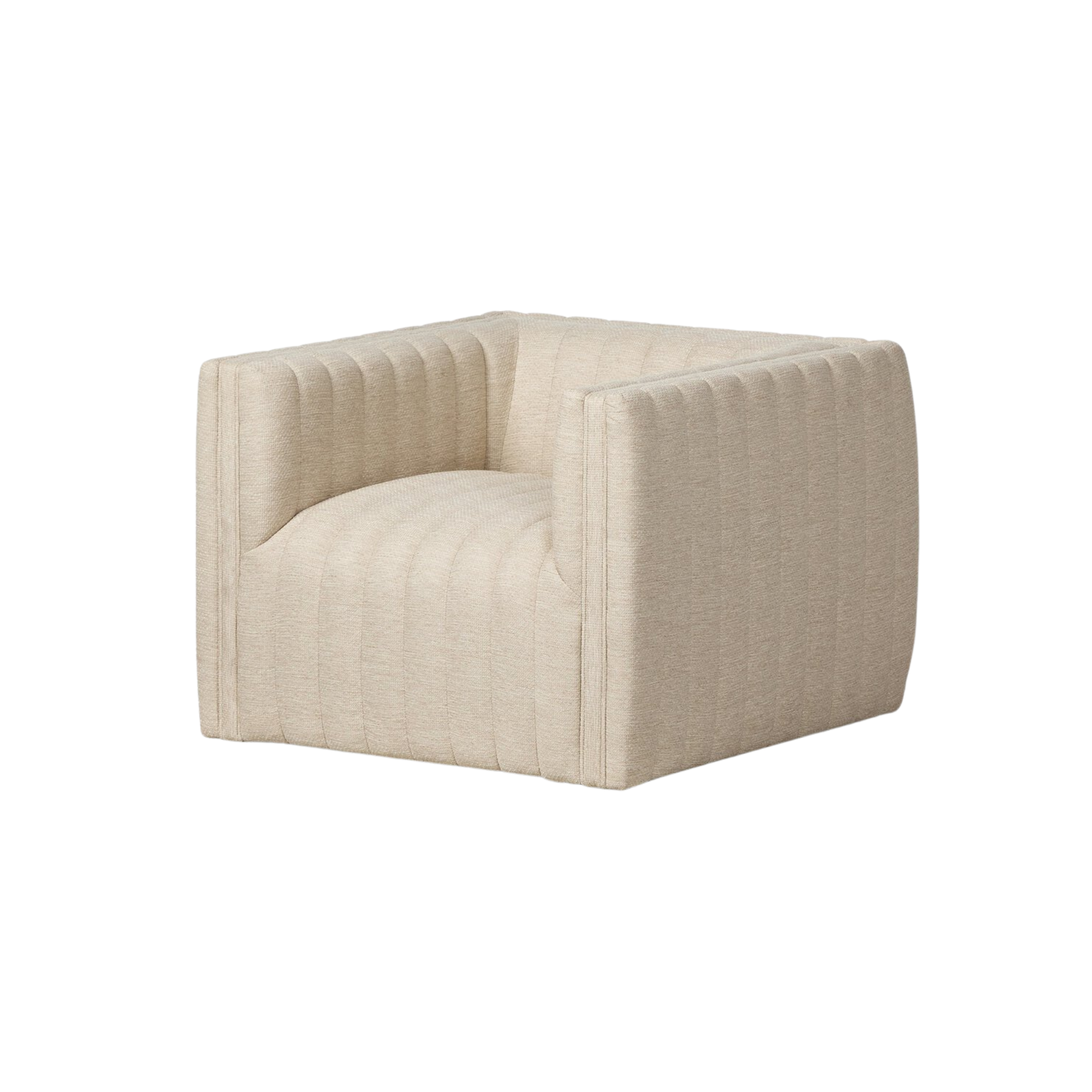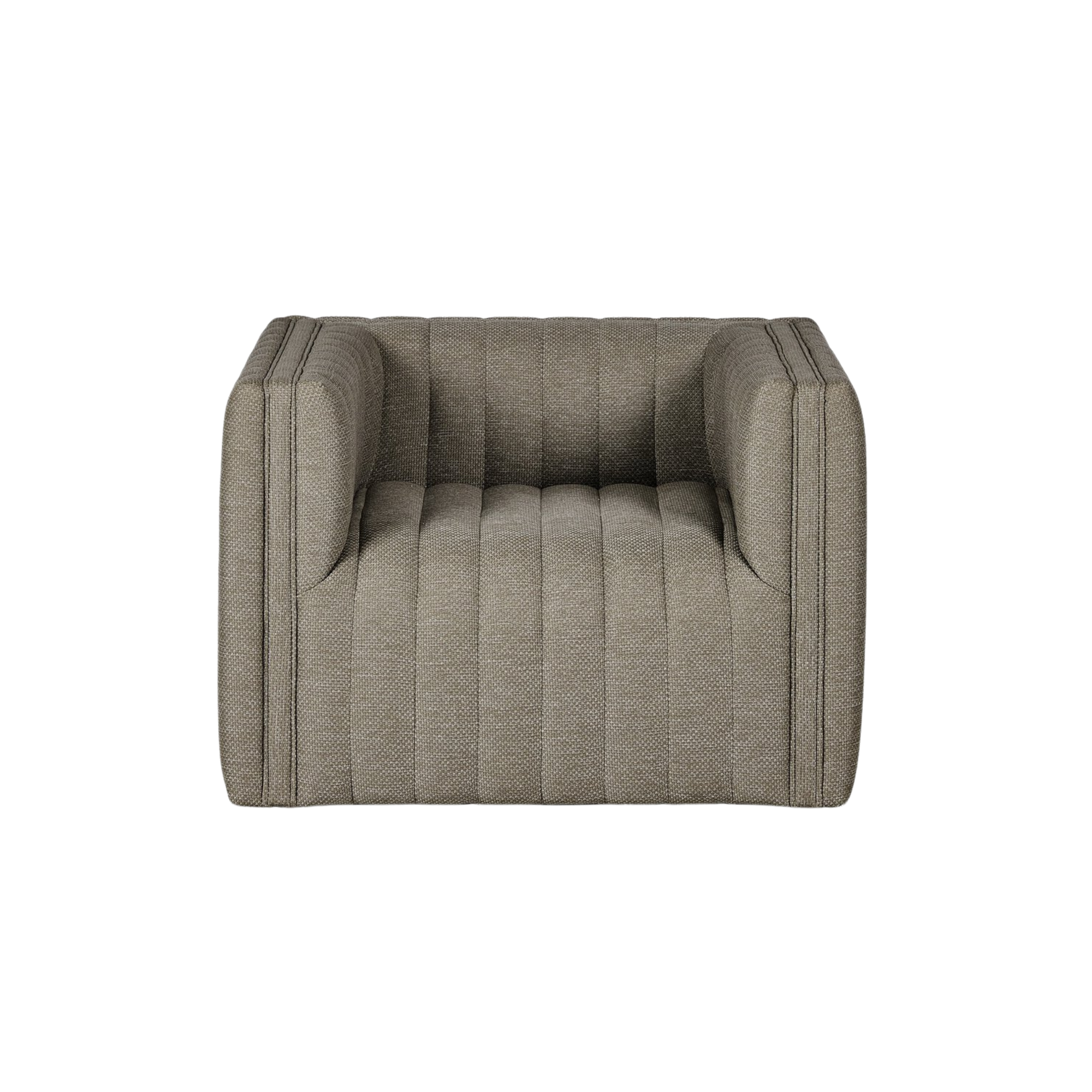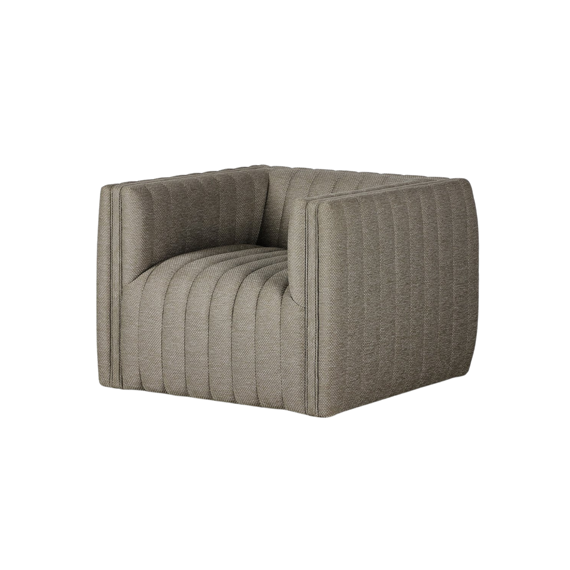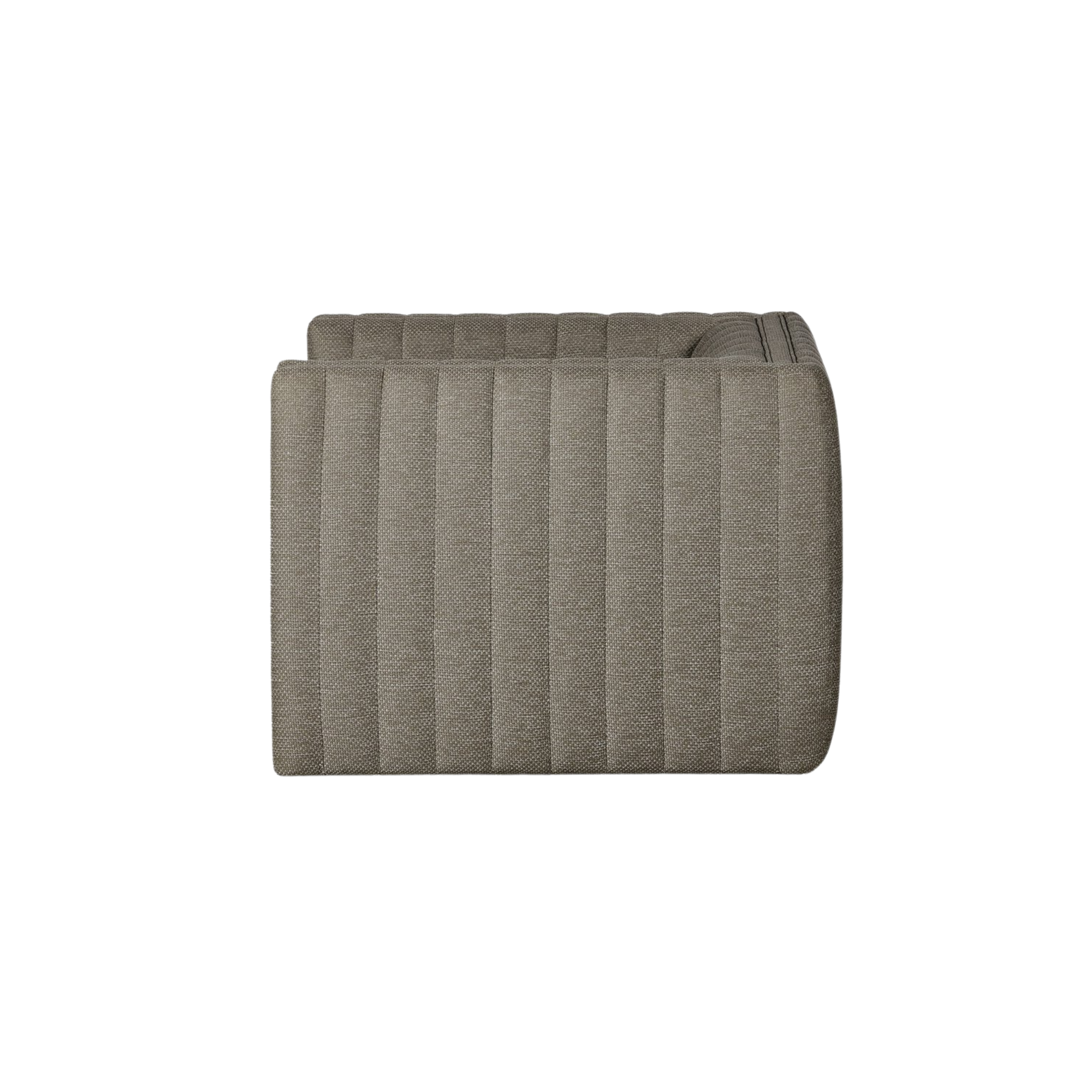 The classic library chair, updated for the outdoors. Lightly textured upholstery and dramatic channeling invite you to settle in, with a 360-degree swivel that delivers from every angle. Cover or store indoors during inclement weather and when not in use.