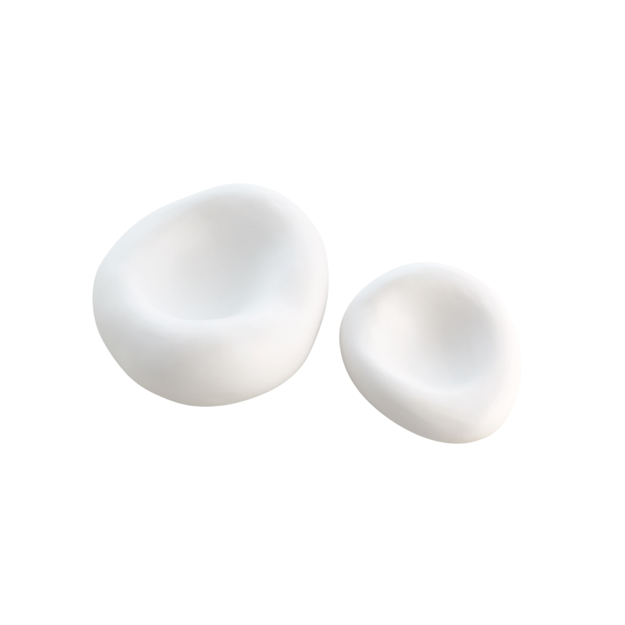 Experience Italian craftsmanship with these Balloon Bowls in matte white. Their organic shapes add a modern touch to your table or shelving, while the matte finish offers an understated look. Available in two sizes.