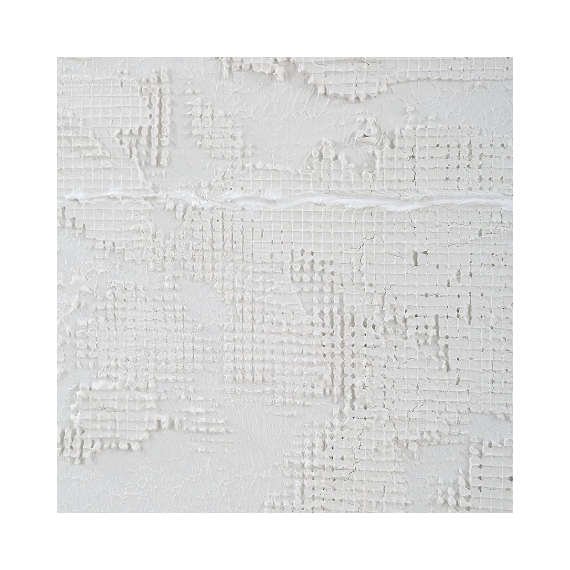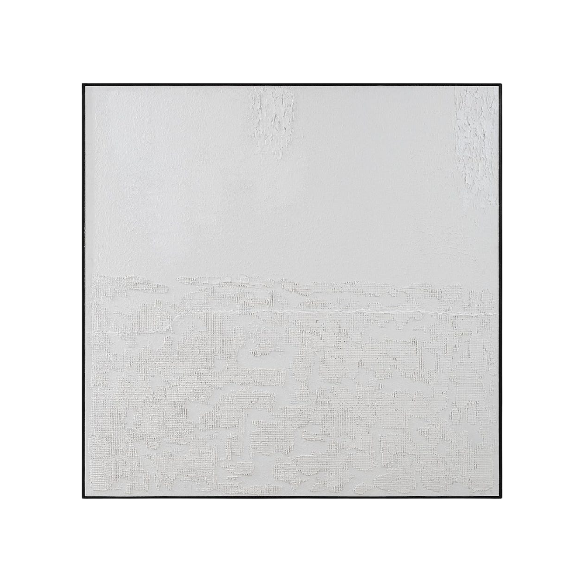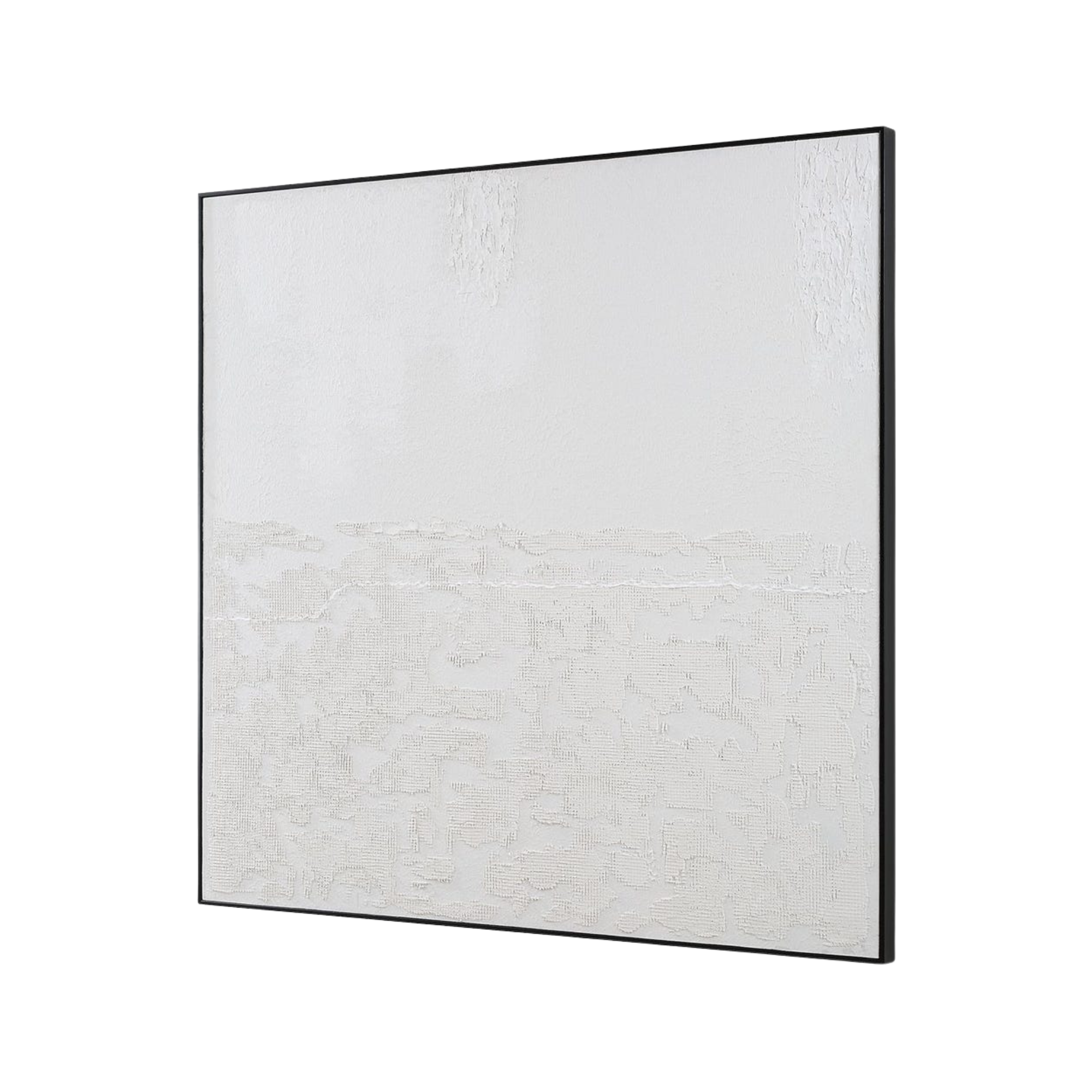 Below The Surface hand painted canvas speaks volumes with its all-white palette and intriguing heavy texture. A slim, black gallery frame completes the artwork. Due to the handcrafted nature of this artwork, each piece may have subtle differences.