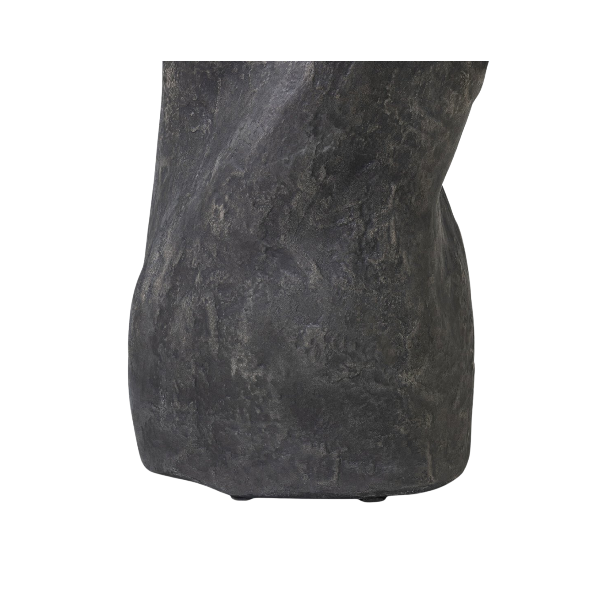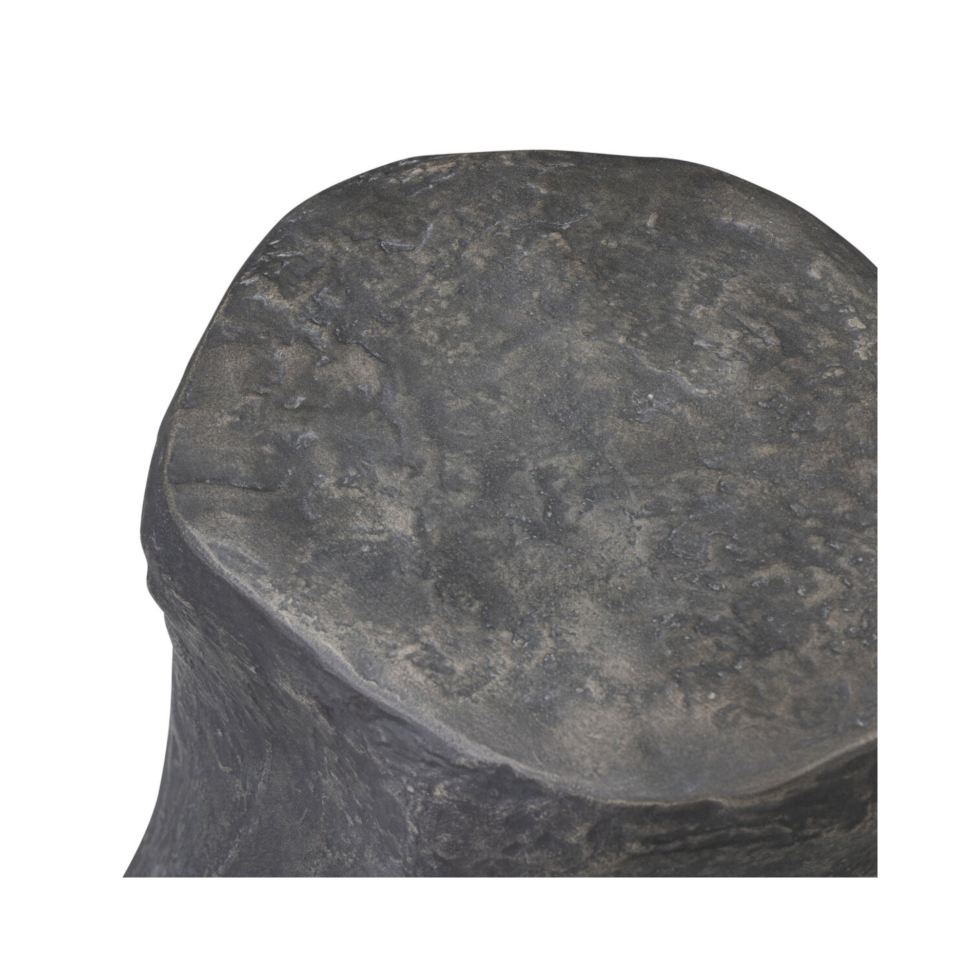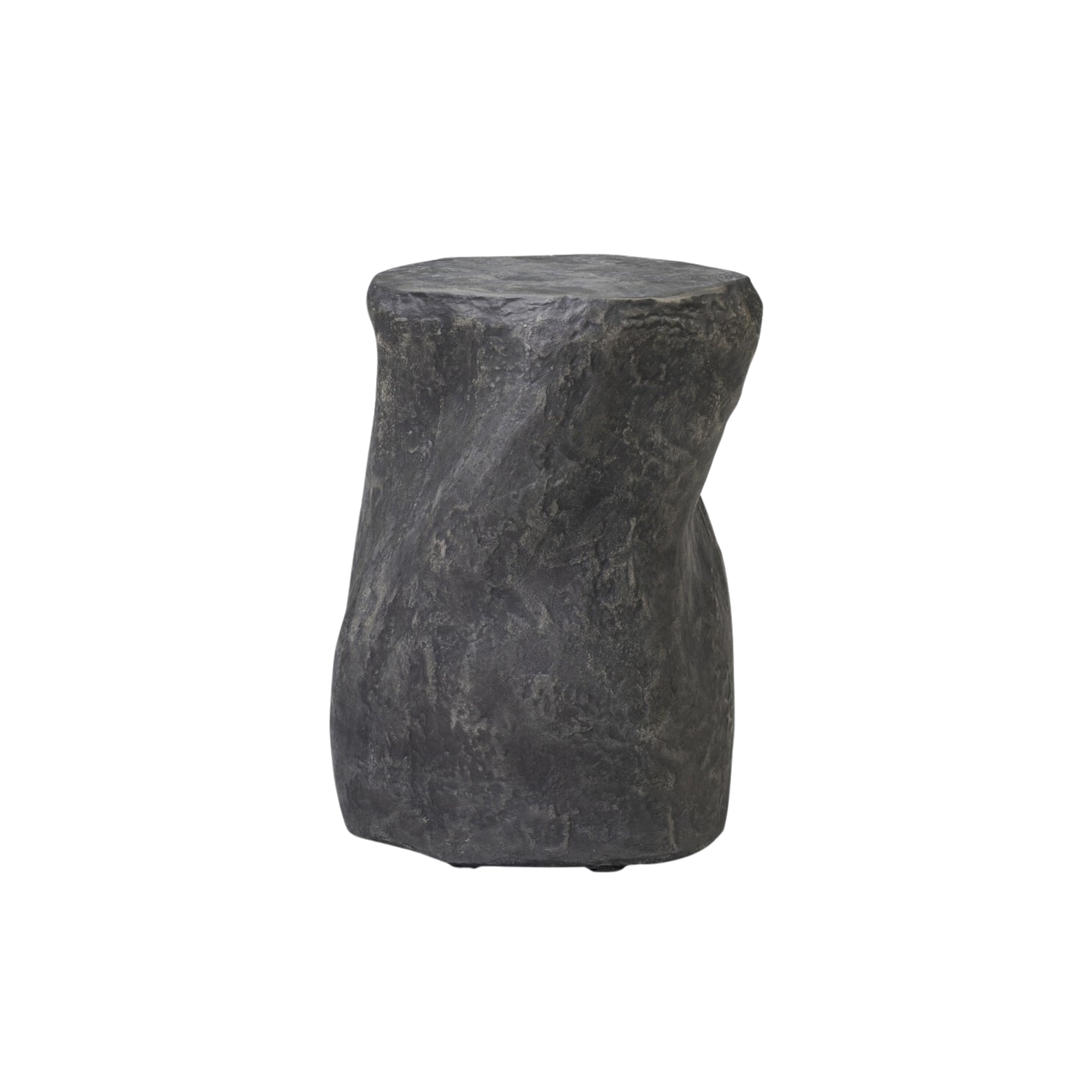 An easy piece to work into any room or collection, an organically shaped end table of textured black concrete is perfectly sized to keep your favorite drink or book within reach.