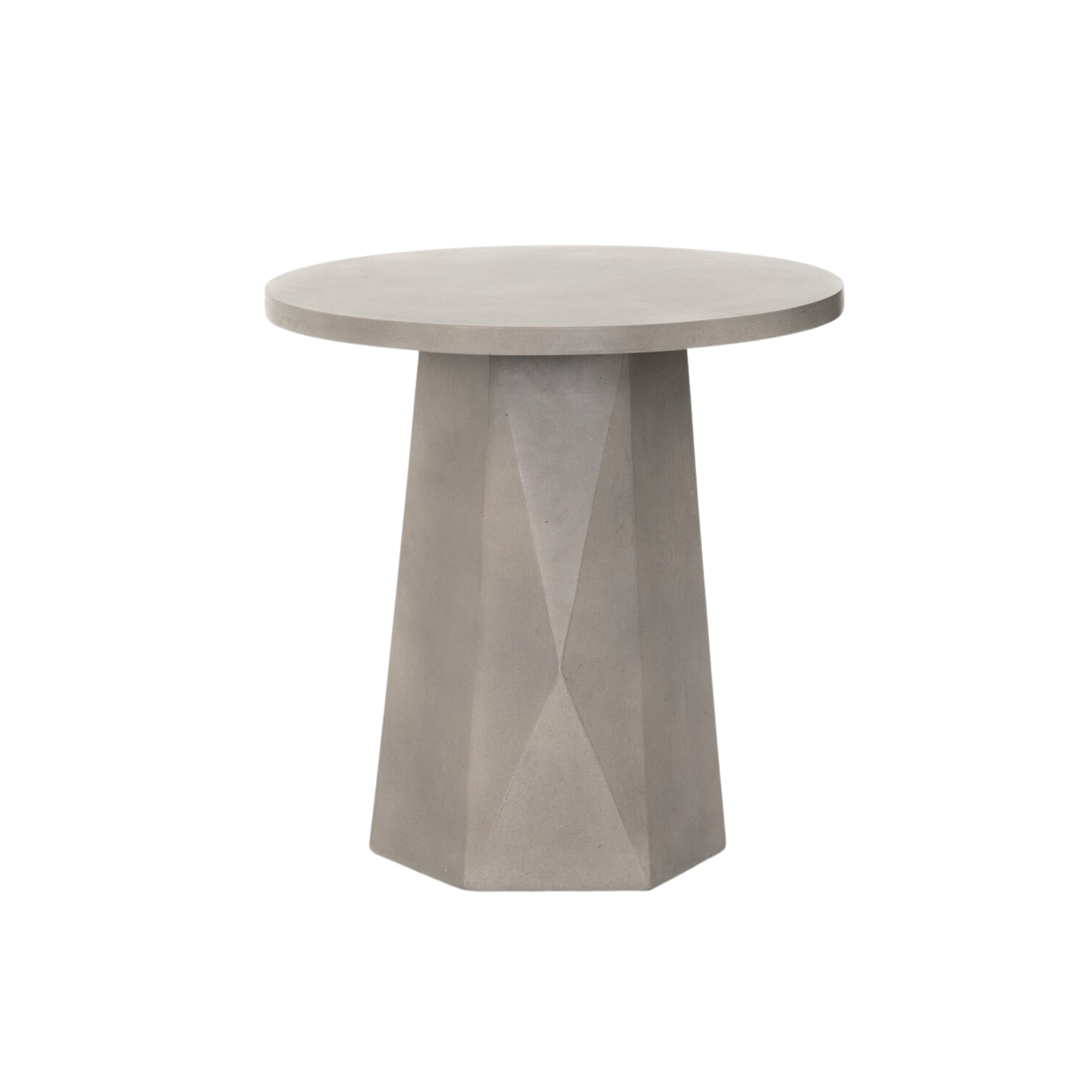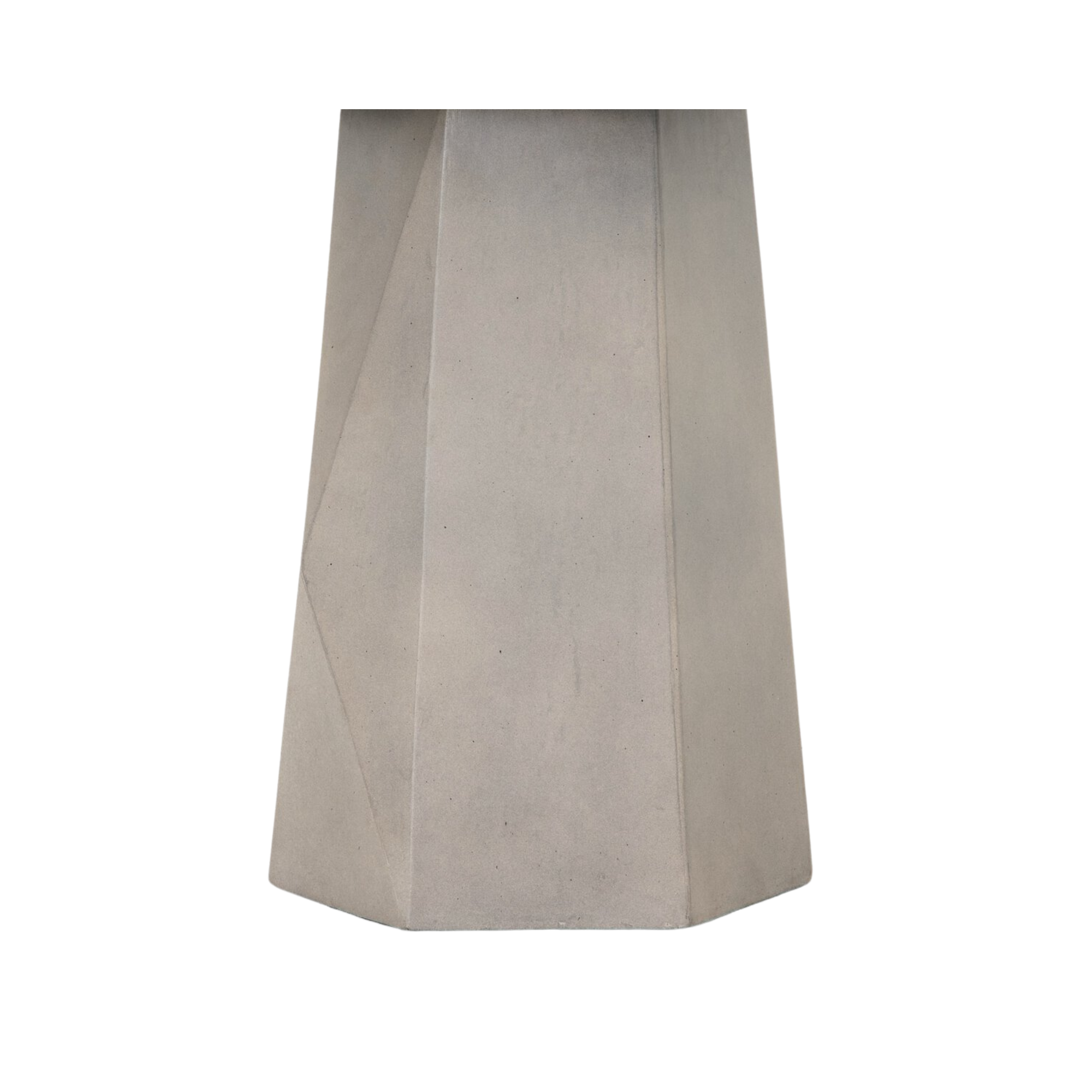 Finished concrete forms a faceted base for impact from every angle. A rounded top is ready to make an organic statement indoors or out. Cover or store inside during inclement weather and when not in use.