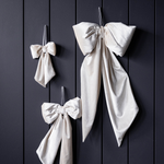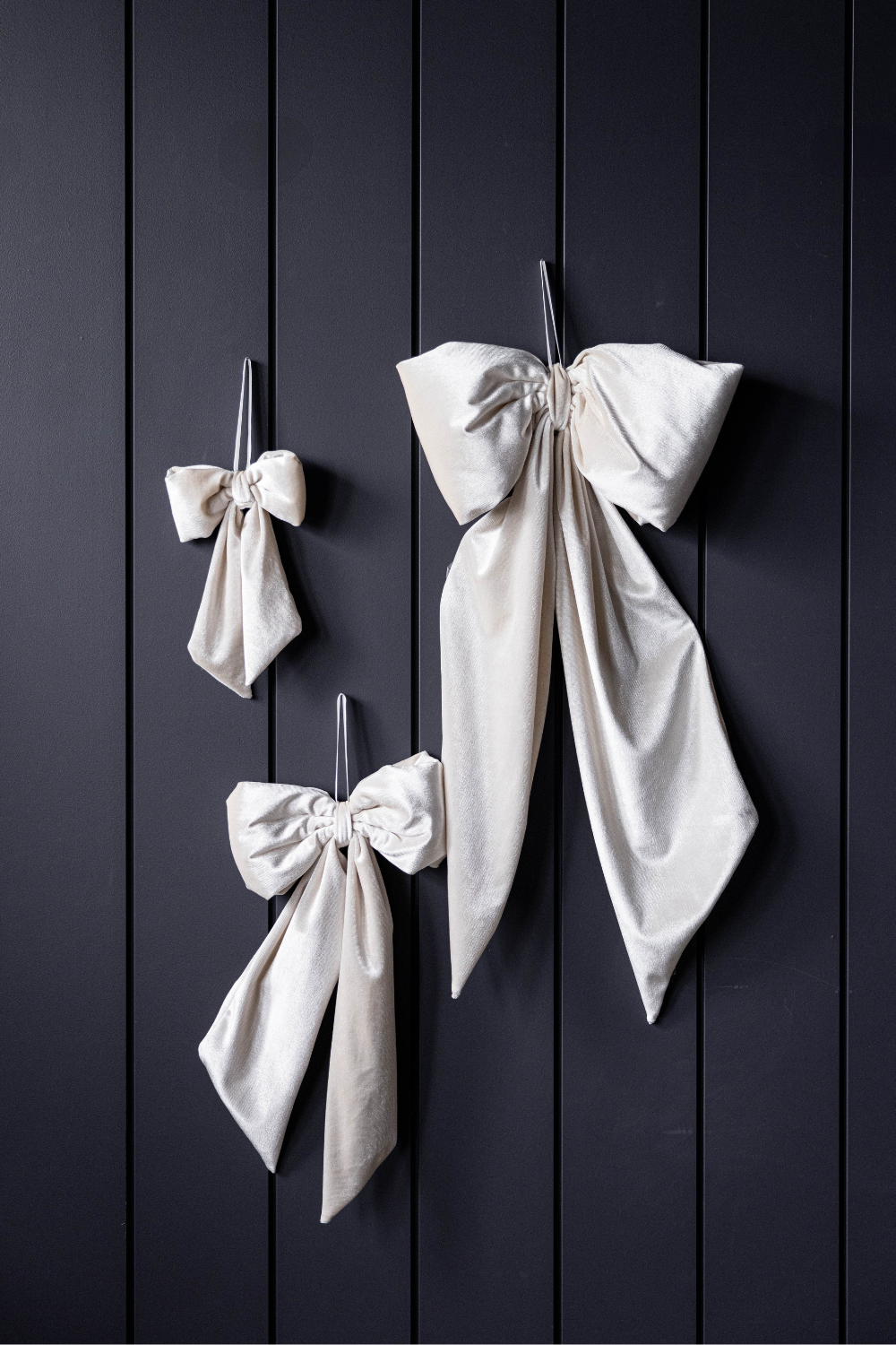 The Cream Velvet Bows are a trendy double-sided bow made from soft, luxurious velvet. Each bow is hand-crafted with a white satin ribbon in the centre, making it easy to hang them seamlessly throughout your home. These Cream Velvet Bows come in 3 different sizes, perfect for attaching to trees, wreaths, or incorporating into gift wrapping. Pair them together or separate throughout your living room, kitchen or bedroom. With its soft cream velvet material, this bow can be easily transitioned from holiday or any festive occasion.