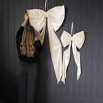 The Oversized White Velvet Bow is a trendy double-sided bow made from soft, luxurious velvet. Our oversized bows are filled with cotton to give their eye-catching full structure, while the ends give their whimsical aesthetic to let you drape the bow on your tree or hang it on your wall. Use our soft cream Oversized Velvet Bows to decorate your home for the holidays or any other special occasions.