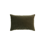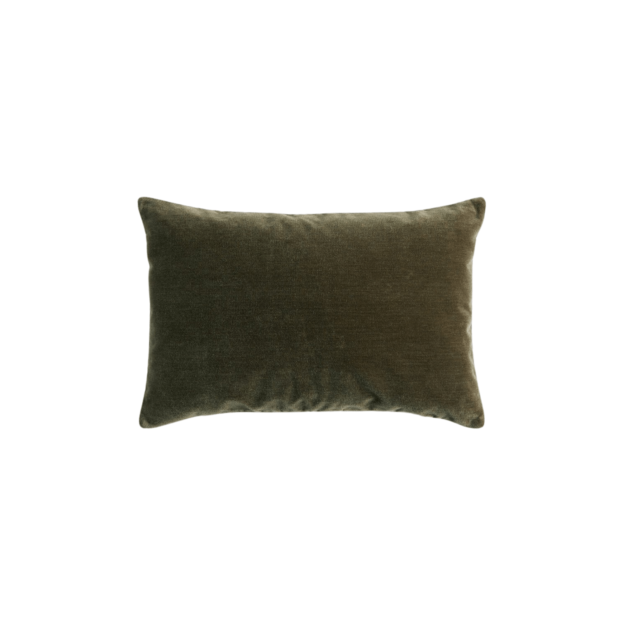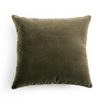 Crafted from saturated solid wool velvet, this olive pillow cover offers a sustainable alternative to mohair. A clean-lined design with knife edges and a hidden zipper.