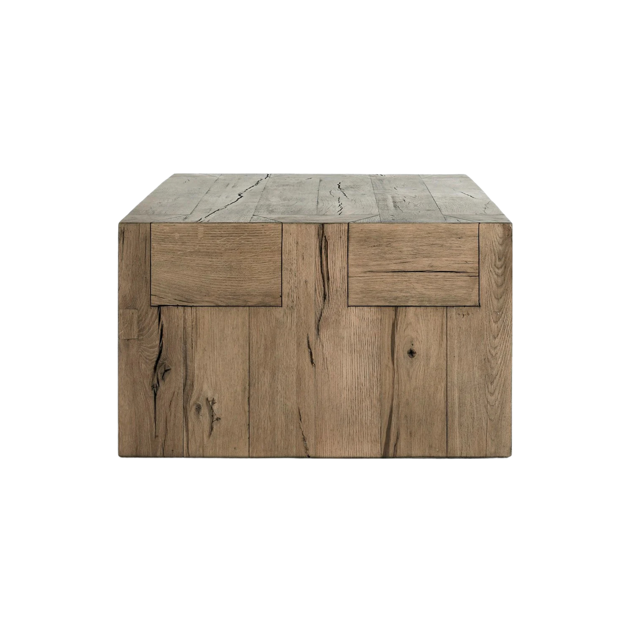 Embrace the beauty of FSC-certified reclaimed oak wood with the Bristol Collection. Featuring a Café Brown, black, and Aged Cream finish with natural cracks, and exposed joinery, this eco-conscious design merges modern elegance with organic charm and durability, sealed with a water-based finish for added protection and sustainability.