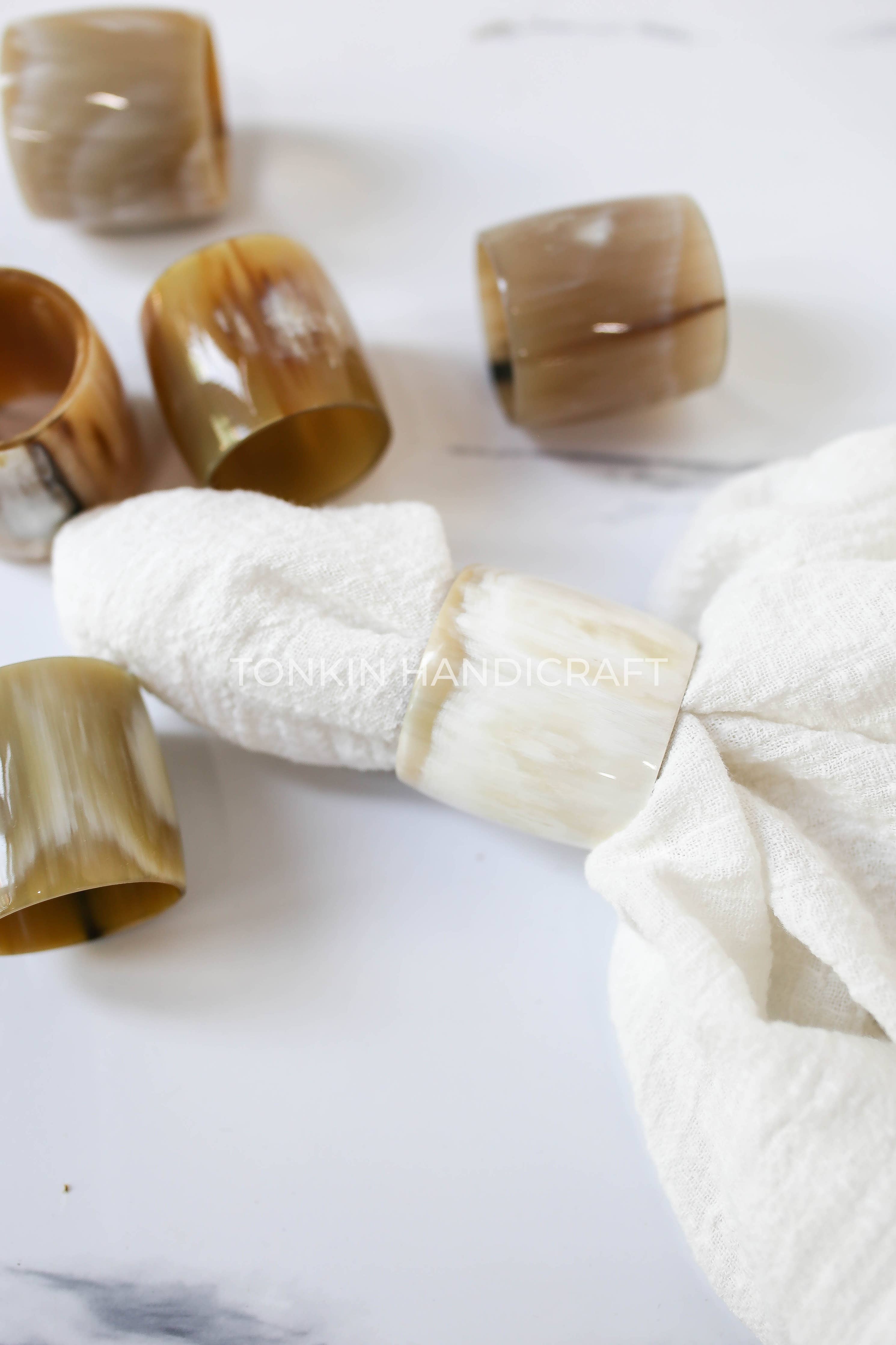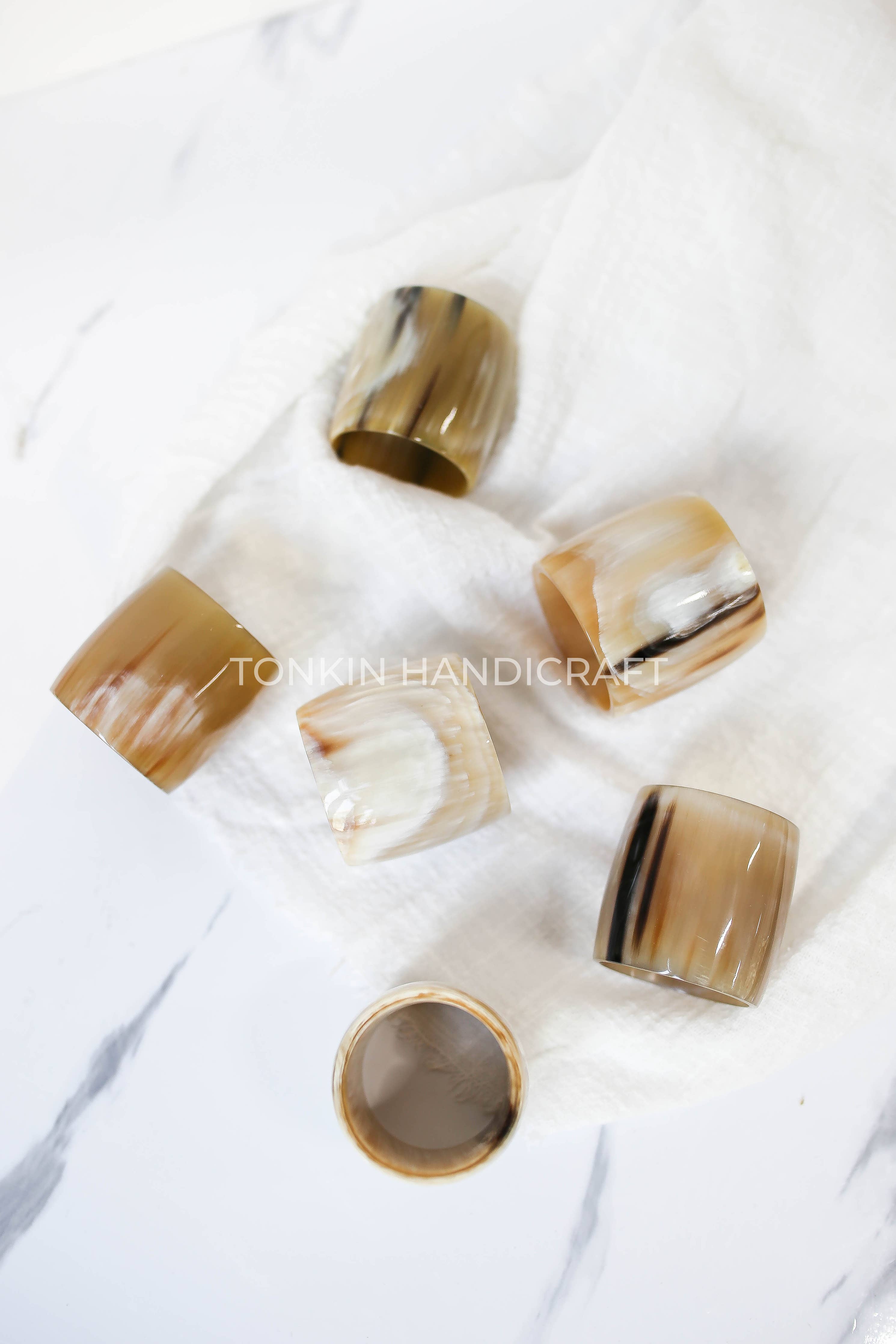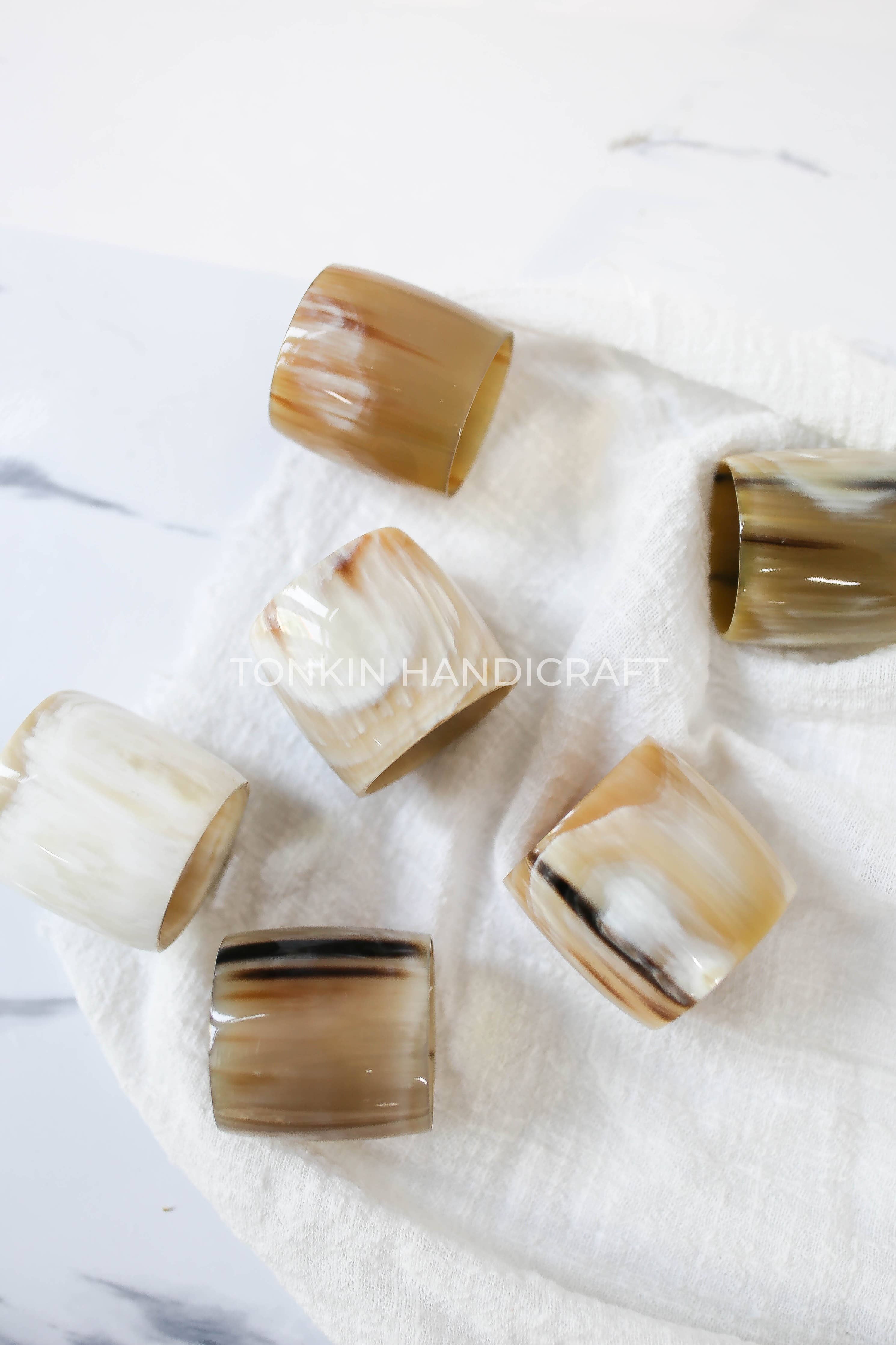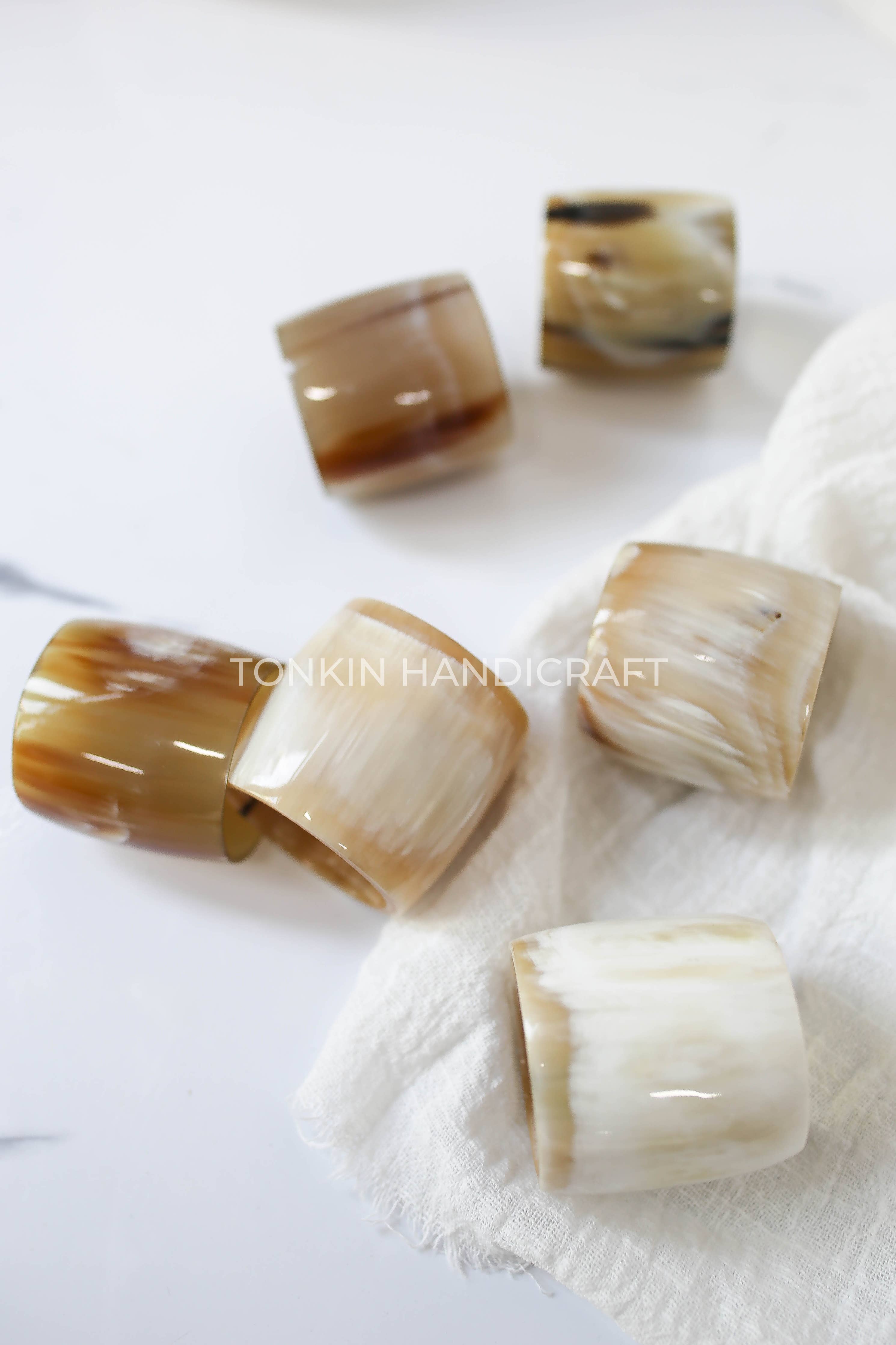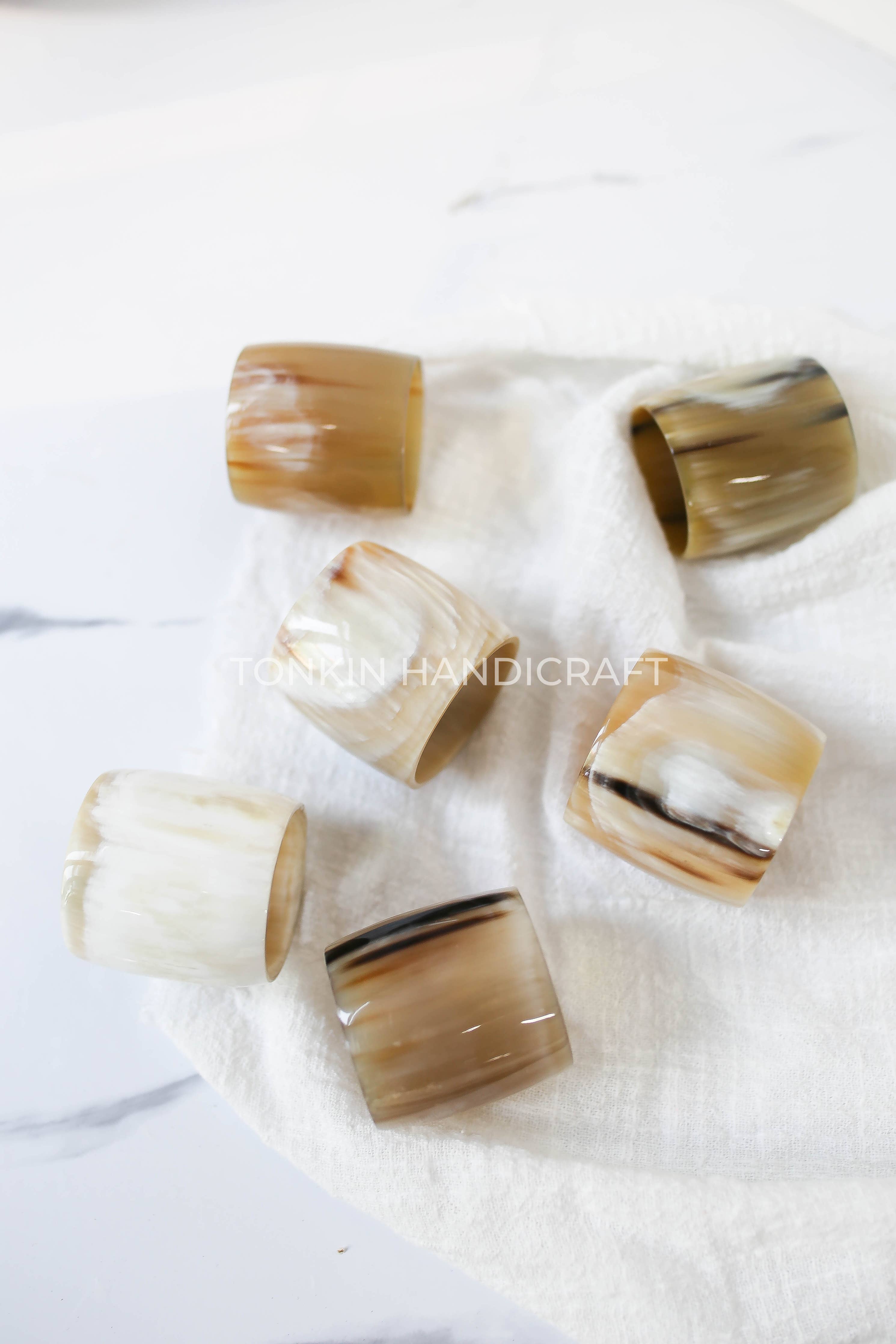 Made manually by Vietnamese craftsmen from 100% high quality buffalo horn with natural colors mixed, unique and chic, lightweight and eye-catching. Horn materials heat-treated makes our horn napkin ring safe to your health. With solid and stable material, making napkin holders that last for years.