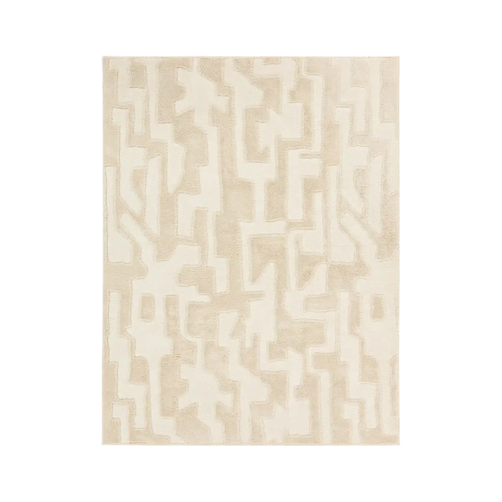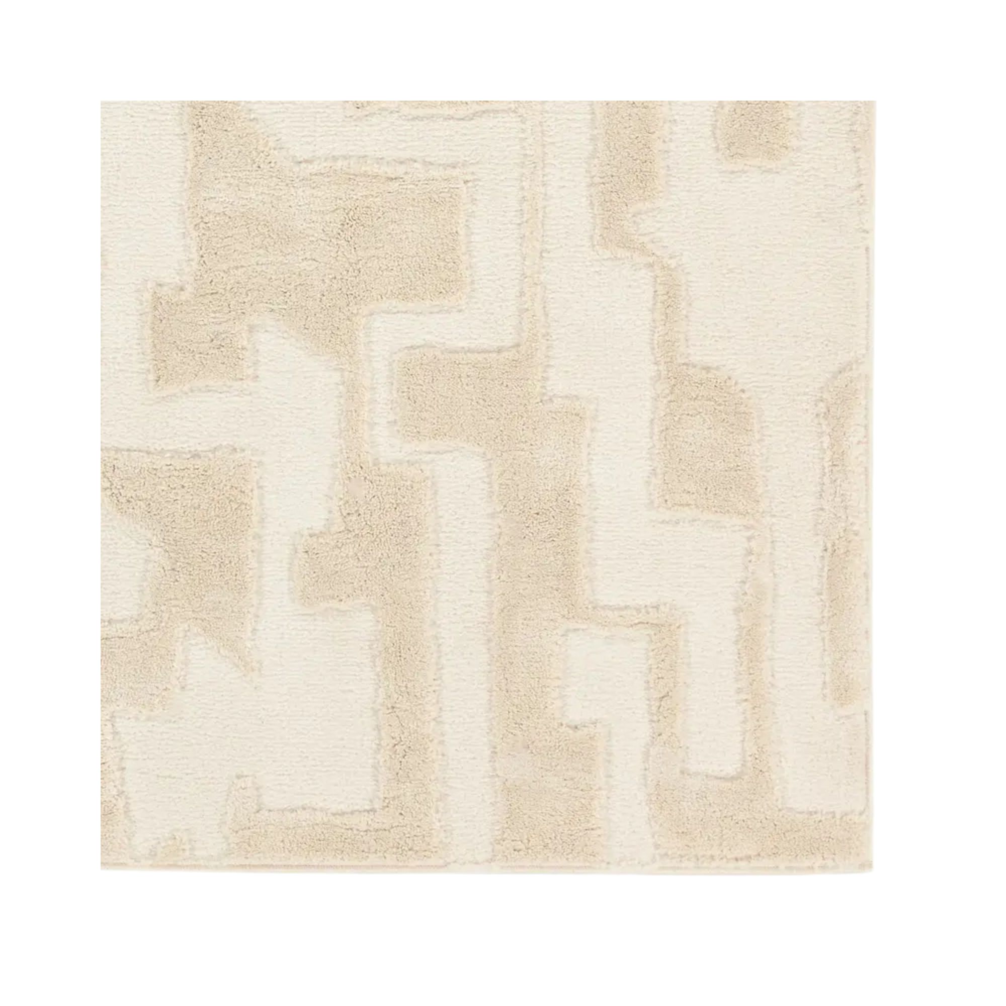 Modern geometrics and a lustrous sheen define the Calix Collection by Nikki Chu. The soft, plush pile features high and low areas for added texture that delights underfoot. The Demir design showcases a white Brutal geometric pattern, exuding modern elegance. Crafted from a durable blend with natural stain resistance, it effortlessly combines style and practicality.