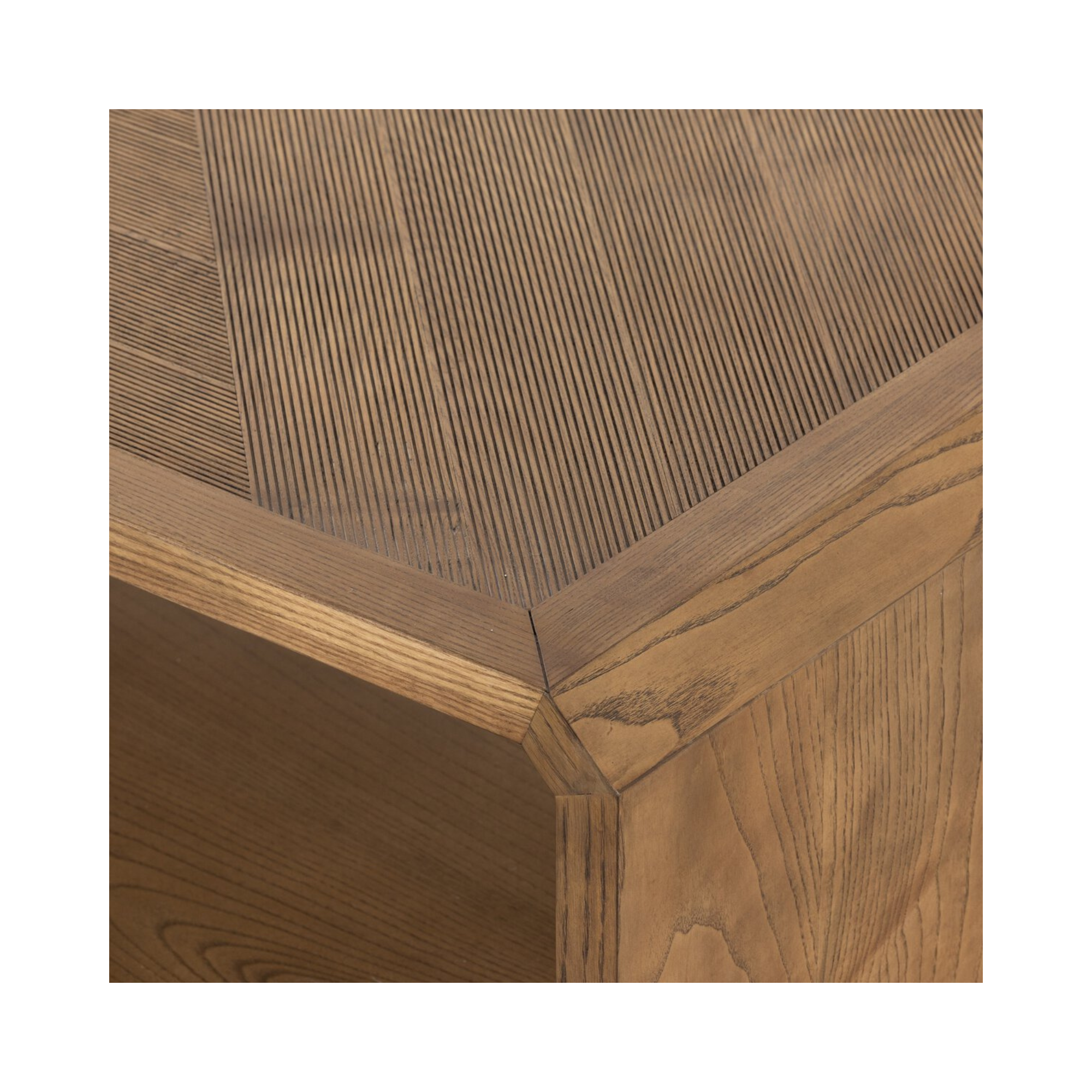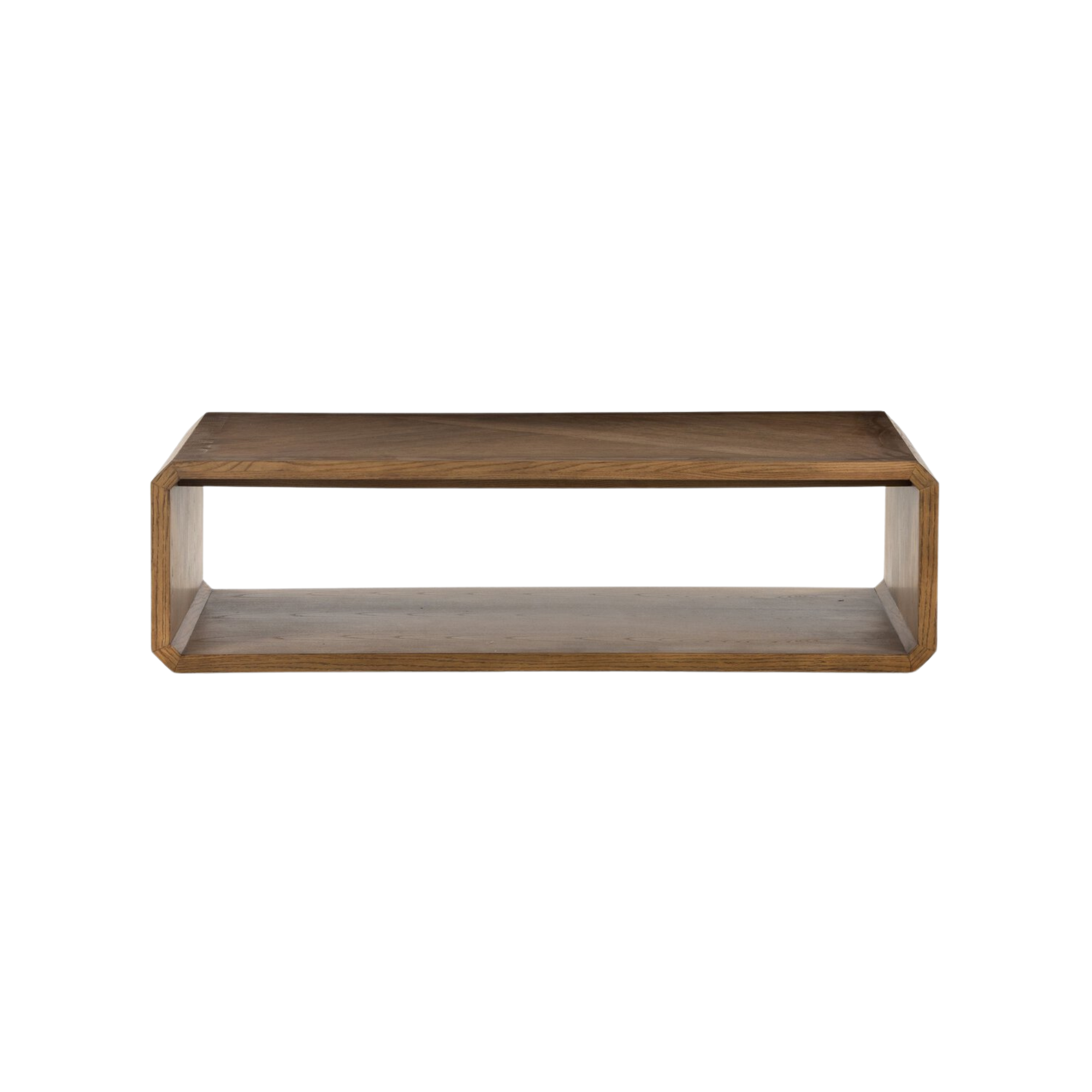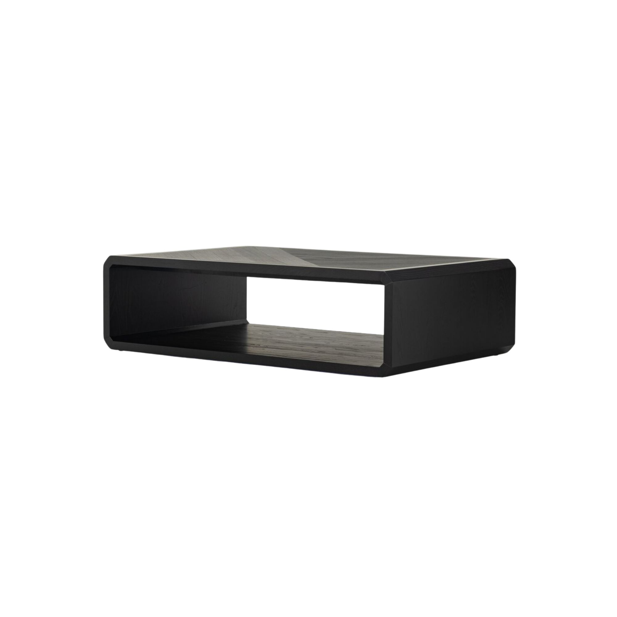 Complete your living space with this minimalistic coffee table. Crafted with clean lines, chamfered corners and an ash base, this serves as timeless centerpiece for your coffee breaks and gatherings.