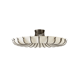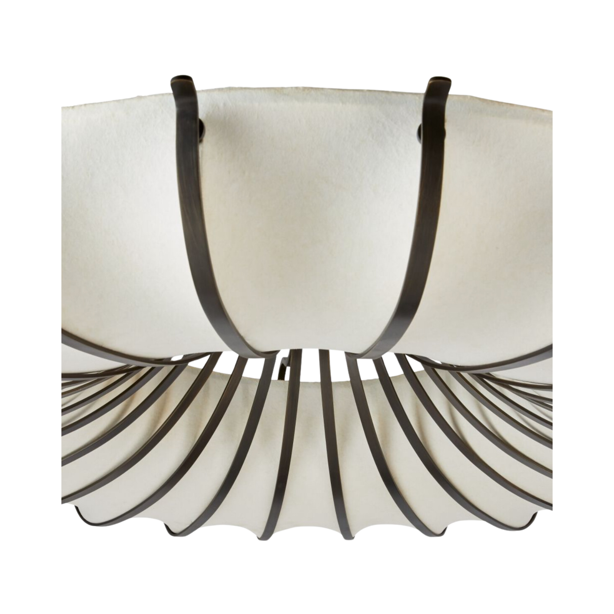 Inspired by the natural world, a jellyfish-inspired steel armature finished in English bronze creates the visual illusion of depth. Accented in waves of ivory faux vellum, this impactful fixture blends the best of flora and fauna to add a textural glow to any surface. Finish will vary.