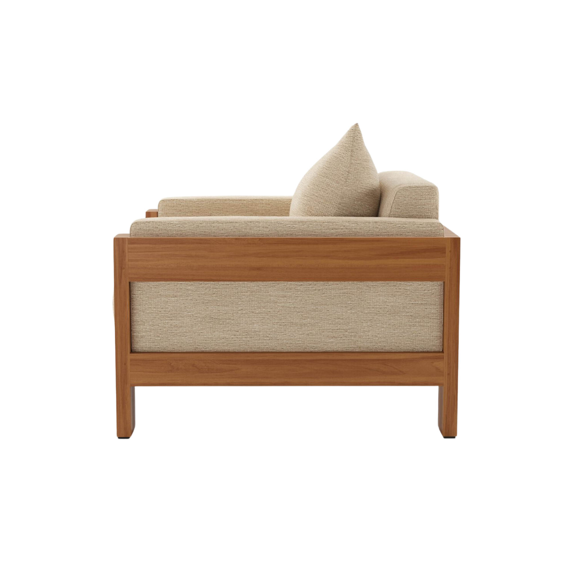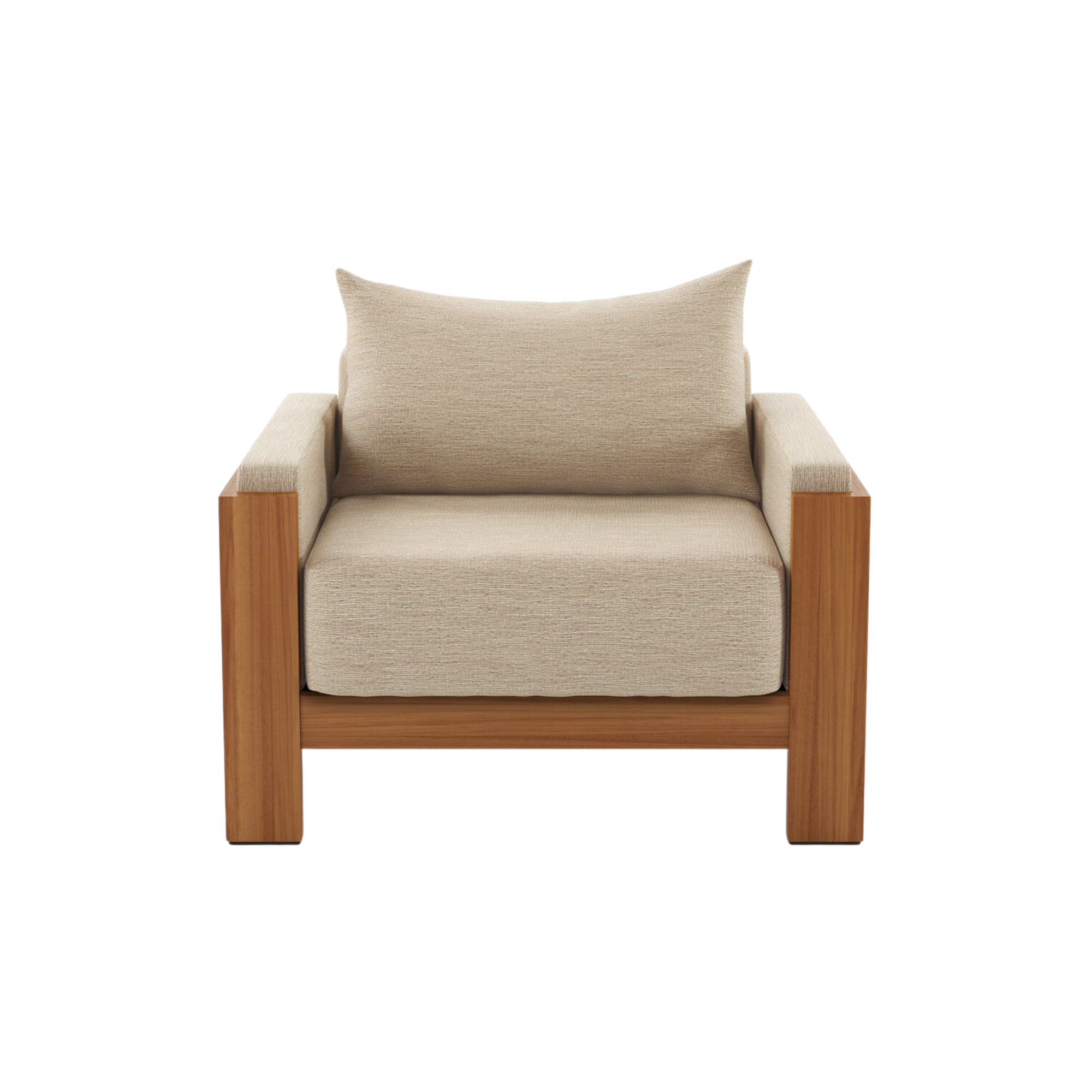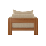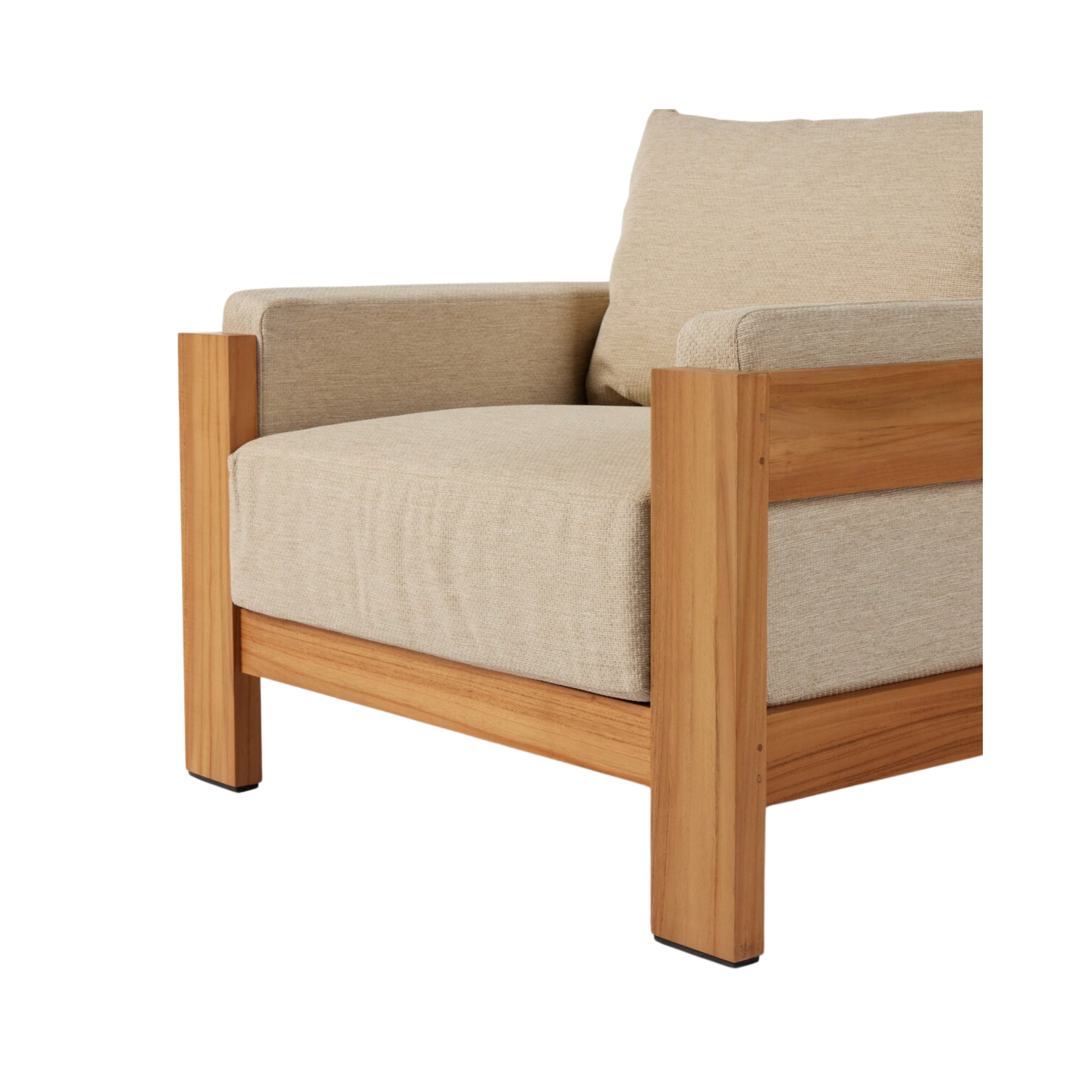 Framed by FSC®-certified teak with a light, natural finish, wide proportions and soft, thick cushioning offer effortless comfort designed for outdoor lounging. Neutral beige hue and minimalist form makes this an easy piece to move between different styles and settings. Cover or store inside during inclement weather and when not in use.