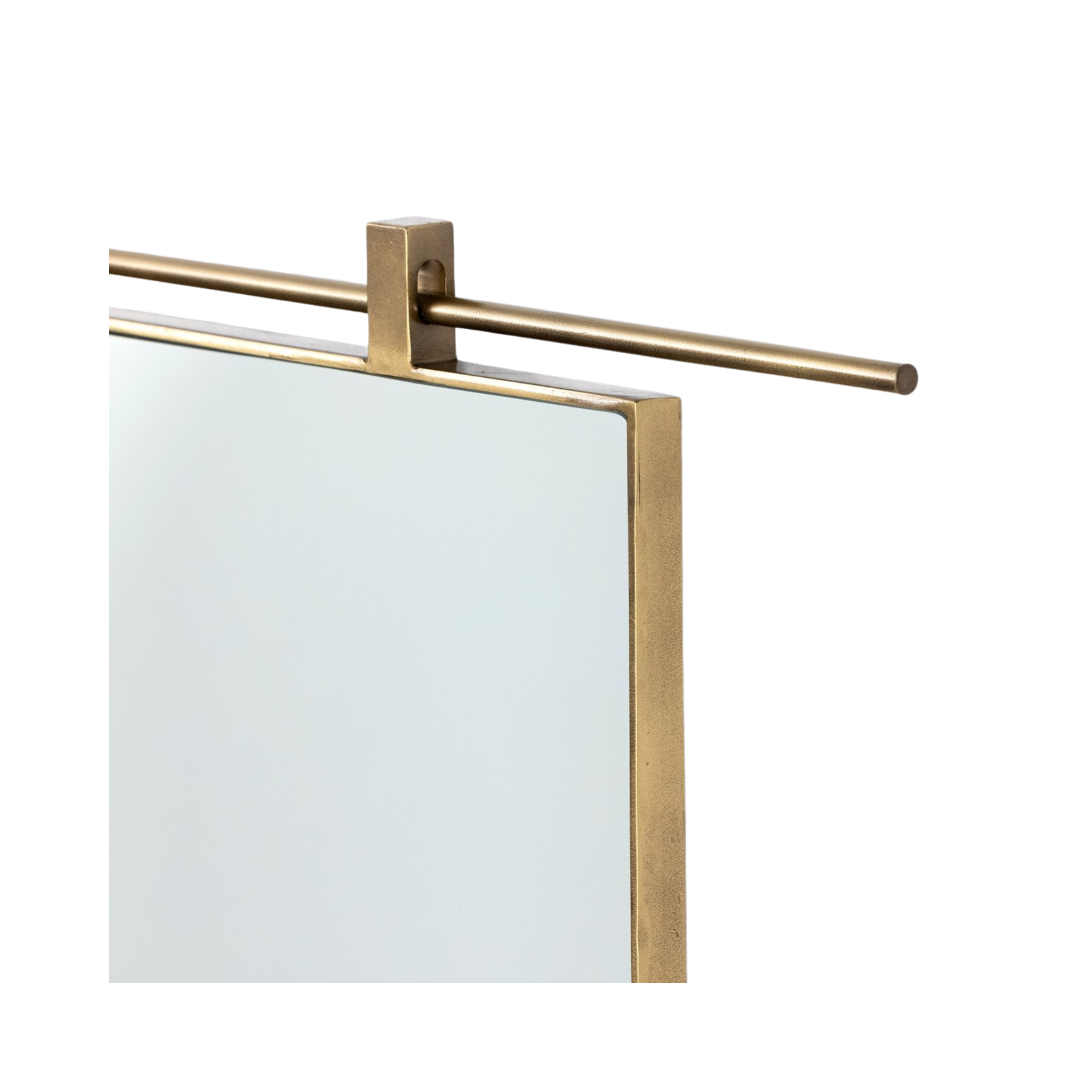 A slim antiqued iron bar suspends a simple square for a streamlined, modern-minimalist look. Posterior cleat for secure hanging.