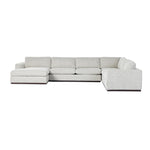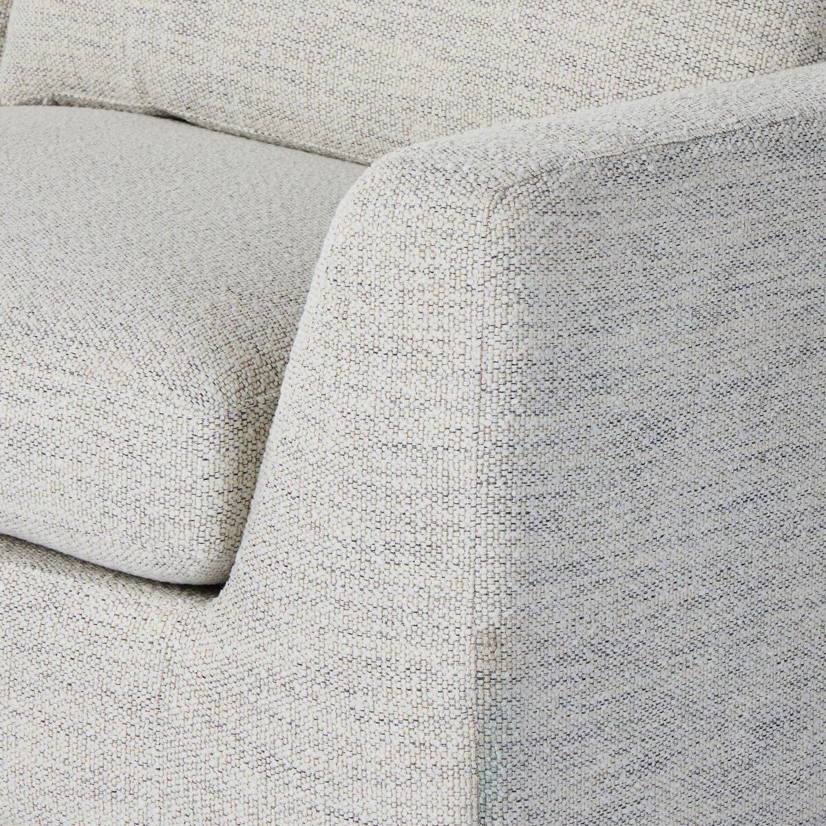This four-piece sectional is upholstered in a boucle cotton-blend performance fabric with subtly flared sides and a plinth-style, wrapped wooden base. Performance fabrics are specially created to withstand spills, stains, high traffic and wear, ensuring long-term comfort and unmatched durability.