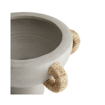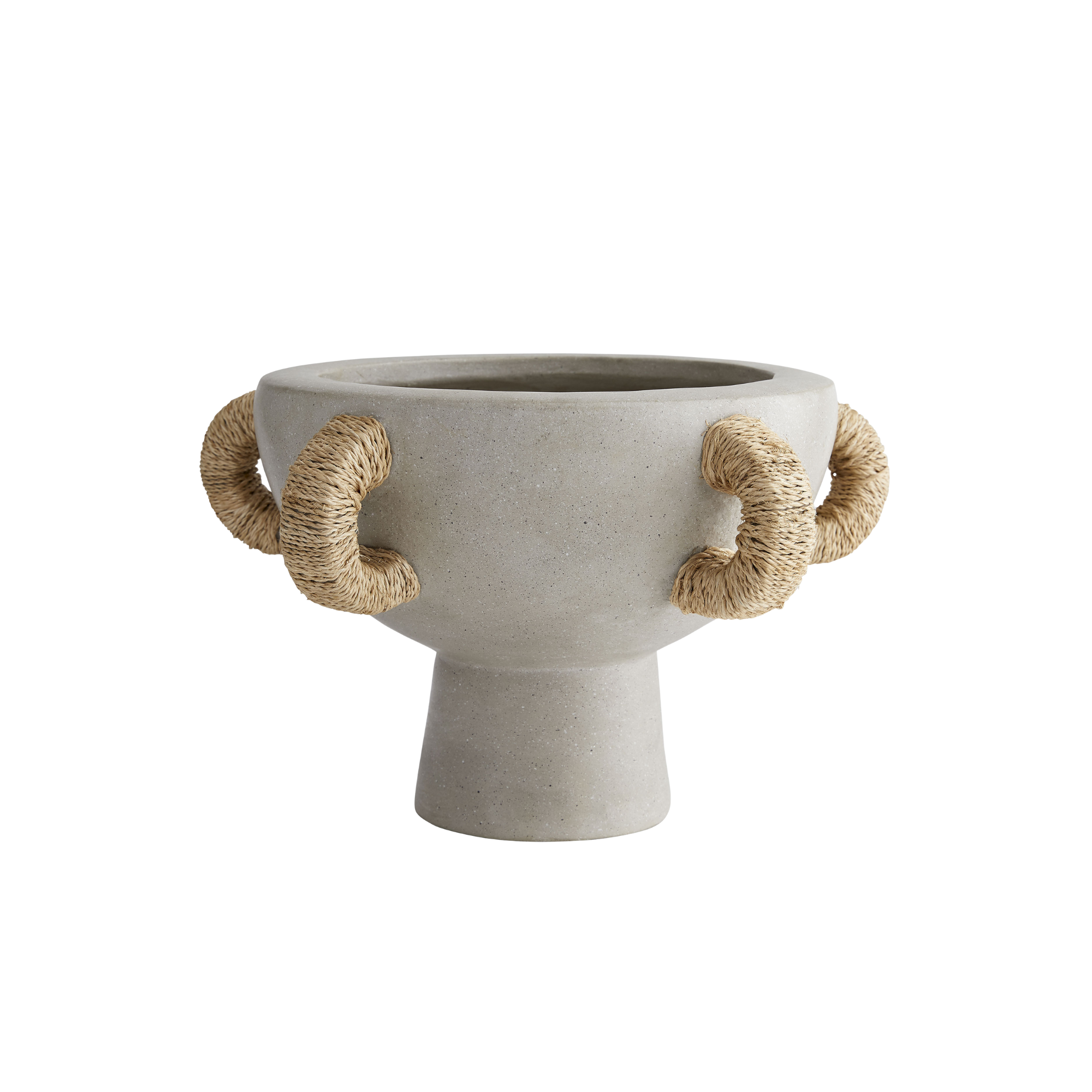 Natural materials play in our Clyde centerpiece to create a novel aesthetic. Terracotta is molded into an almost kylix-shaped piece and finished in fossil gray before being fashioned with five abaca-wrapped handles. A stylish and sturdy option for centering a tablescape indoors or in covered outdoor areas.
