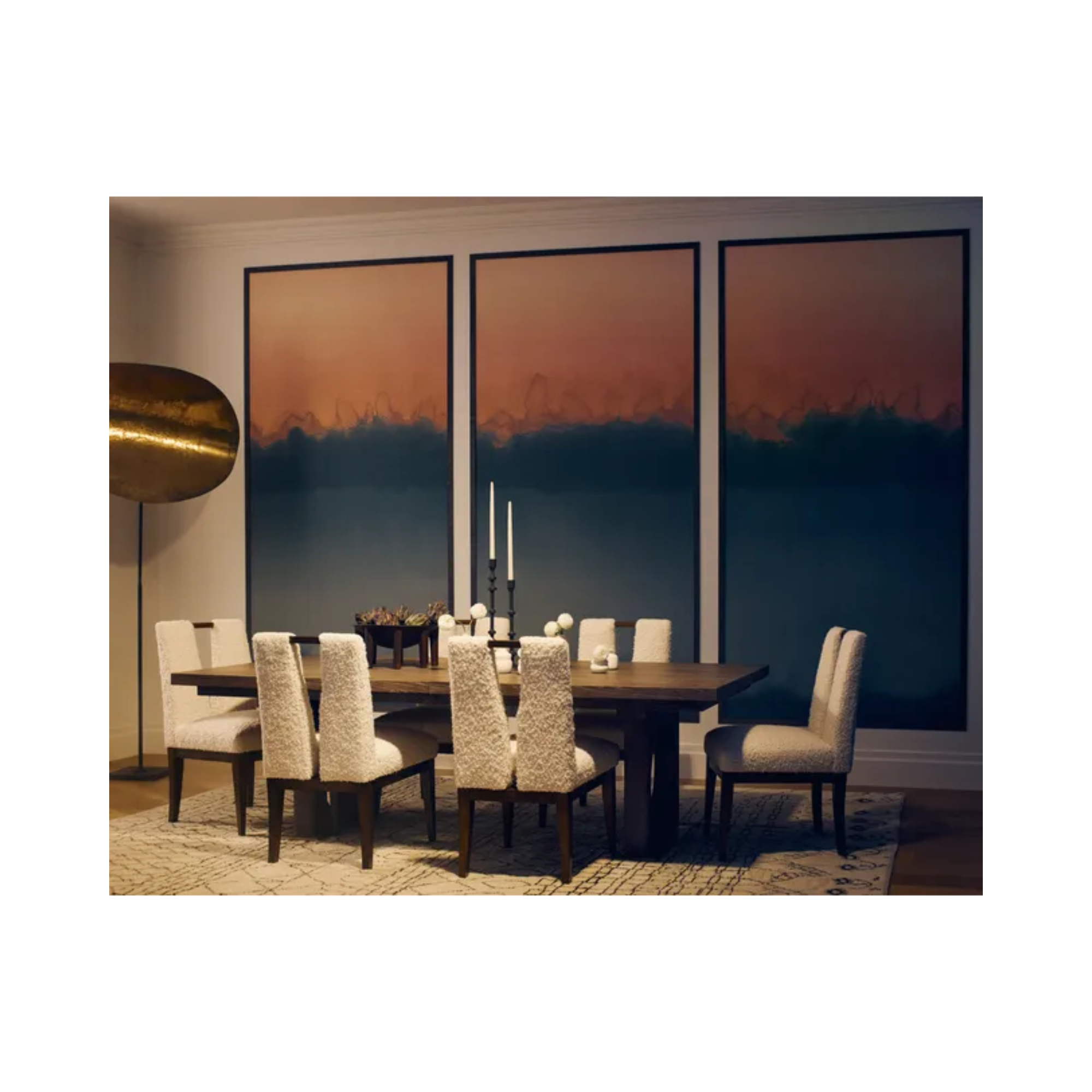 Drawing inspiration from landscapes at dusk and dawn, this distinctive print presents an abstract rendition of the sky and horizon. Colorscape was reimagined as a three-panel set which seamlessly blends captivating hues and textures, creating a bold statement that transforms modern spaces into lively celebrations of color and style. Initially crafted using just water, paint, and traditional French "buvard" paper, the original artwork achieves rich layers of color that sensually bleed into each other. Manufacturers hanging instruction will be sent with purchase.