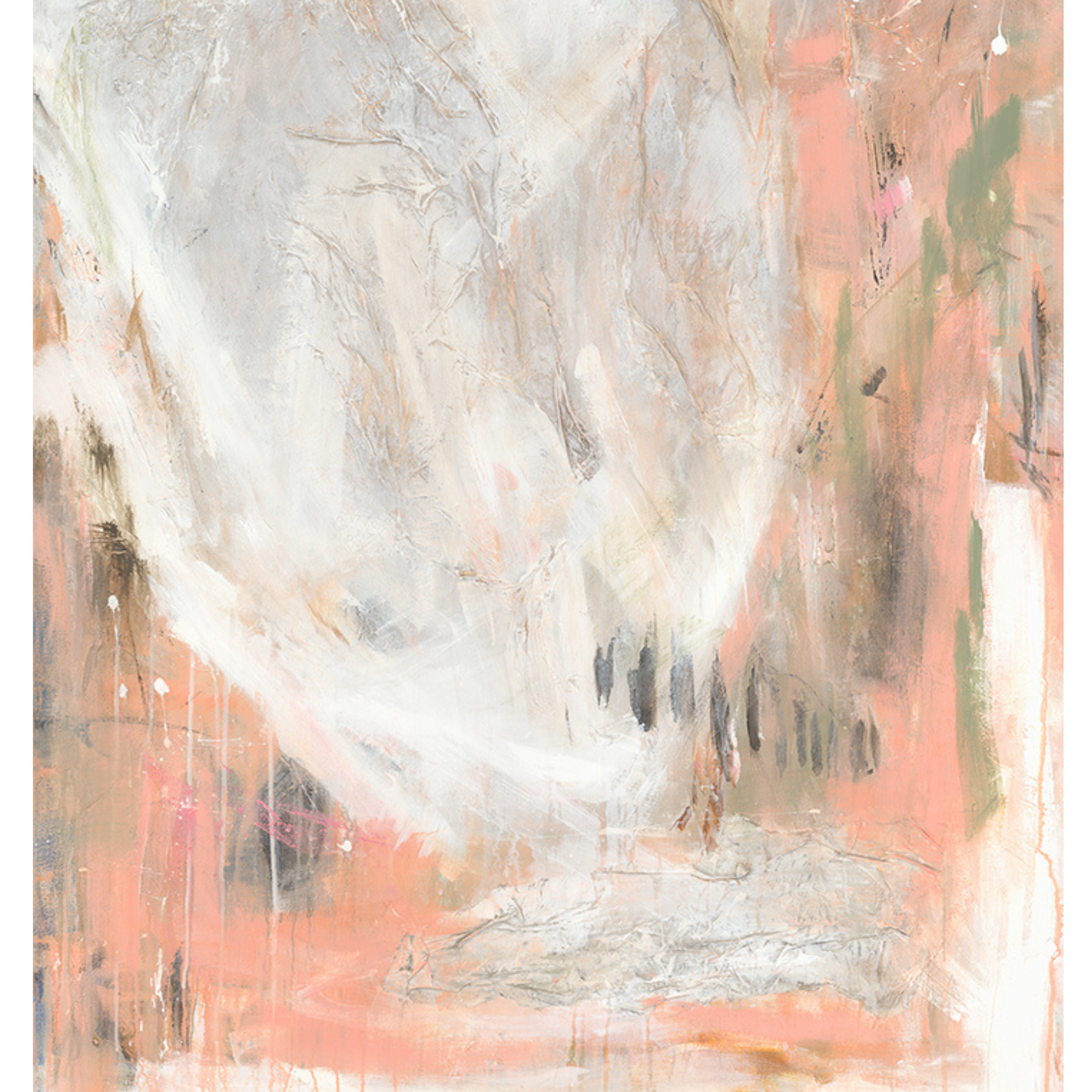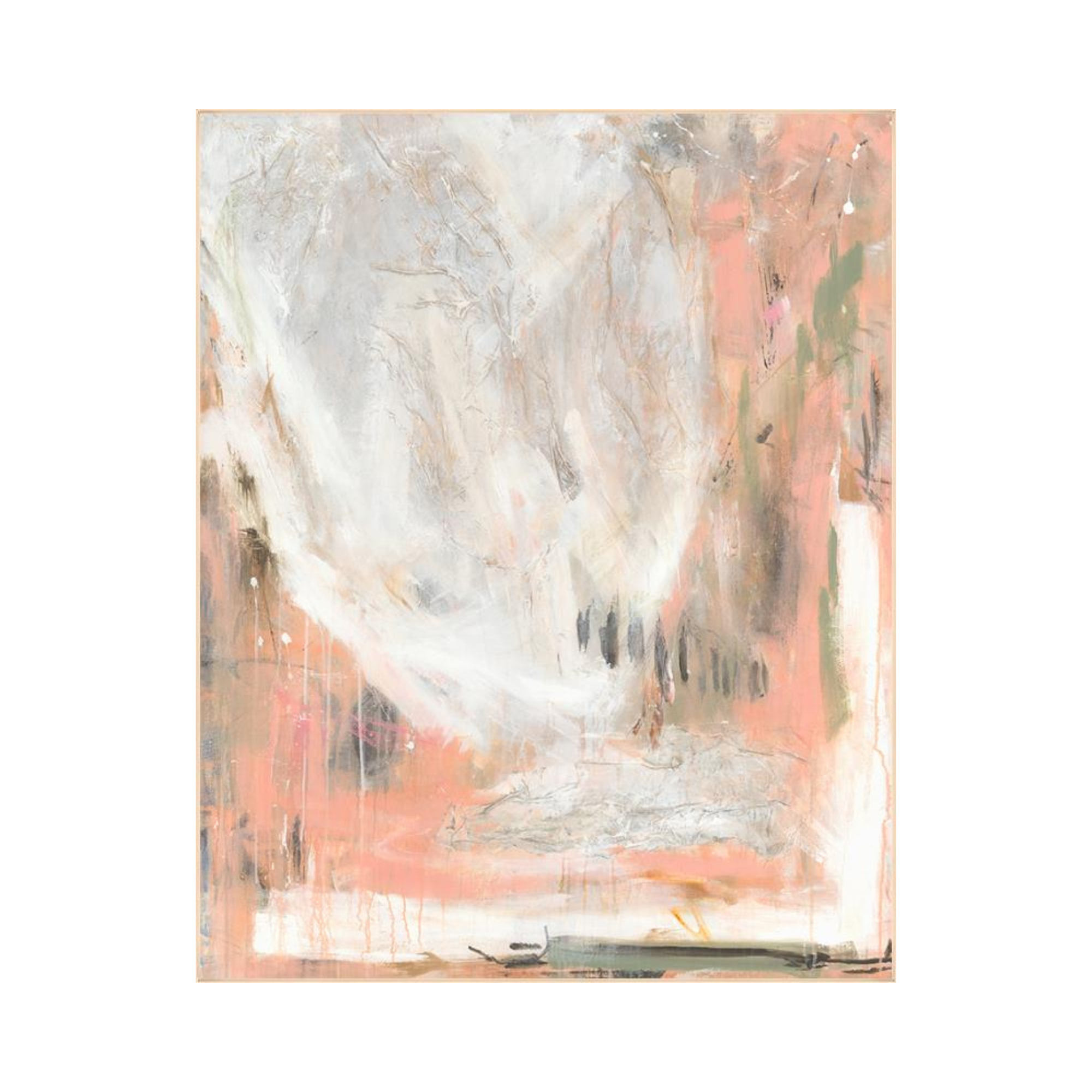 Brush gel image on canvas. Comes with pre-installed hardware for hanging.