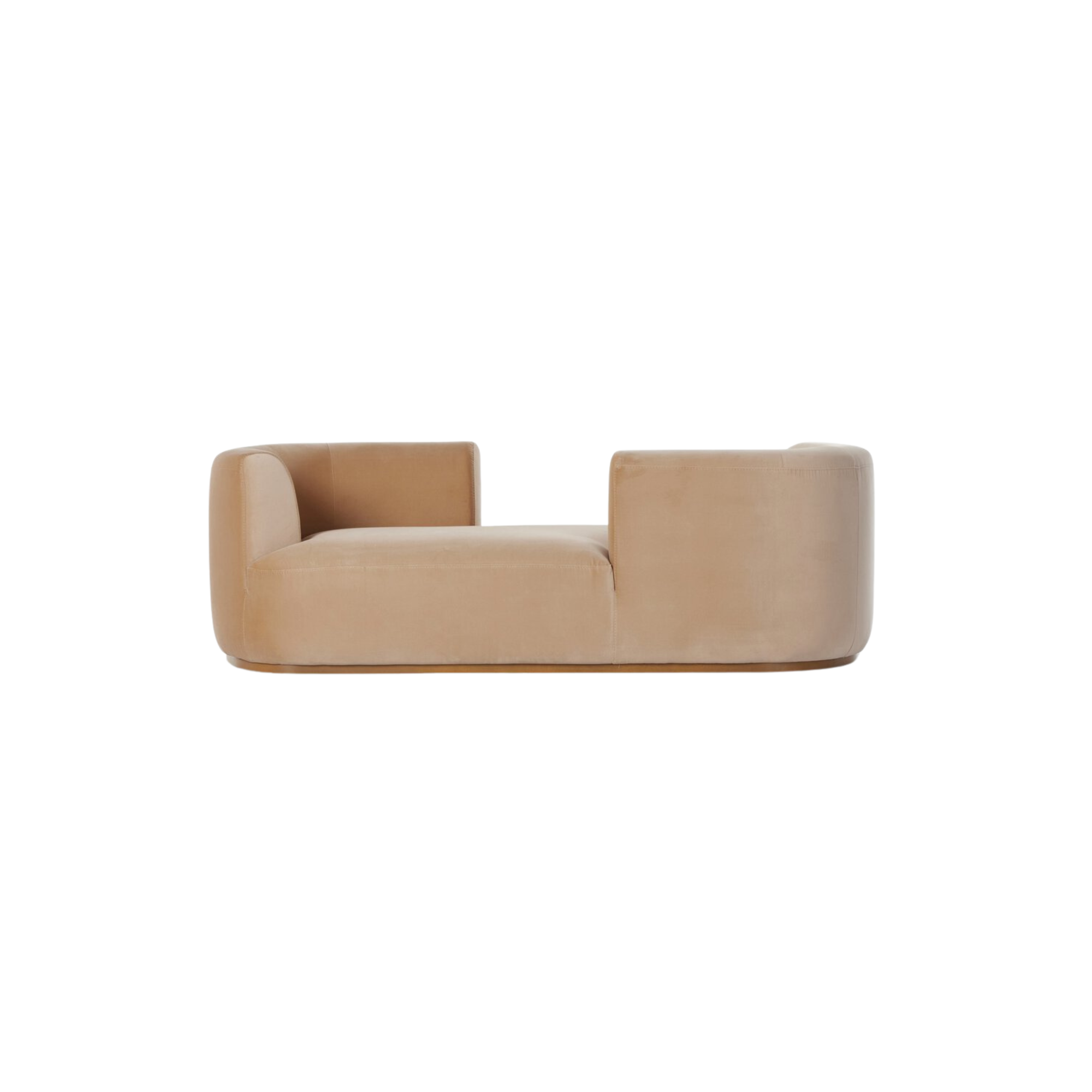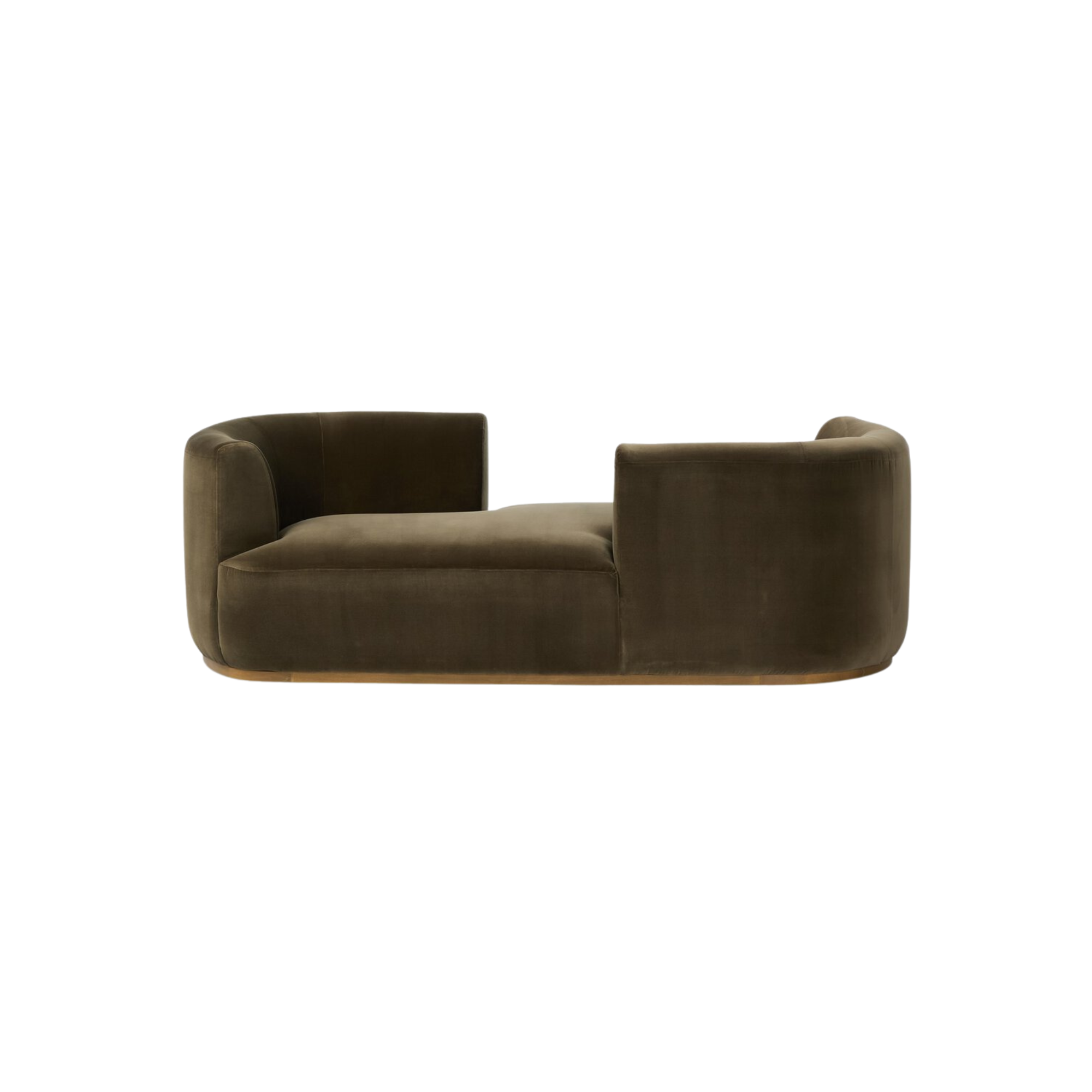 Modern European inspiration and plush curves come head to head in this stylish chaise. Upholstered in a velvety cotton blend fabric or performance fabric that feels both casual and elevated. A base of Rosa Morada wood grounds the entire piece.