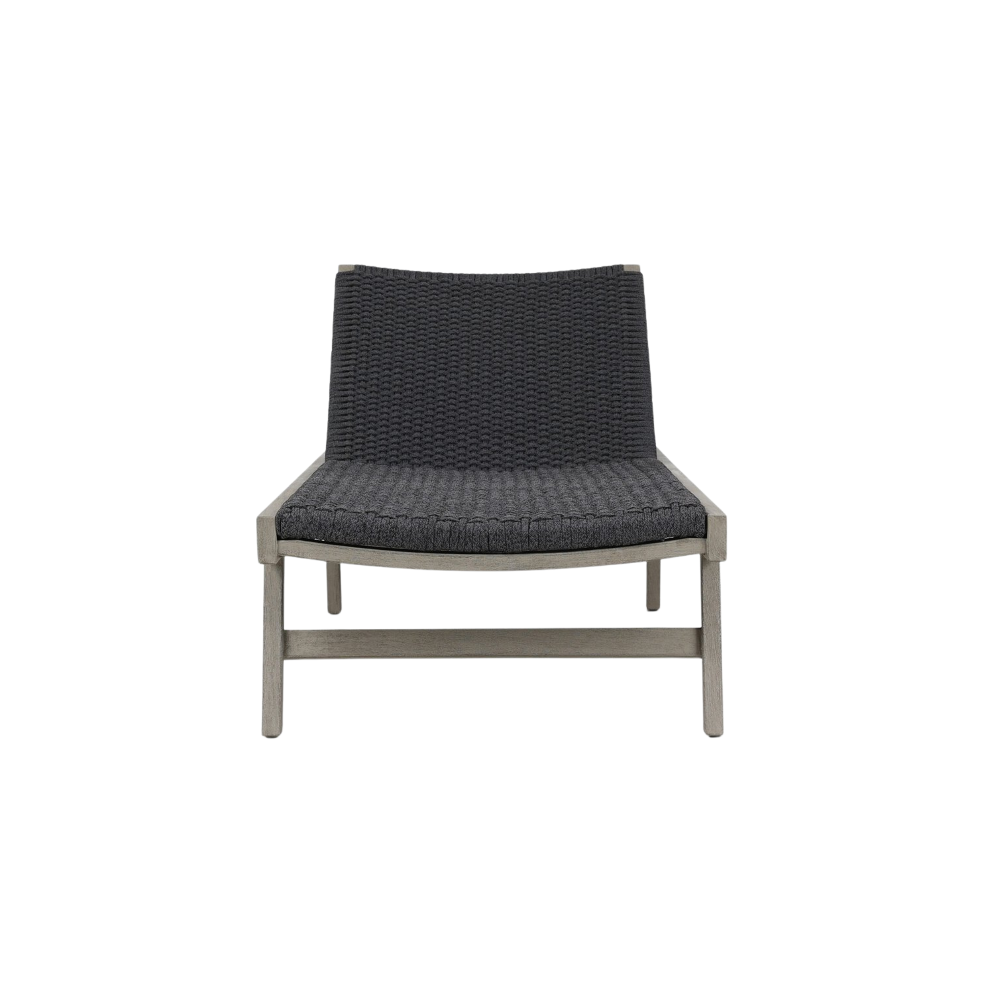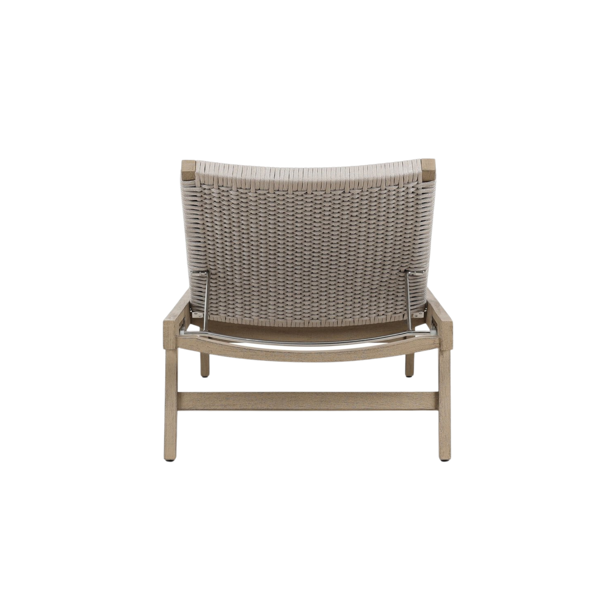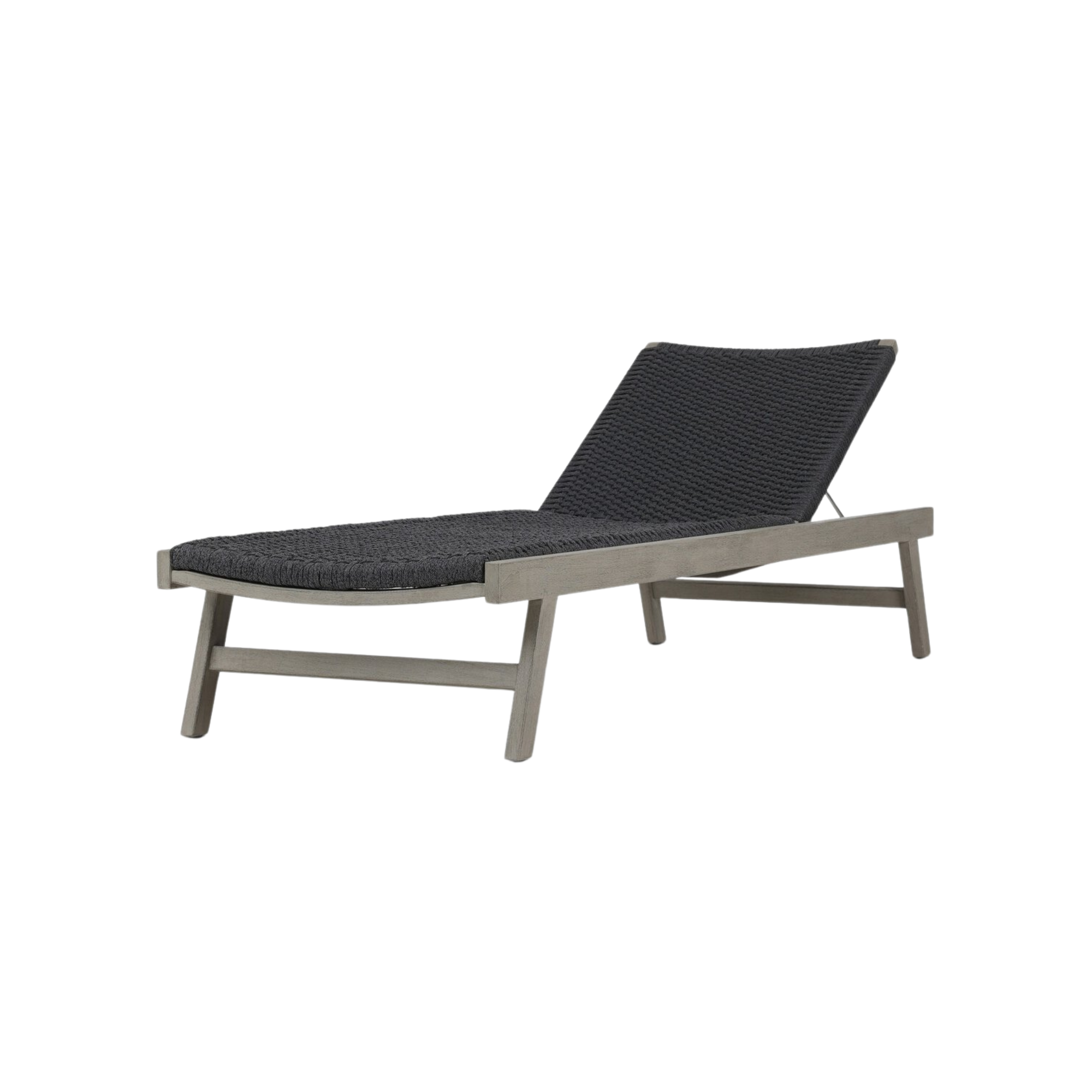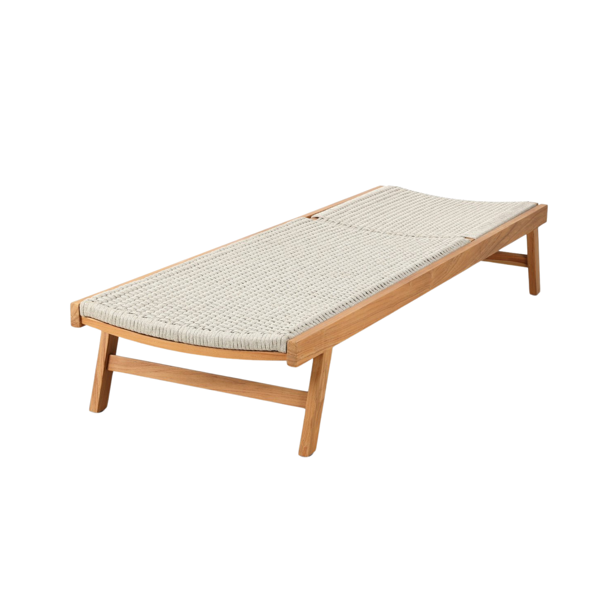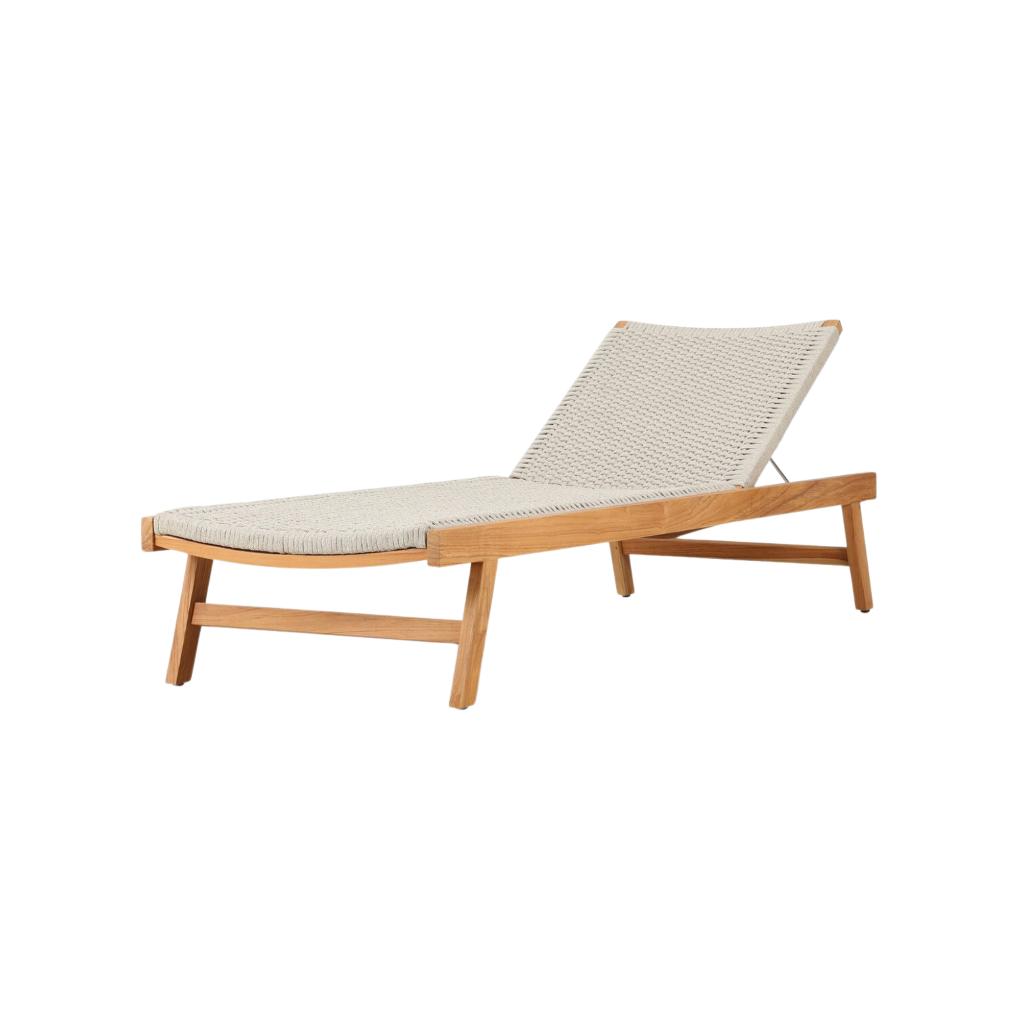 For a texture-driven take on the outdoor chaise, brown FSC-certified teak forms a sleek, adjustable frame for thick, handwoven rope. Cover or store indoors during inclement weather and when not in use.
