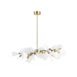 Antique brass-plated steel delivers the drama in one singular, showstopper fixture. Designed with clear, seedy slump glass forms that flow in a wave-like silhouette, the overall effect resembles textured crystals or the shimmering scales of a reptile. A slim antique brass-plated steel pipe and circular plate anchors to the ceiling. Finish will vary.