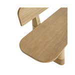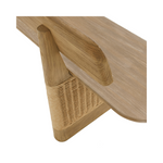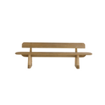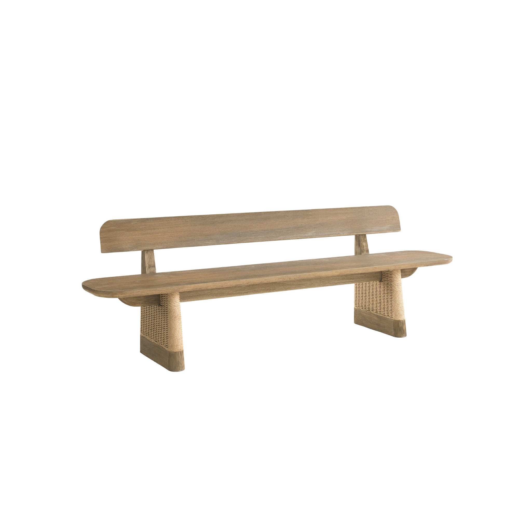 The Delrio Outdoor Bench mixes Japanese minimalism with Southwestern warmth, crafted from sturdy teak wood. Its low-slung design features a supportive back and seat that comfortably cradle the body. Each angled leg is wrapped in matching honey-toned synthetic rope, enhancing durability and style. A notched detail where the back meets the base creates a floating effect, making this bench a stunning addition to any outdoor seating area.