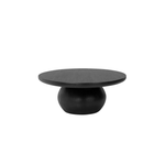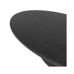 Anchor your space in shape with a beautifully contoured coffee table of worn black resin designed to mimic oak. Rounded oval top features reverse bullnose edging for a design-forward touch.