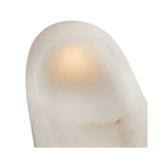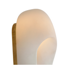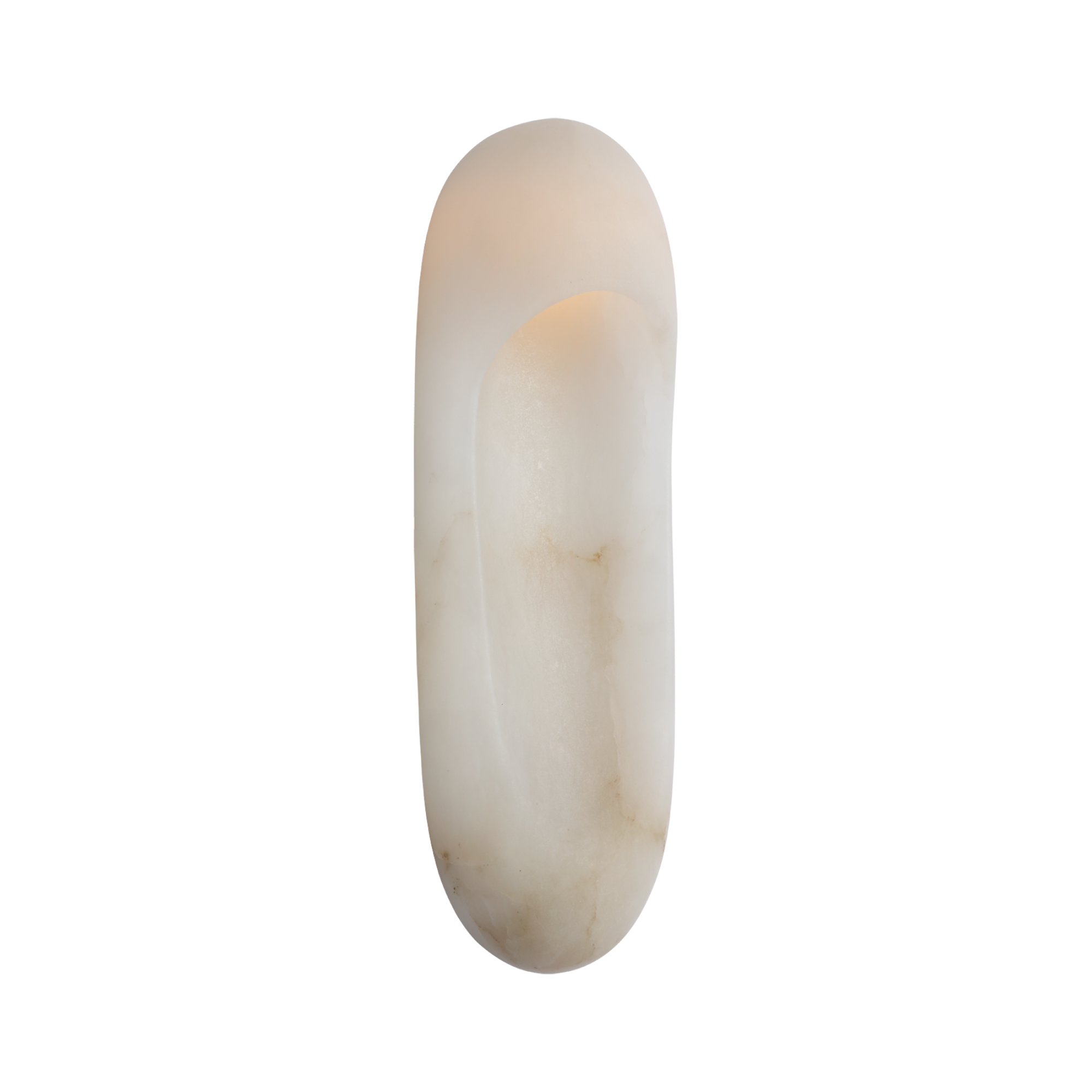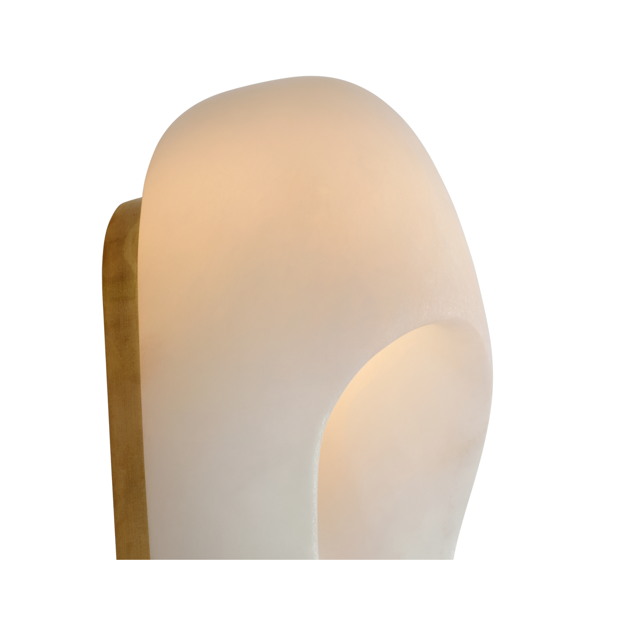 The Esculpa 18" Elongated Wall Light is crafted in alabaster and antique-burnished brass, giving this light an ethereal form to cast light in dark places.