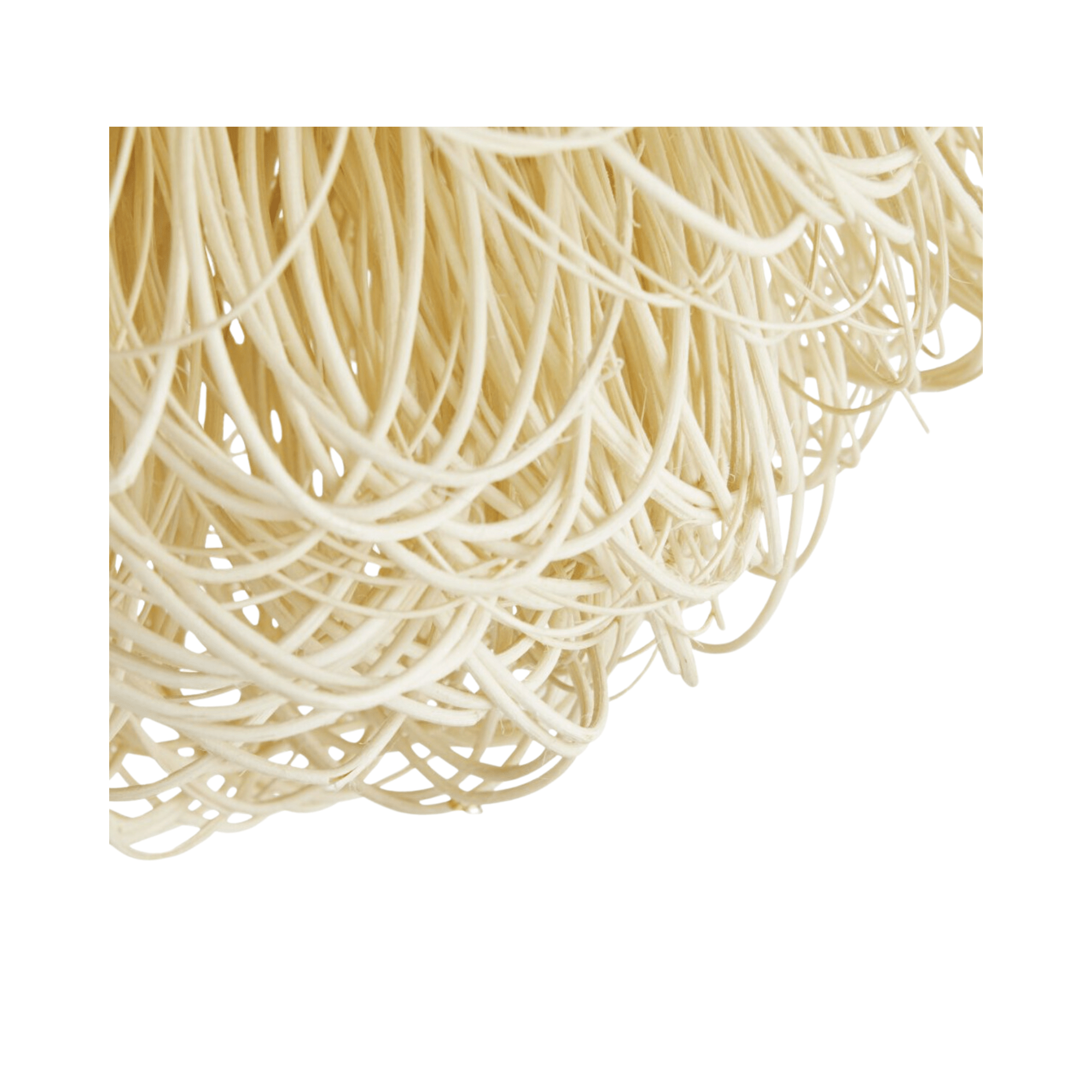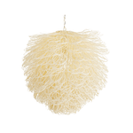 The Finley takes the notion of classic chandelier design and runs wild. Showcasing an untamed façade this unconventional luminescent was created by looping bleached rattan in a pattern consisting of varying sizes. Its organic foundation conceals asingle light that delivers a soft glow and creates billowy shadowplay when in use. Suspended from an iron pipe in a corresponding white finish. Finish will vary.