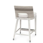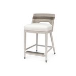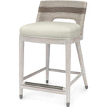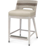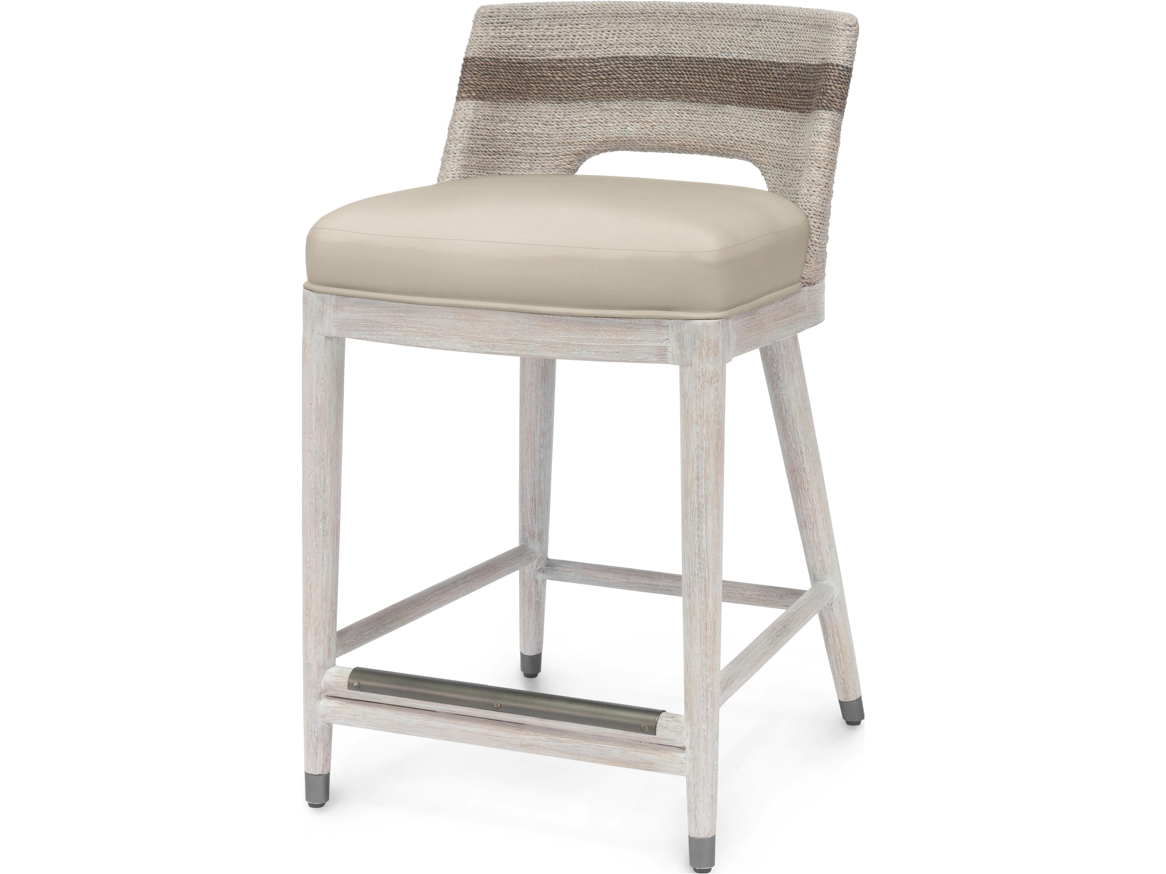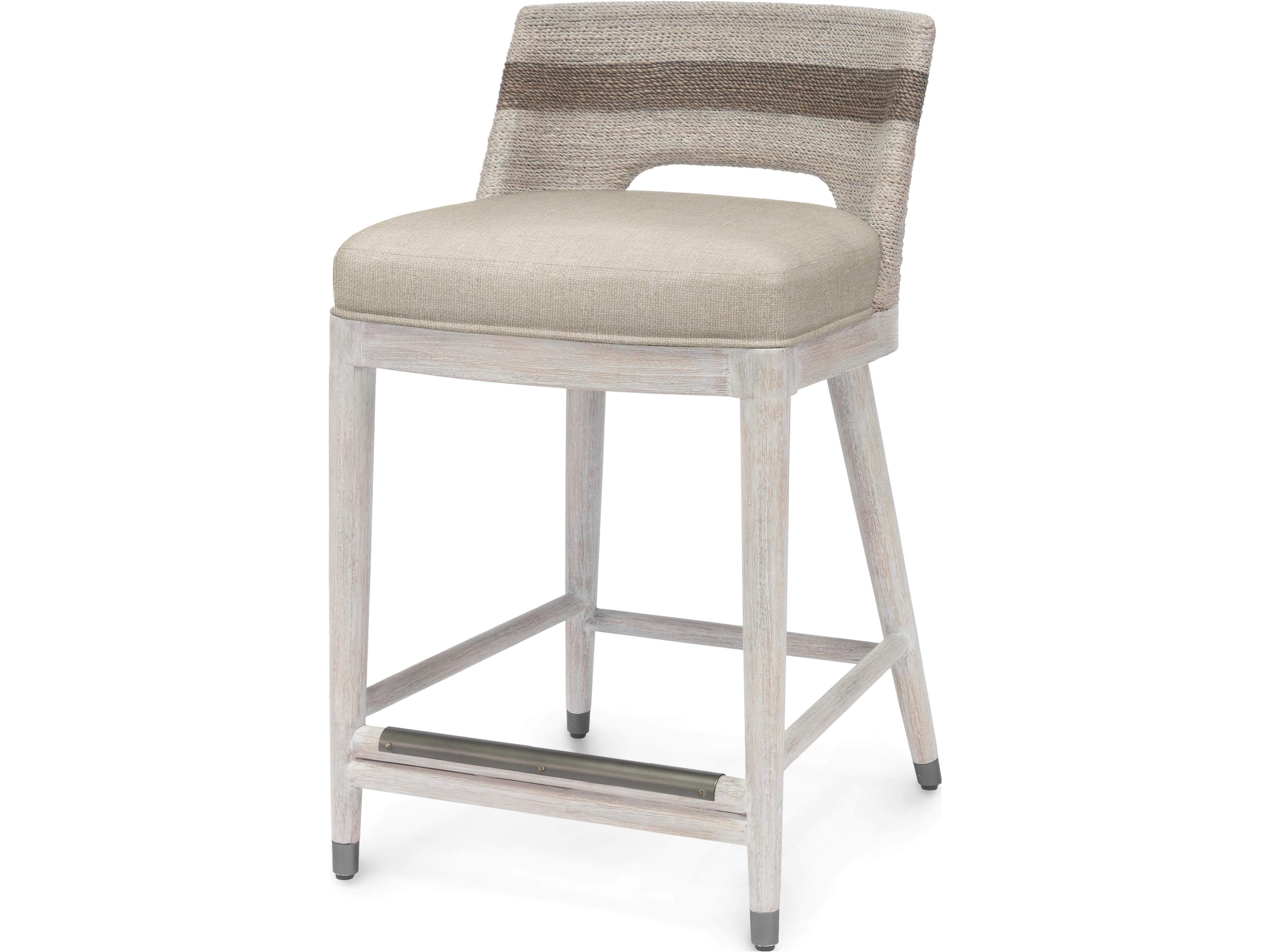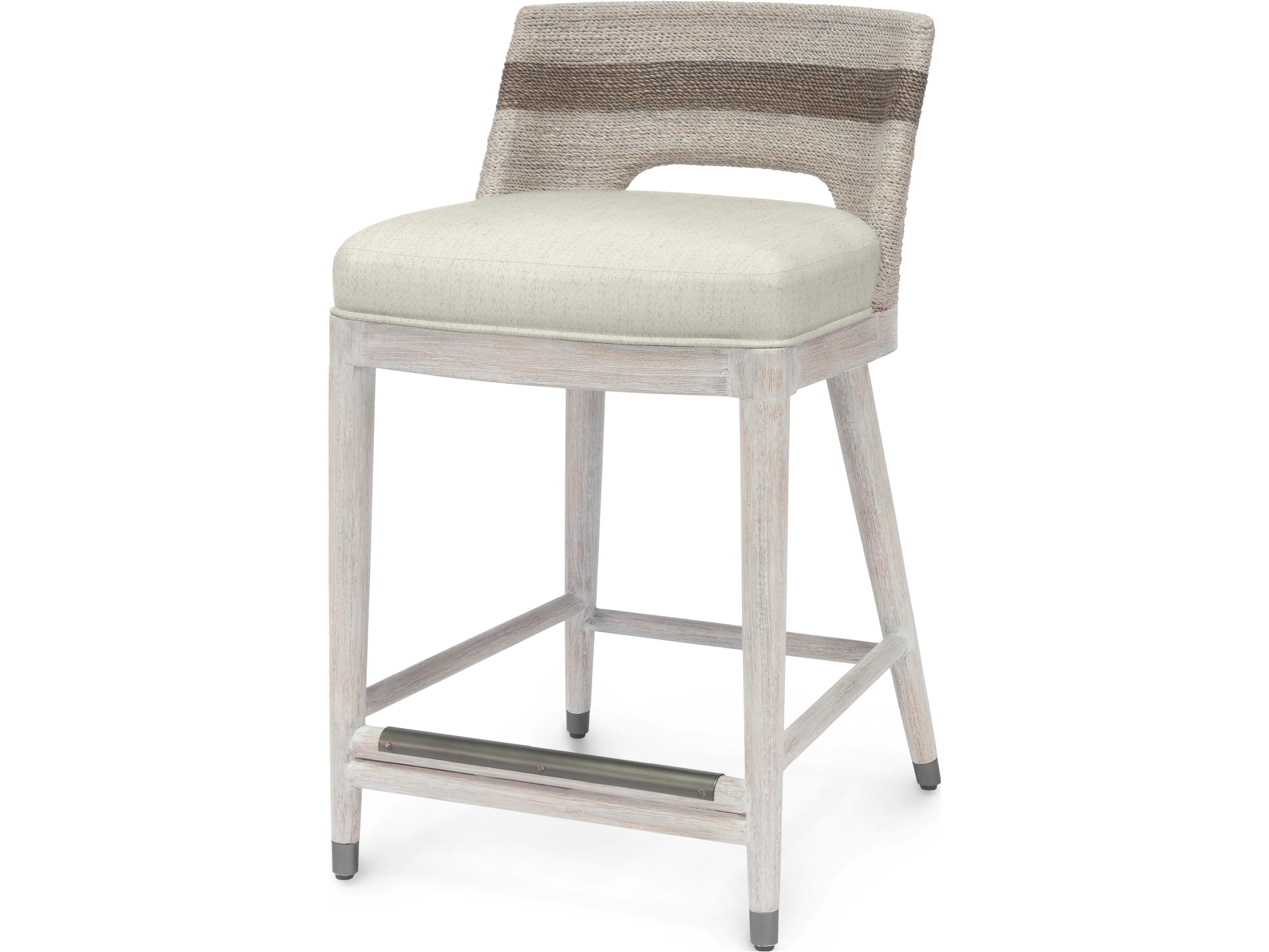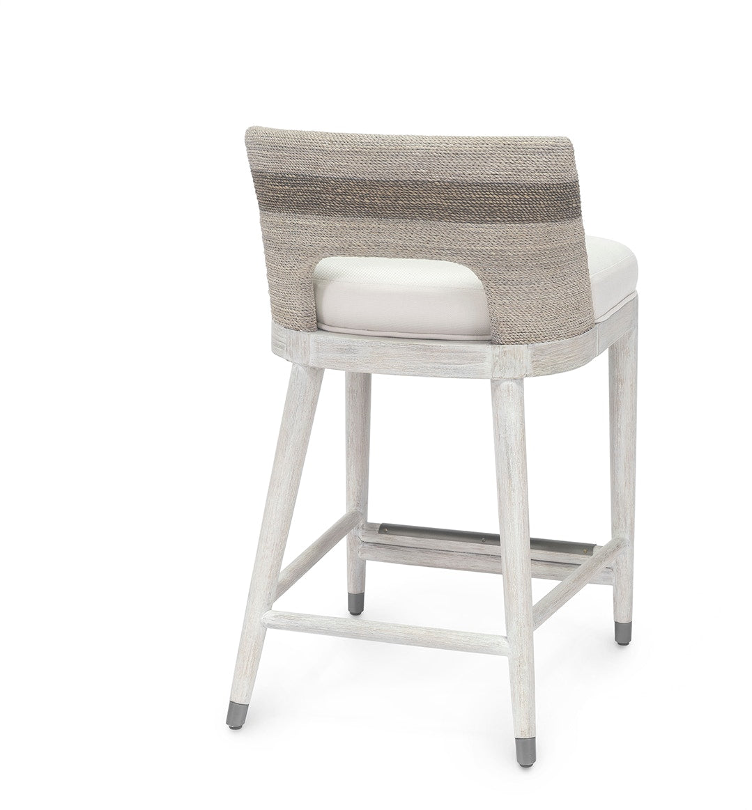 Experience timeless elegance with the Fritz Rope 24" Counter Stool in Fog White. Crafted with a sturdy hardwood frame and whitewashed legs, it features pewter-finished foot caps and a front stretcher footrest for added comfort. The hand-twisted Lampakanay rope in a fog white finish with taupe stripes creates a distinctive, artisanal look. The fixed upholstered seat ensures lasting comfort, while its design perfectly complements the Fritz Rope White Fog collection. Available in multiple heights, this stool brings both style and functionality to your space.