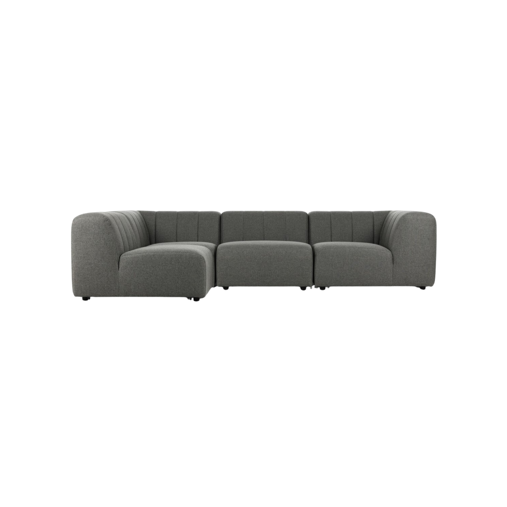 Wide, vertical channels and low styling speaks to the Italian influence behind this outdoor-friendly four-piece sectional. Cover or store inside during inclement weather and when not in use.