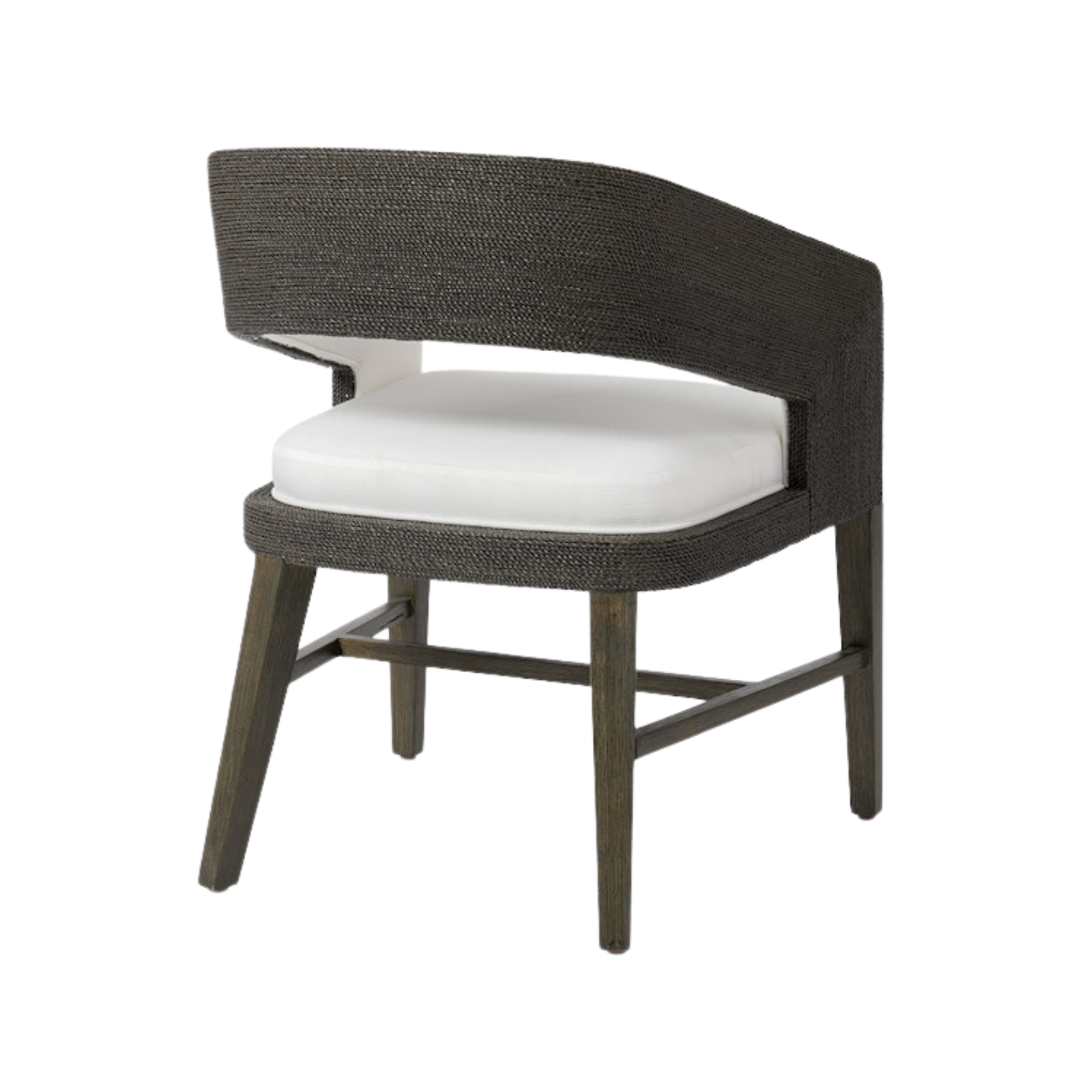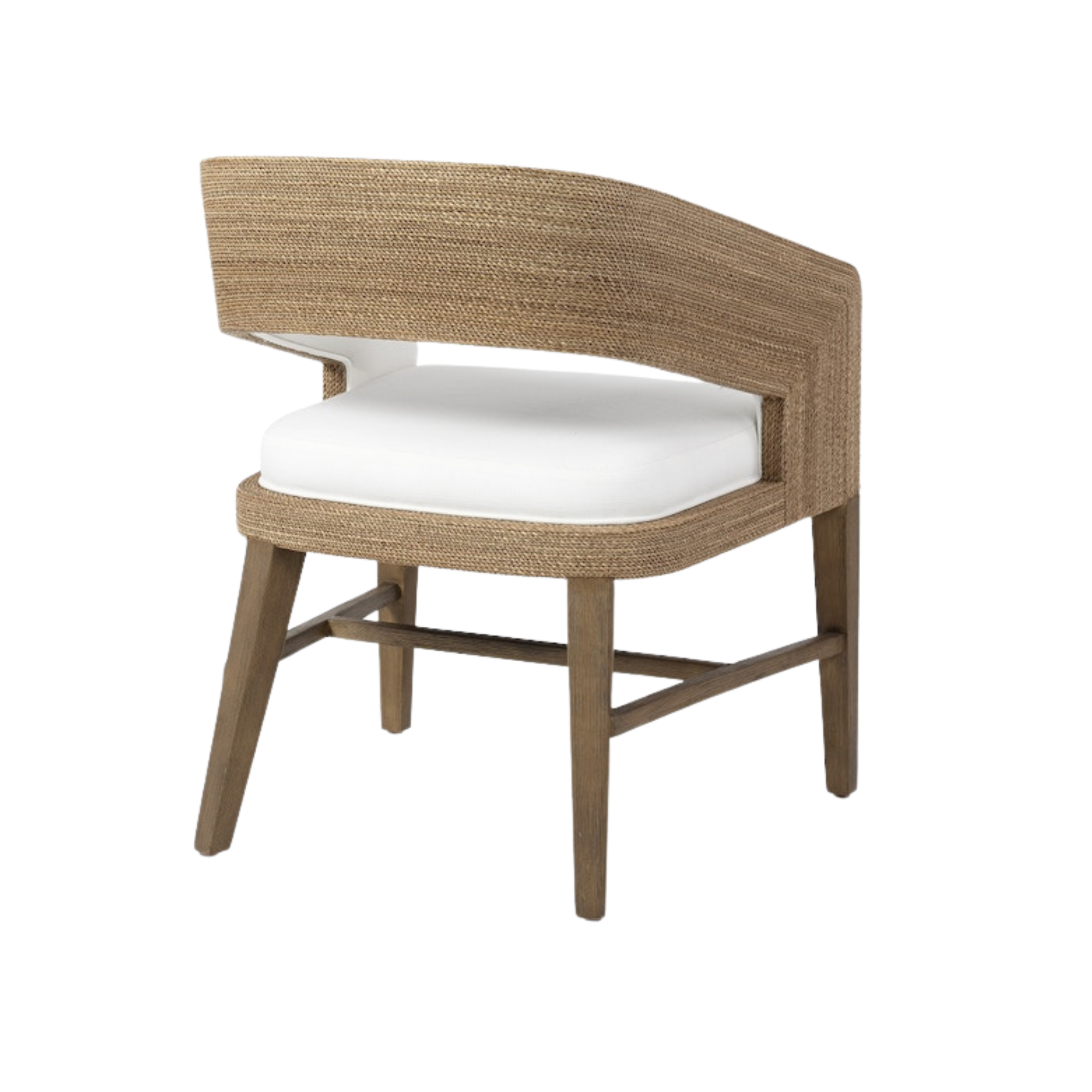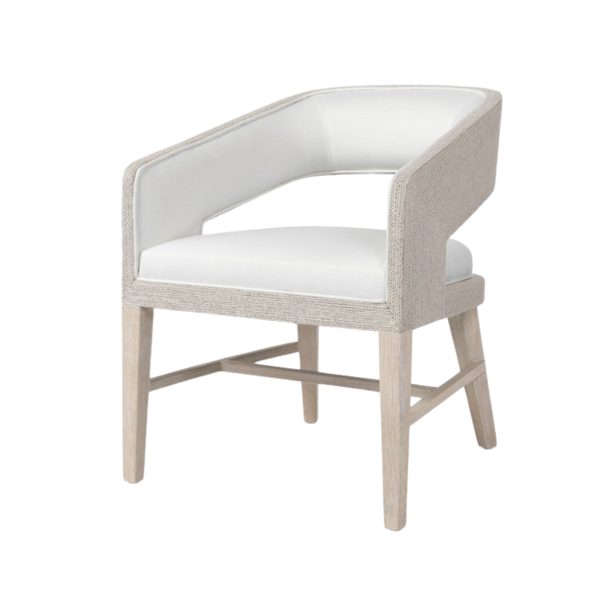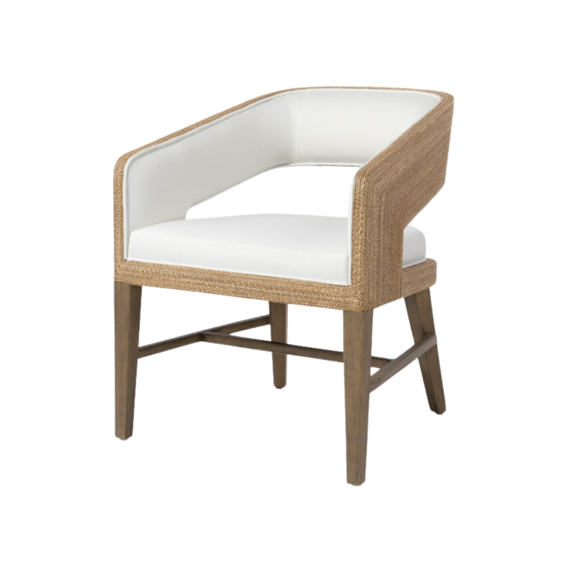 The Hadley Arm Chair boasts a sturdy hardwood frame accented by hand-twisted Lampakanay rope, offering a refined blend of craftsmanship and texture. Its fixed upholstered seat and upholstered backrest provide lasting comfort and elegance, making it an ideal choice for sophisticated interiors.