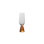 Full of fun, clever details & bold color, the Harper Drinkware brings an elevated yet playful look to tableware. Handmade from soda glass, this low profile champagne glass features a clear, slender top & weighty, flared amber stem. Style this chic vessel on a bar cart or open kitchen shelving to show off its trend design & versatile hue.