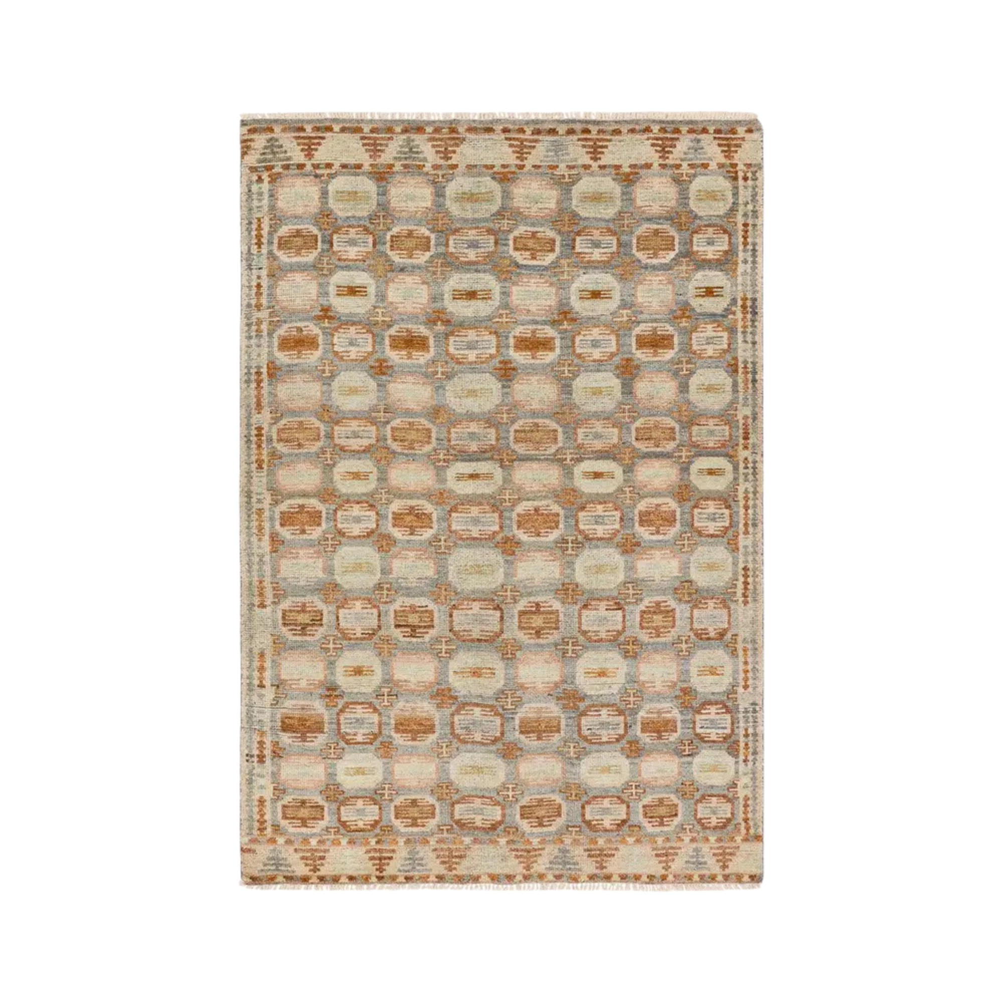 The Turkish-Killum-inspired Hazan collection is intricately handknotted by artisans in India. Crafted with 15 knots per square inch, these durable area rugs thrive in both high and low traffic areas of the home. The Titale design showcases traditional-style miniature medallions in orange, slate, pink, light green, and cream hues. The 100% wool pile is naturally stain-resistant, soft underfoot, and can withstand high traffic areas of the home. Certified by Nest and RugMark, this rug assures ethical craftsmanship.
