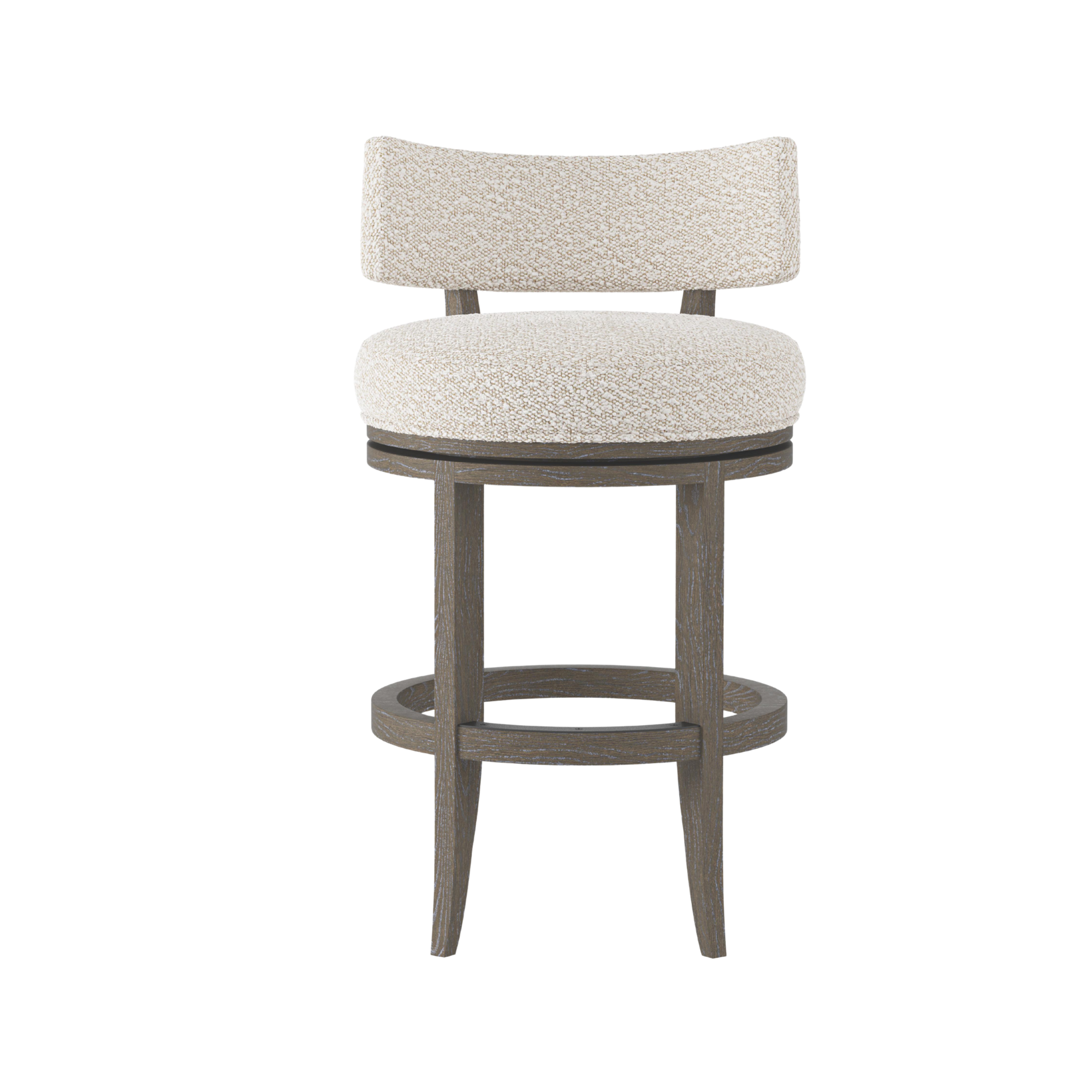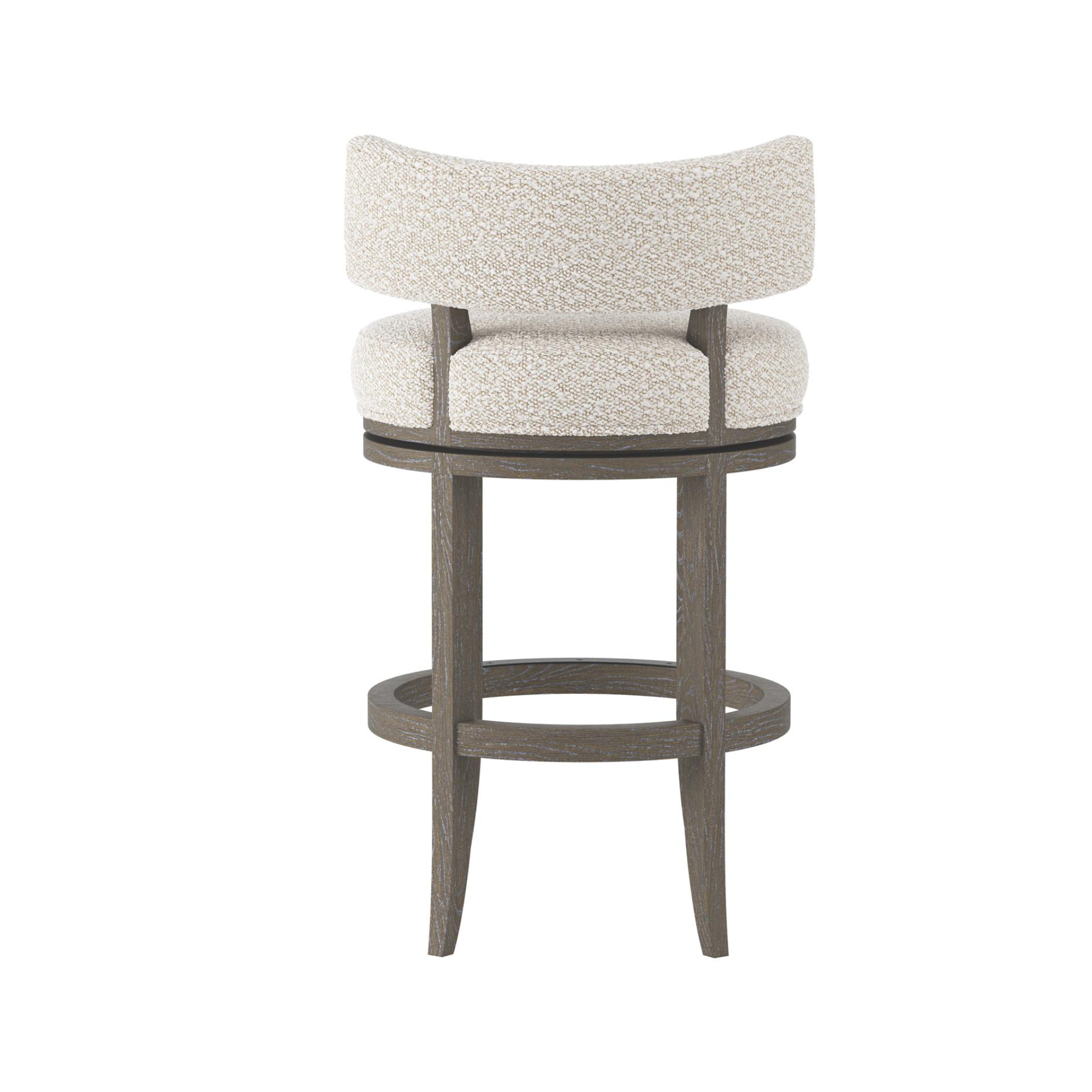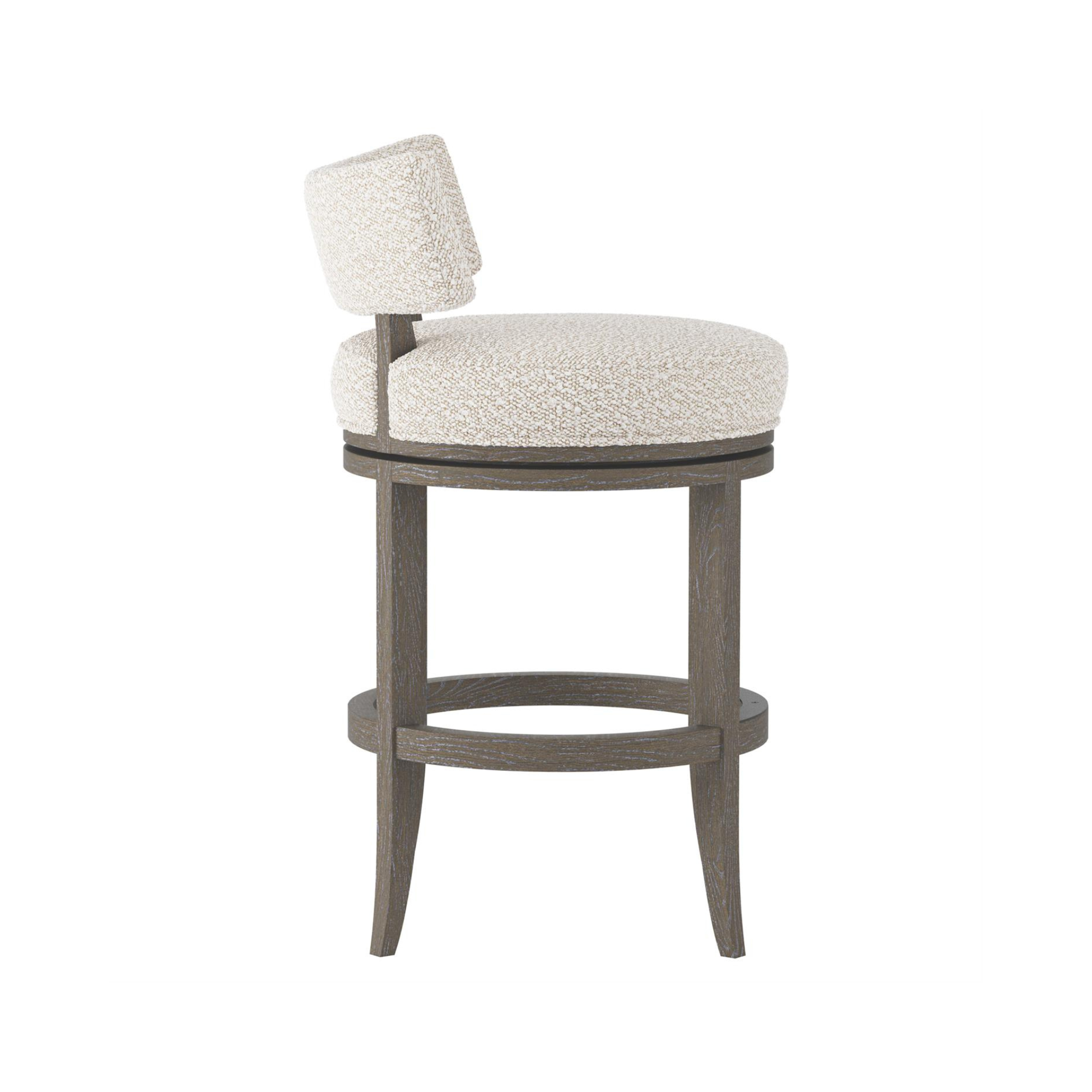 Comfortable and stylish, this transitional counter stool features a round swivel seat and a low, curved back.