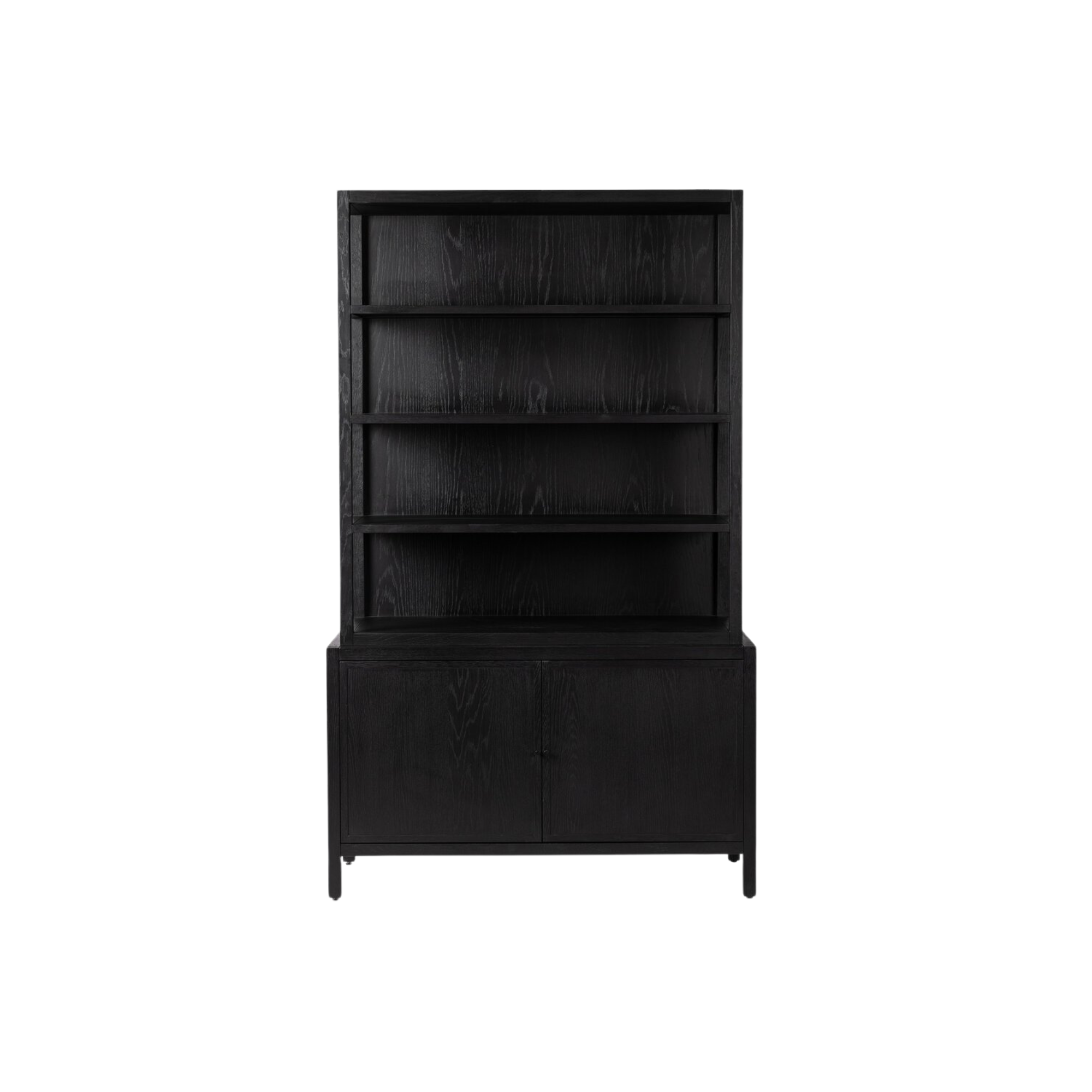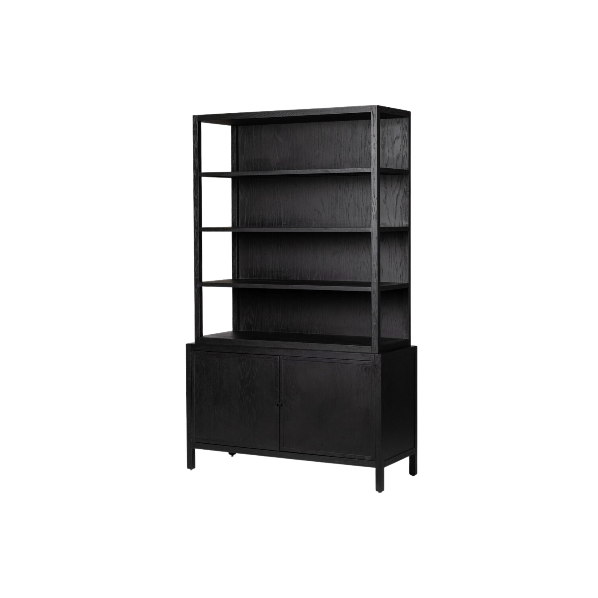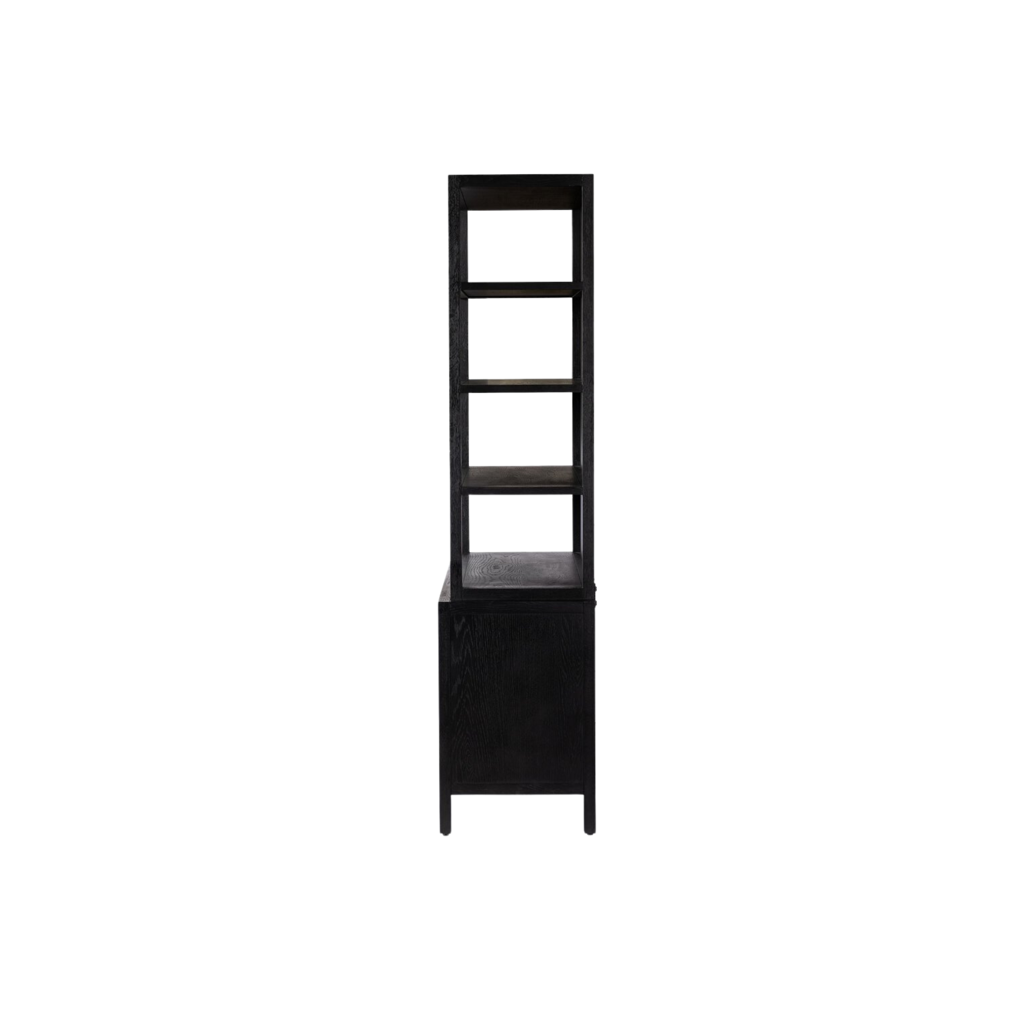 The Hopkins Bookcase combines timeless design and purposeful functionality. Crafted from oak with an ebony finish, it offers open shelves to showcase your favorite books and decor, while the lower cabinetry provides hidden storage. This versatile piece enhances any room, blending elegance with convenience.