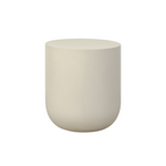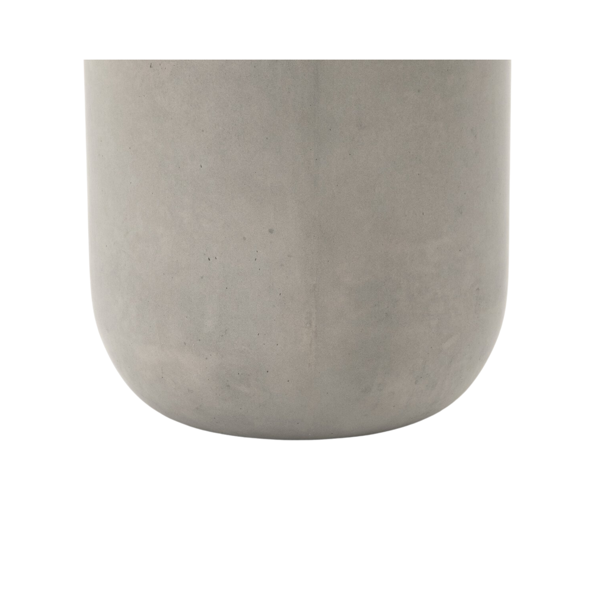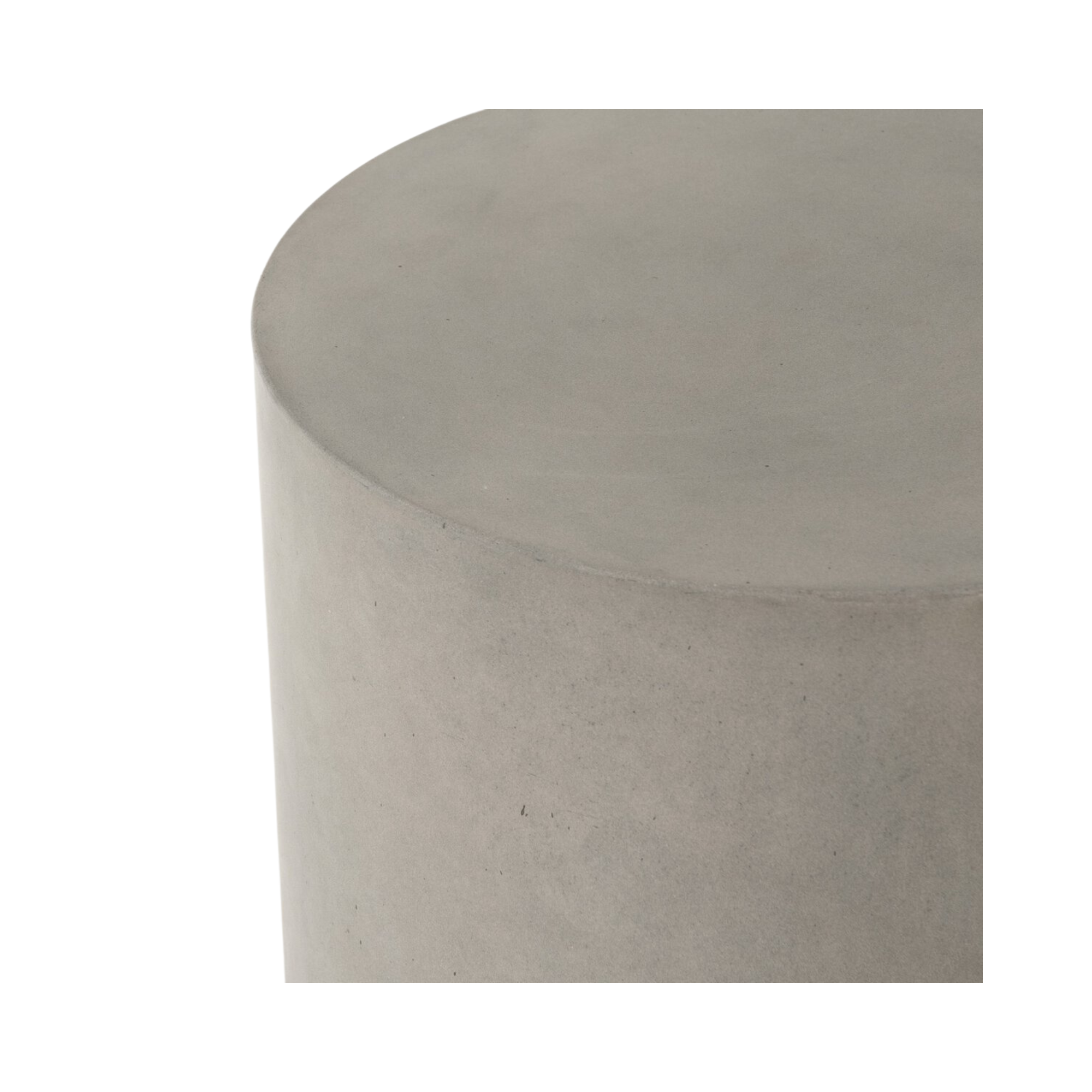 Grey-finished concrete and classic drum shaping make for an effortlessly cool end table, indoors or out. Cover or store inside during inclement weather and when not in use.