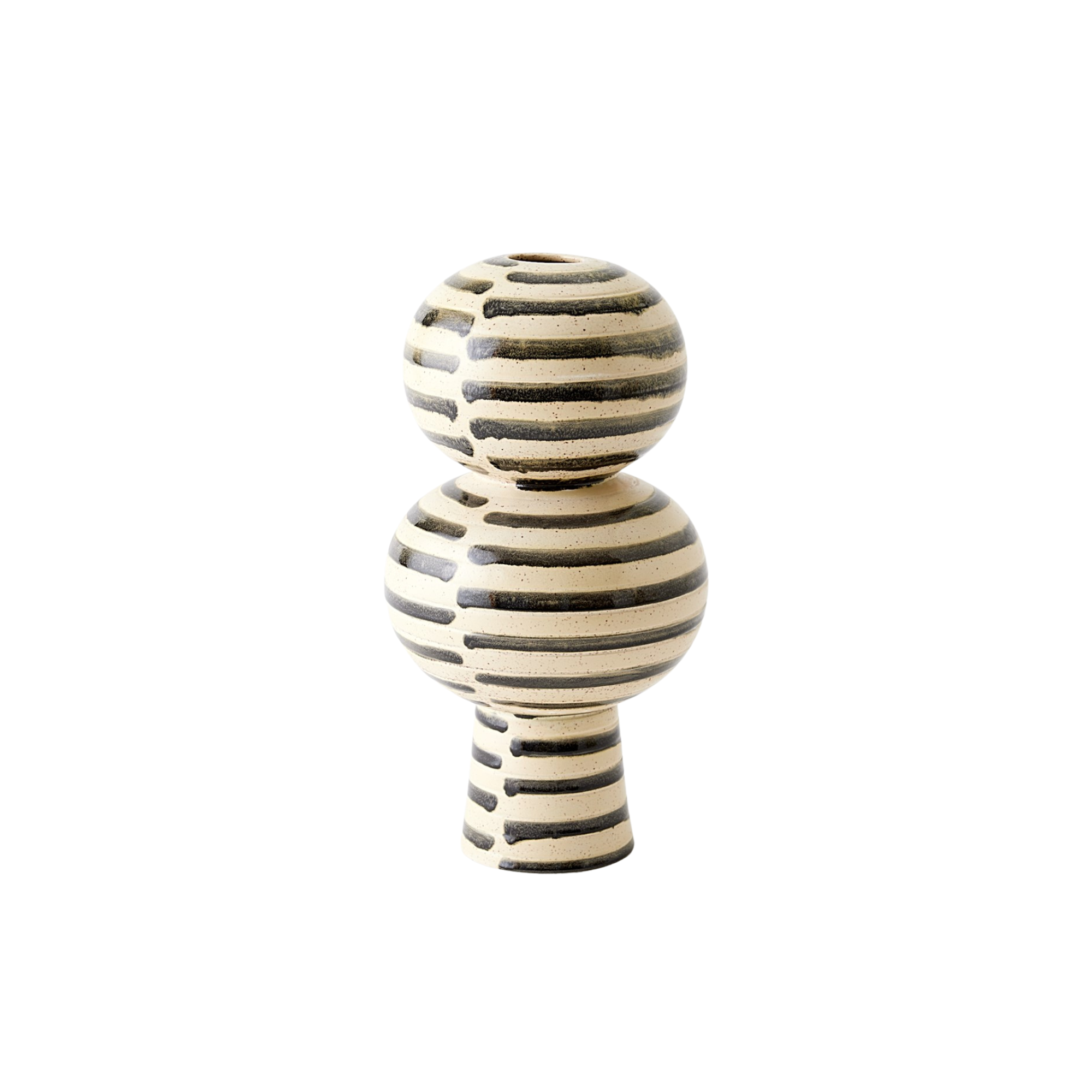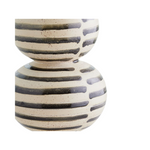 The Jail Break Vase is beautifully crafted from ivory Portuguese slip-molded ceramic. The hand-painted black stripes evoke a sense of boldness and individuality, making them a standout addition to your decor.