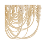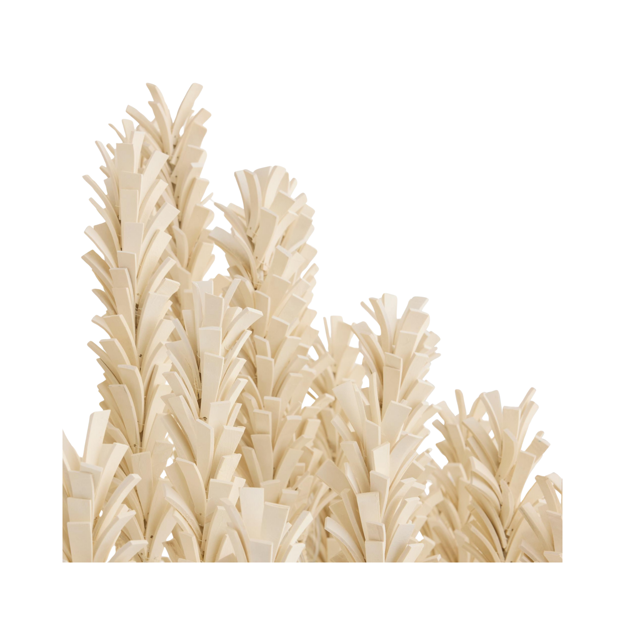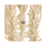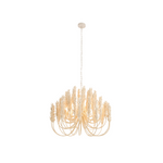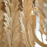 The Kaia Chandelier shows off beaded stems layered with coconut shell, creating an elegant and textured design. Its curved white iron arms, playfully reminiscent of rock candy, add a refined touch that brings subtle drama and sophistication to any space. Perfect for elevating your dining or kitchen area.